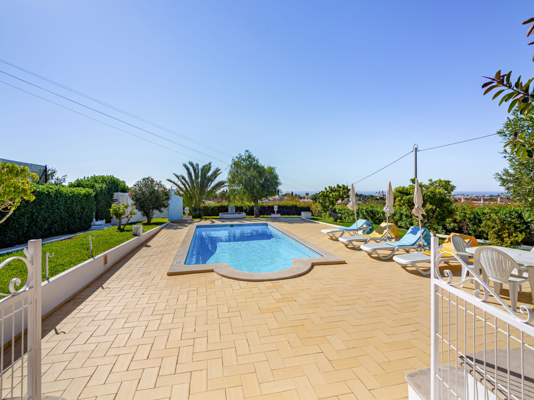 "Vivenda Deolinda", 4-Zimmer-Haus 125 m2 auf 2 Stockwerken. Renoviert im Jahre 2018, komfortabel und schön eingerichtet: Wohnzimmer mit offenem Kamin (nur Deko), Sat-TV (Flachbildschirm). Ausgang zum Garten, zur Terrasse, zum Schwimmbad. 1 Zimmer mit 1 Bett (140 cm, Länge 195 cm), Klimaanlage. Ausgang zur Terrasse. 1 Zimmer mit 2 Betten (90 cm, Länge 195 cm), Klimaanlage. Küche (4 Kochplatten, Backofen, Geschirrspüler, Toaster, Wasserkocher, Mikrowelle, Tiefkühler, elektrische Kaffeemaschine). Dusche/WC, Bidet. E-Heizung. Obergeschoss: 1 Zimmer mit 2 Betten (90 cm, Länge 195 cm). Ausgang zum Balkon, zur Terrasse. Dusche/Bidet/WC. Terrassenmöbel, Liegestühle (6). Sicht auf das Meer. Zur Verfügung: Waschmaschine, Bügeleisen, Babybett bis 3 Jahre, Haartrockner. Internet (Wireless LAN, gratis). 29927/AL