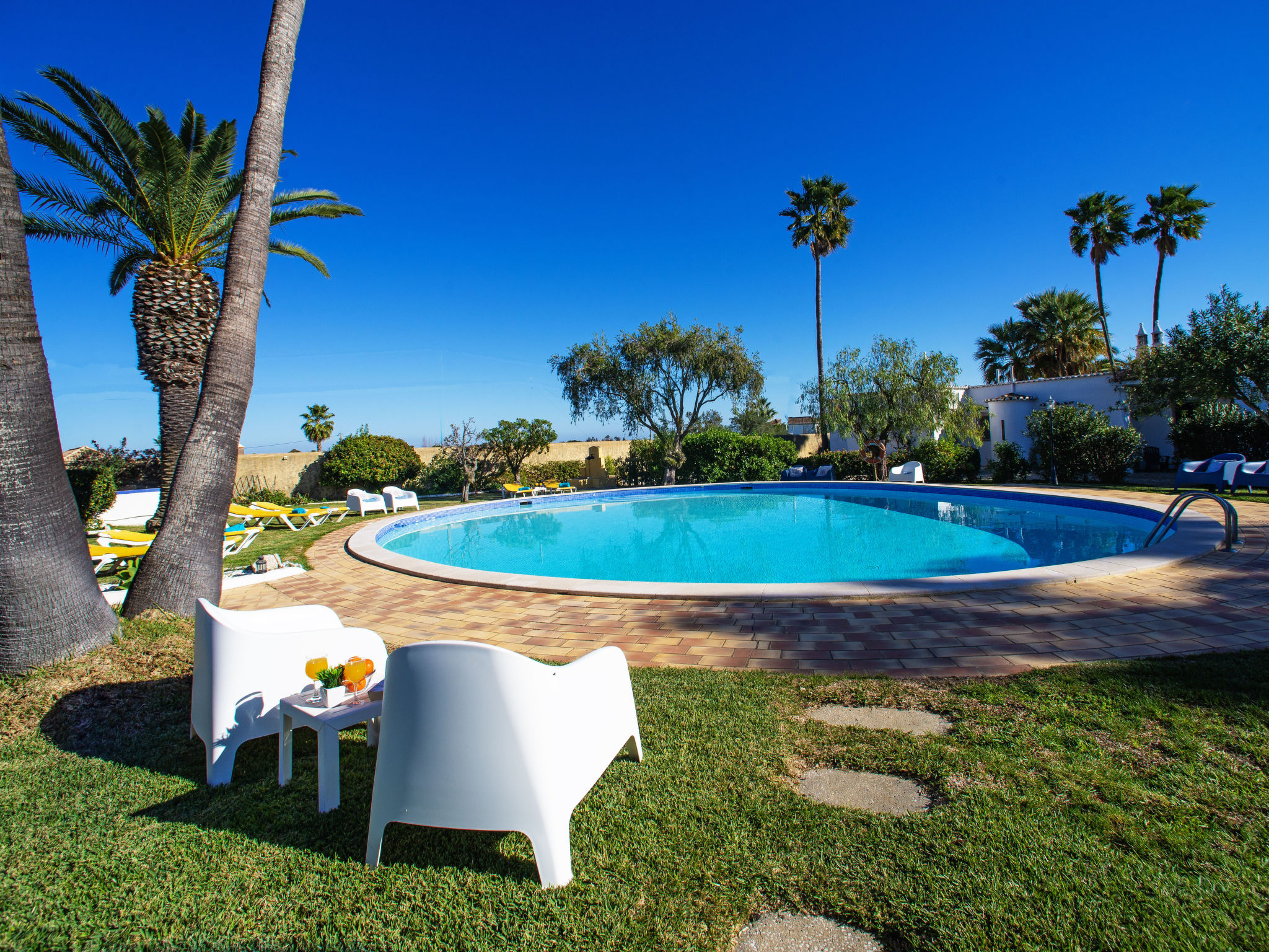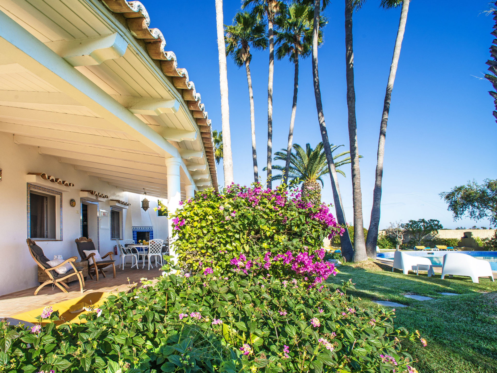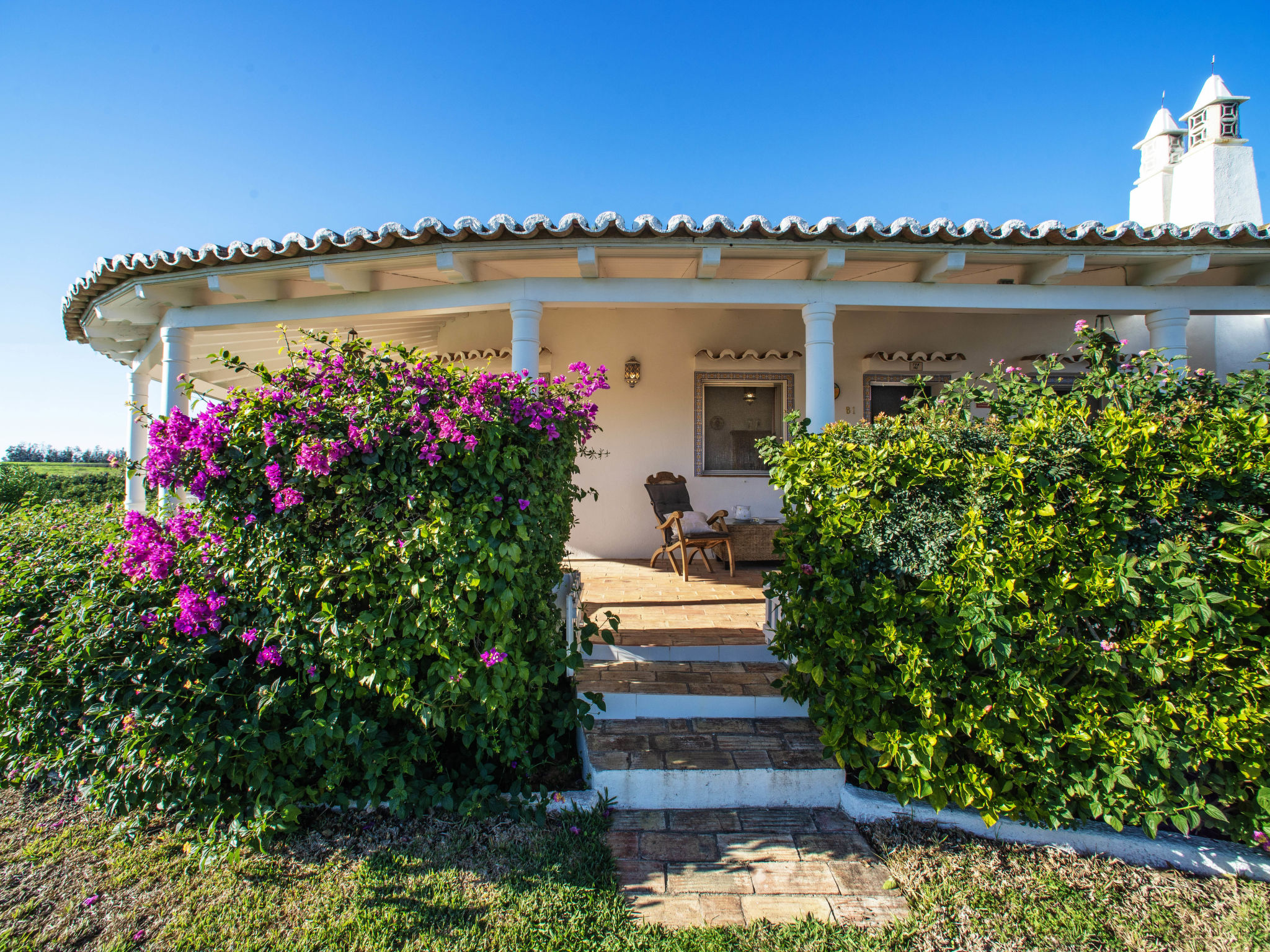 Haus "Luz Romana". 4 Häuser in der Residenz. Im Ortsteil Luz de Tavira, 7 km vom Zentrum von Tavira, am Ortsrand, 300 m von der Lagune. Zur Mitbenutzung: Grundstück 23'000 m2, gepflegter Garten Pflanzen, Obstgarten, Liegewiese, Schwimmbad (100 m2, saisonale Verfügbarkeit: 01.Jan.-31.Dez.) mit Meerwasser. Aussendusche. Im Hause: Waschmaschine (zur Mitbenutzung). Lange Zufahrt (450 m Naturweg). Parkplatz. Einkaufsgeschäft 1 km, Restaurant 1 km, Sandstrand "Praia do Barril" 4 km. Nahe gelegene Sehenswürdigkeiten: Ria Formosa Nature Reserve 5 km. Bitte beachten: Das Foto ist nur ein Hausbeispiel.