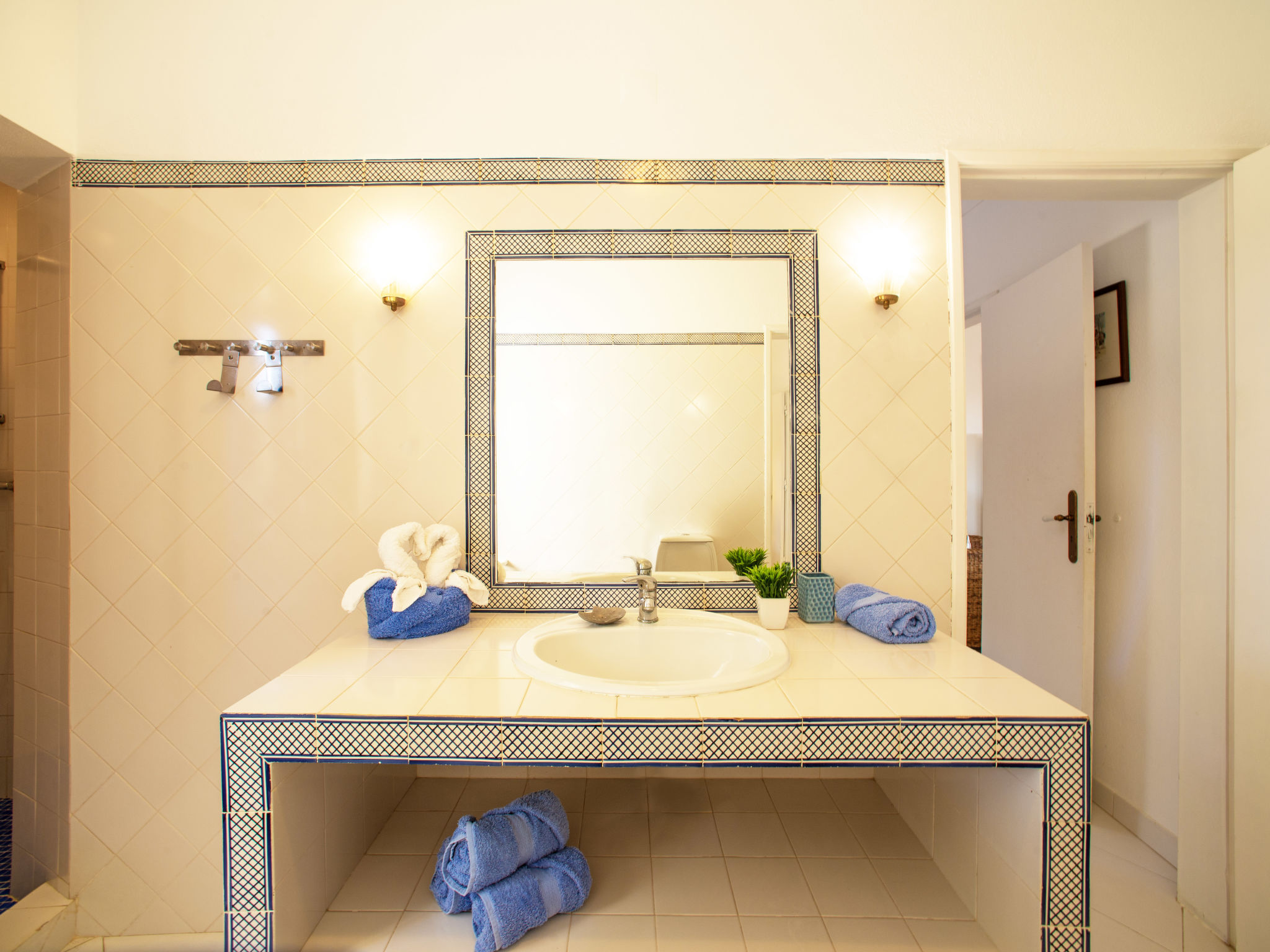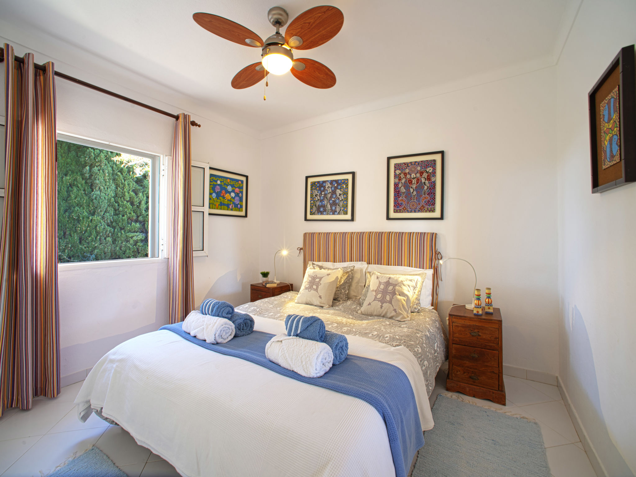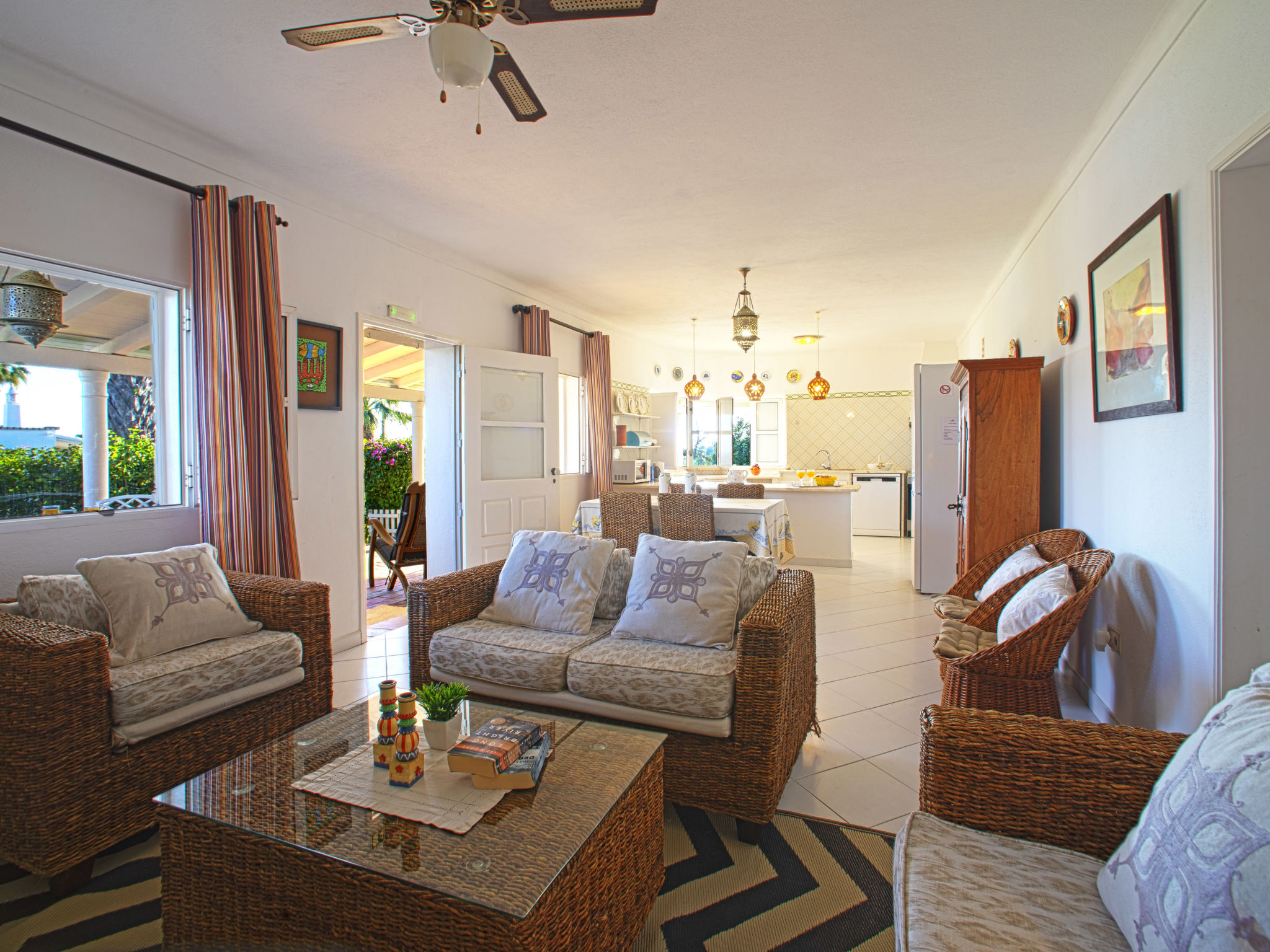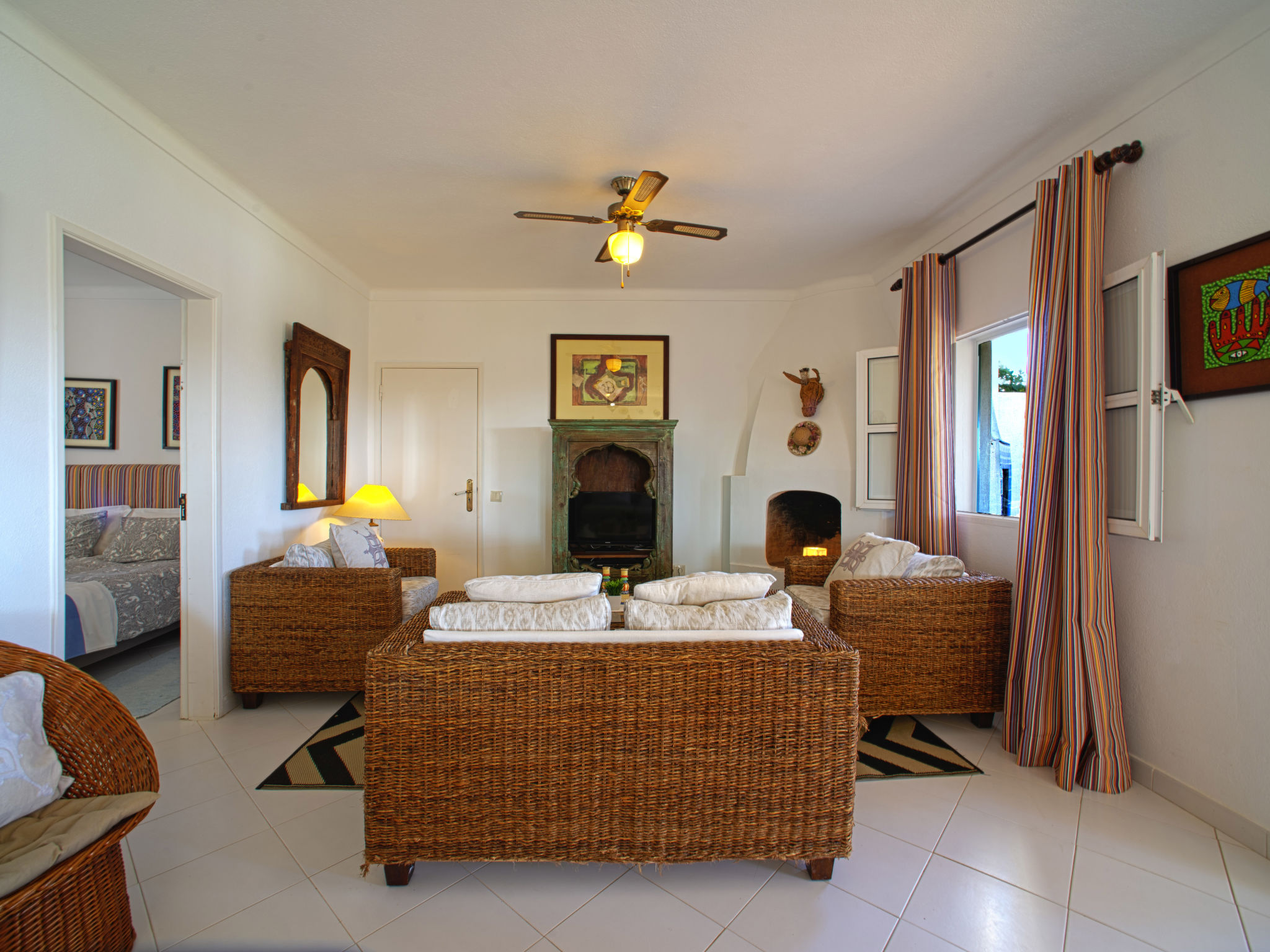 "Luz Romana B1 (TVA102)", 3-Zimmer-Doppelhaushälfte 80 m2. Hell, schön eingerichtet: Wohn-/Esszimmer 40 m2 mit Esstisch, Sat-TV und E-Heizofen. 1 Zimmer mit 1 Doppelbett (160 cm, Länge 200 cm). 1 Zimmer mit 2 Betten (Länge 200 cm). Offene Küche (4 Kochplatten, Backofen, Geschirrspüler, Toaster, Mikrowelle, Tiefkühler, elektrische Kaffeemaschine). Dusche/WC. Heizung nicht in allen Räumen. Terrasse überdacht. Terrassenmöbel, Gartengrill, Liegestühle (4). Zur Verfügung: Safe, Kinderhochstuhl, Babybett. Internet (Wireless LAN, gratis). Bitte beachten: Nichtraucher-Unterkunft. 24806/AL