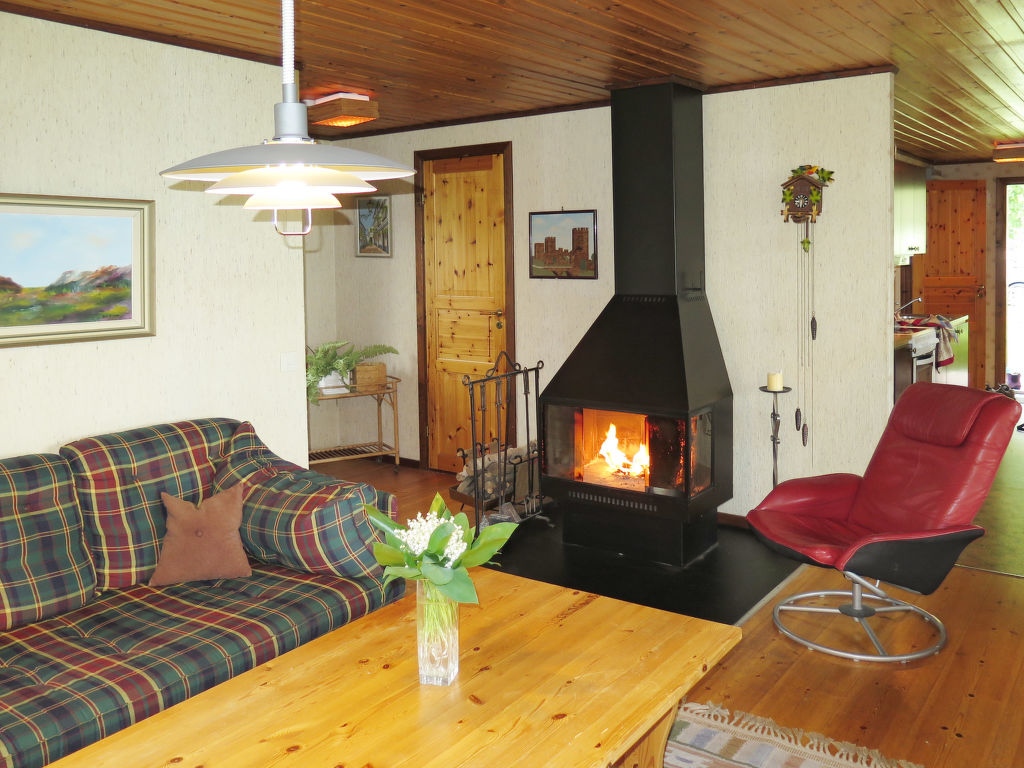 Wohnfläche 68 m². 4 Ceranfelder, Backofen, Mikrowelle, Kühlschrank, Gefrierschrank (ca. 60 l), Kaffeemaschine, Wasserkocher, Toaster, Waschmaschine. TV. Dusche/WC. Elektroheizung, Kaminofen.