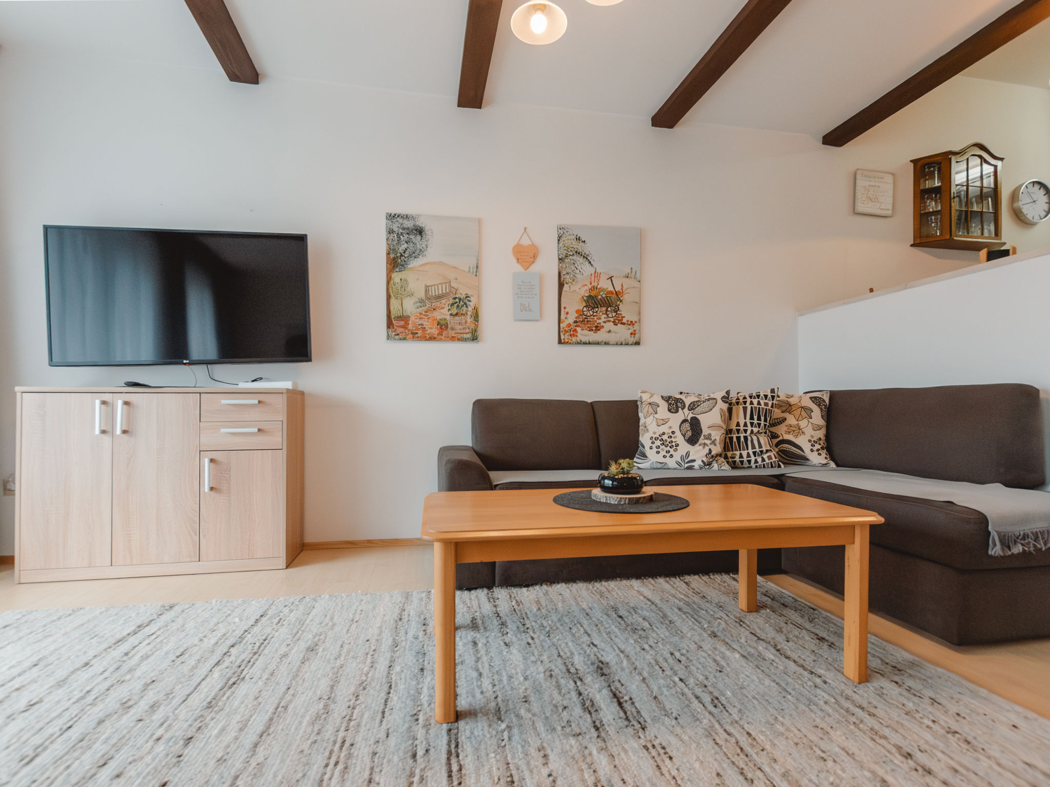 "Erlinghagen", 1-Zimmer-Wohnung 34 m2, im Zwischenstock. Eingang. Wohnzimmer mit 1 Diwanbett und Sat-TV. Schlafnische mit 1 Doppelbett. Offene Küche (2 Glaskeramikherd Platten, Toaster, Wasserkocher, Mikrowelle, elektrische Kaffeemaschine, Kapseln für die Kaffeemaschine (Senseo) extra) mit Esstisch. Bad/WC. Grosser Balkon, Südlage. Terrassenmöbel. Sicht auf die Landschaft. Parkplatz Nr. 10/Top5. Bitte beachten: Nichtraucher-Unterkunft. Diese Wohnung befindet sich im Hochparterre. Hunde werden nicht akzeptiert! 50402-000464-2020