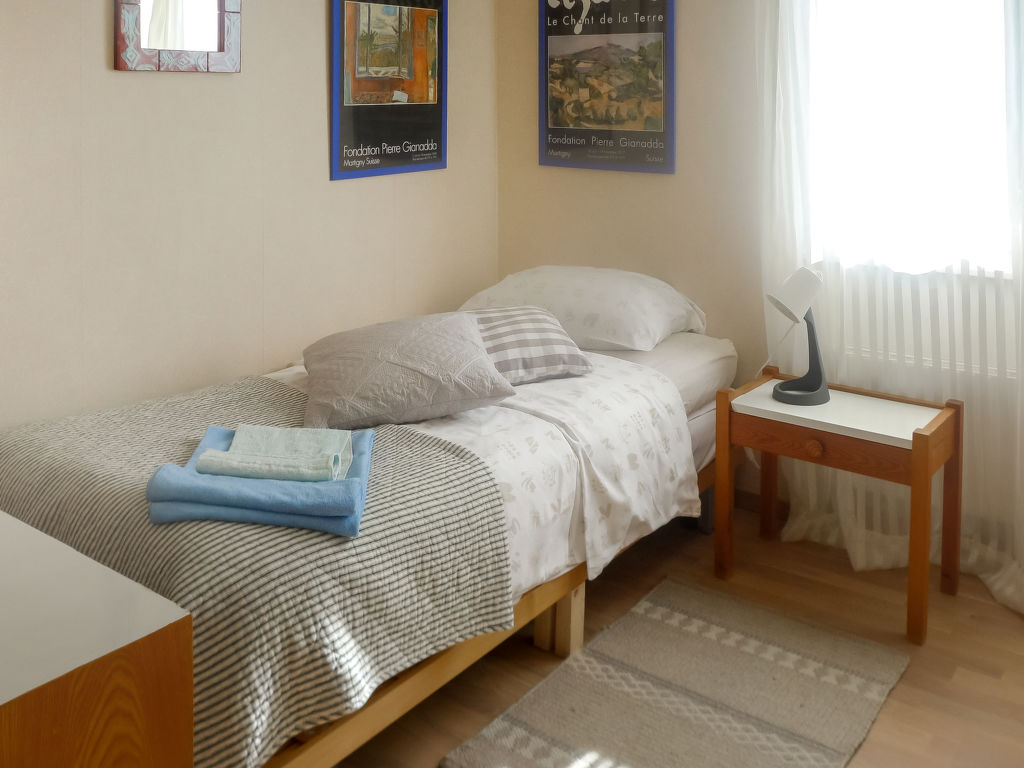 "Noisette", 4-Zimmer-Haus 100 m2 auf 2 Stockwerken. Objekt geeignet für 4 Erwachsene + 2 Kinder. Komfortabel und gemütlich eingerichtet: Wohn-/Esszimmer mit offenem Kamin, Essecke und Sat-TV (Flachbildschirm), Stereoanlage. Ausgang zur Terrasse. 1 Doppelzimmer mit 1 Doppelbett. 1 Kinderzimmer mit 1 Ausziehbett (2 Pers.). Kleine Küche (Backofen, Geschirrspüler, 4 Glaskeramikherd Platten, Mikrowelle, elektrische Kaffeemaschine). Bad/WC. Unteres Geschoss: 1 Zimmer mit 2 Betten. Sep. WC. Terrasse 7 m2, Gartensitzplatz. Terrassenmöbel. Herrliche Sicht auf den See und die Landschaft. Zur Verfügung: Waschmaschine, Wäschetrockner, Kinderhochstuhl, Babybett (extra). Internet (Wireless LAN, gratis). Bitte beachten: Nichtraucher-Unterkunft. Nur für Urlaubsgäste.