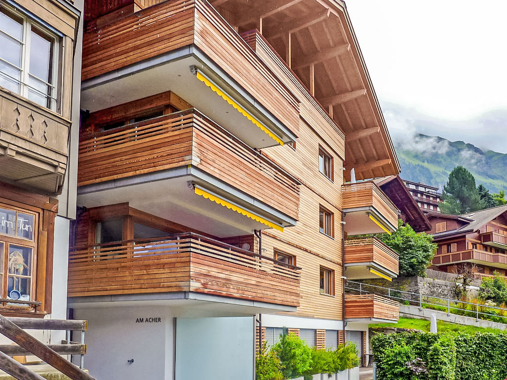 Appartementhaus "Am Acher II", Baujahr 2008. Im Ortsteil Am Acher, 250 m vom Zentrum von Wengen, am Hang, exzellente Lage: Absolut zentral und dennoch ruhig. Im Hause: Fahrstuhl, Zentralheizung. Einkaufsservice vor Anreise möglich. Einkaufsgeschäft, Supermarkt 250 m, Restaurant 100 m, Bar, Bäckerei 250 m, Zentrum zu Fuss in 3 Minuten erreichbar, Bahnstation "Wengen" 250 m, Freibad 600 m. Luftseilbahn, Skisportanlagen 250 m, Kinderspielplatz 100 m. Bitte beachten: autofreie Ferienanlage. Die Anreise erfolgt mit der Bergbahn. Anreise ist nur mit dem Zug ab Lauterbrunnen möglich – 14 Min. Fahrzeit.