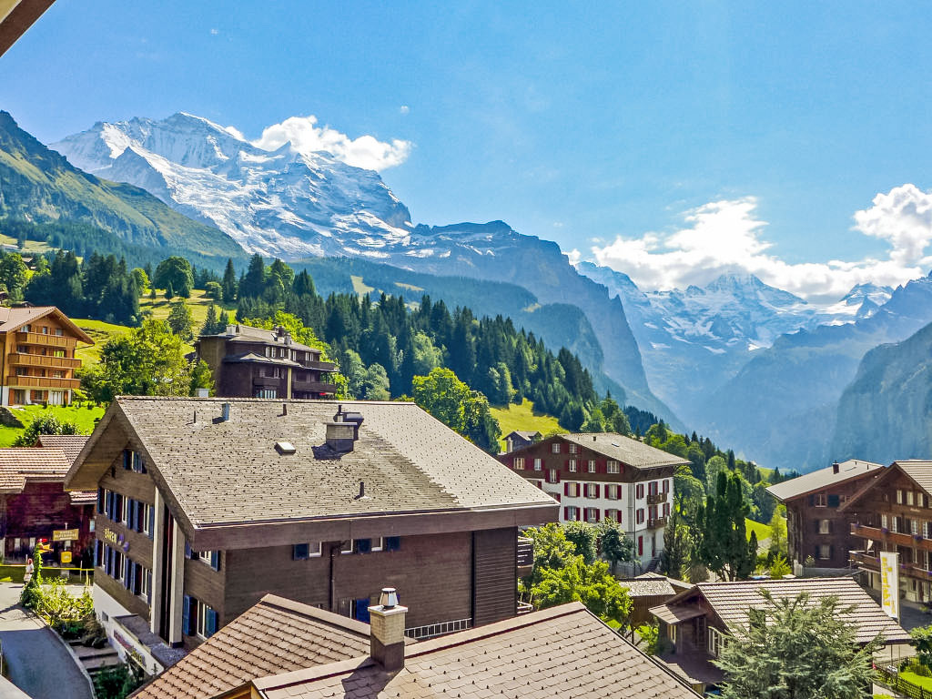 Kinderfreundliches Appartementhaus "Bella Vista", Baujahr 2006. 200 m vom Zentrum von Wengen, am Hang, exzellente Lage: Absolut zentral und dennoch ruhig. Zur Mitbenutzung: gepflegter Garten (eingezäunt). Kinderspielplatz (Rutschbahn, Schaukel). Im Hause: Fahrstuhl, Zentralheizung. Einkaufsservice vor Anreise möglich. Einkaufsgeschäft, Supermarkt 200 m, Restaurant 50 m, Bar, Bäckerei 200 m, Zentrum zu Fuss in 3 Minuten erreichbar, Bahnstation "Wengen" 200 m, Freibad 600 m. Luftseilbahn, Skisportanlagen 250 m. Bitte beachten: autofreie Ferienanlage. Die Anreise erfolgt mit der Bergbahn. In diesem Haus sind weitere Ferienwohnungen mietbar. Anreise ist nur mit dem Zug ab Lauterbrunnen möglich – 14 Min. Fahrzeit.