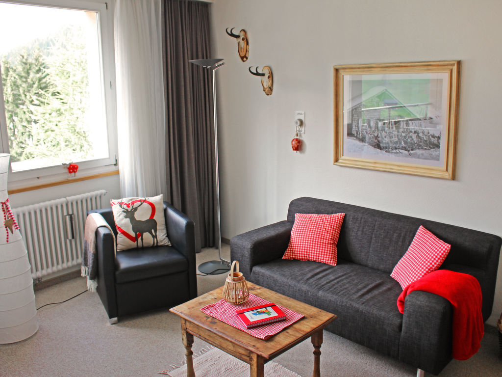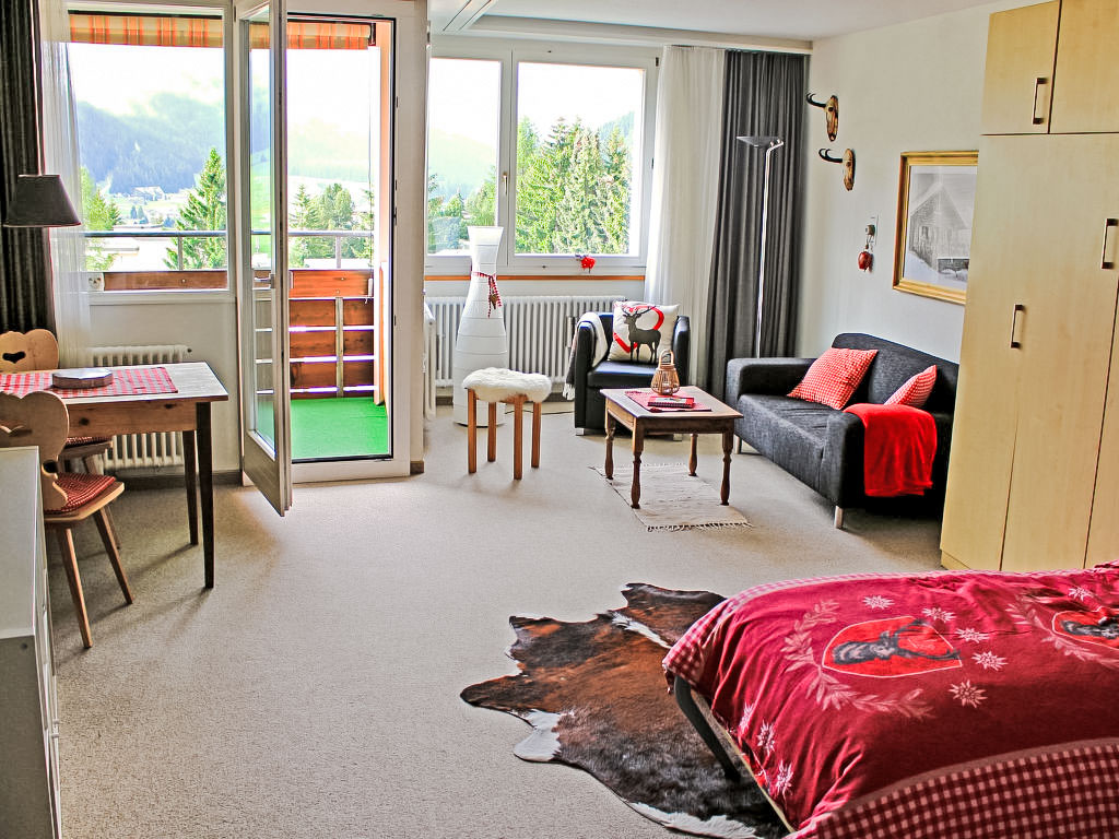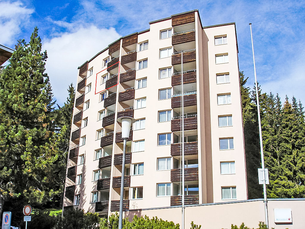 Davos Platz: Schönes Appartementhaus "Parkareal (Utoring)", Baujahr 1966. Am Ortsrand, ruhige, sonnige, erhöhte Lage am Hang, 500 m vom Skigebiet, in einer Sackgasse, im Grünen. Im Hause: Empfang, Bar, Aufenthaltsraum, Wireless LAN, Sauna (extra). Solarium (extra). Tischtennis, Spielzimmer, Fahrstuhl, Skiraum, Zentralheizung. Parkplatz beim Haus, Gemeinschaftsgarage. Einkaufsgeschäft, Lebensmittelgeschäft, Supermarkt, Restaurant, Bushaltestelle, Bahnstation 300 m, Freibad 2.5 km, Hallenbad 2.5 km. Luftseilbahn, Bergbahn, Skilift 500 m, Skibushaltestelle 300 m, Skischule 500 m, Schlittelbahn 700 m, Langlaufloipe 500 m, Eisfeld 1.5 km. Wandergebiete: Rienerhorn, Jakobshorn. Die Wohnungen mit Südlage ab dem 4. Stockwerk verfügen über eine herrliche Bergsicht. Parkplatz: im Sommer CHF 14.00/Woche, im Winter CHF 21.00/Woche. Einstellhalle: im Sommer CHF 35.00/Woche, im Winter CHF 56.00/Woche. Reservierung bei Ankunft.