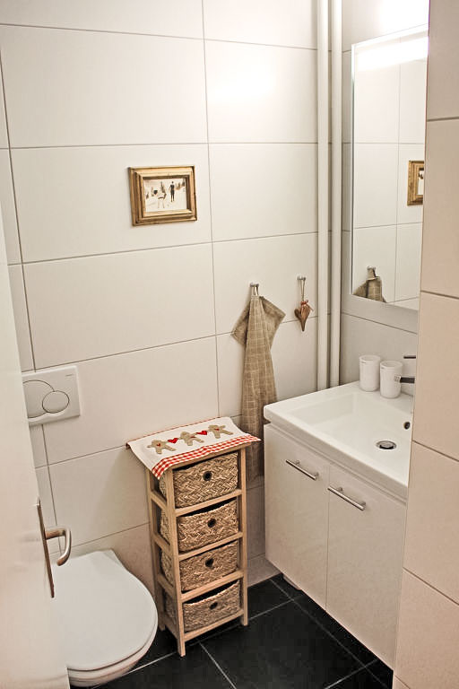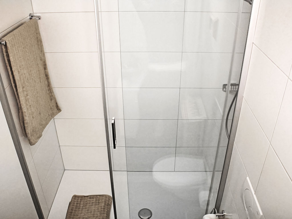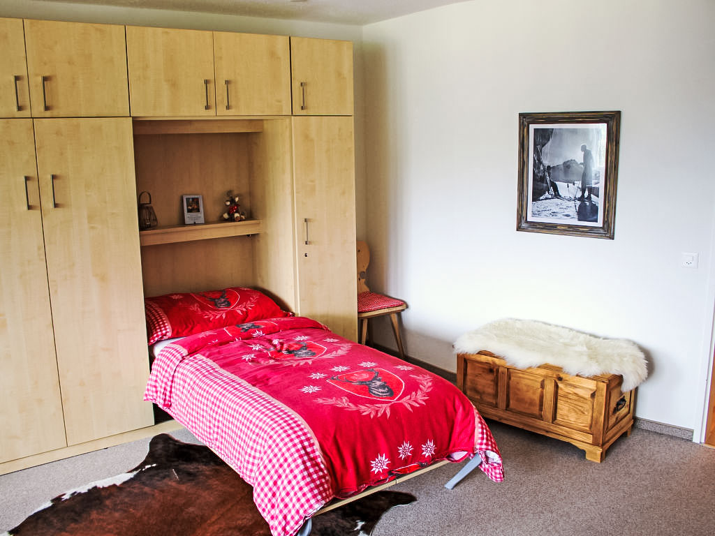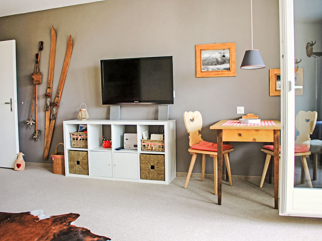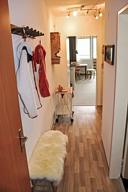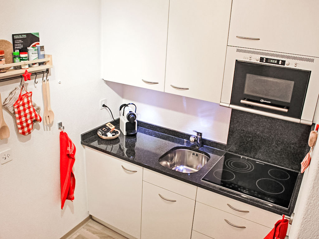 1-Zimmer-Wohnung 47 m2 im 7. Stock. Vollständig renoviert im Jahre 2012, komfortabel und modern eingerichtet: Wohn-/Esszimmer mit 2 Wandschrankbetten und Kabel-TV (Flachbildschirm). Ausgang zum Balkon. Kleine Küche (4 Glaskeramikherd Platten, Mikrowelle). Dusche/WC. Balkon, Südlage. Schöne Sicht auf die Berge, die Landschaft und die Ortschaft. Zur Verfügung: Internet (Wireless LAN, gratis). Parkplatz. Bitte beachten: Nichtraucher-Unterkunft.