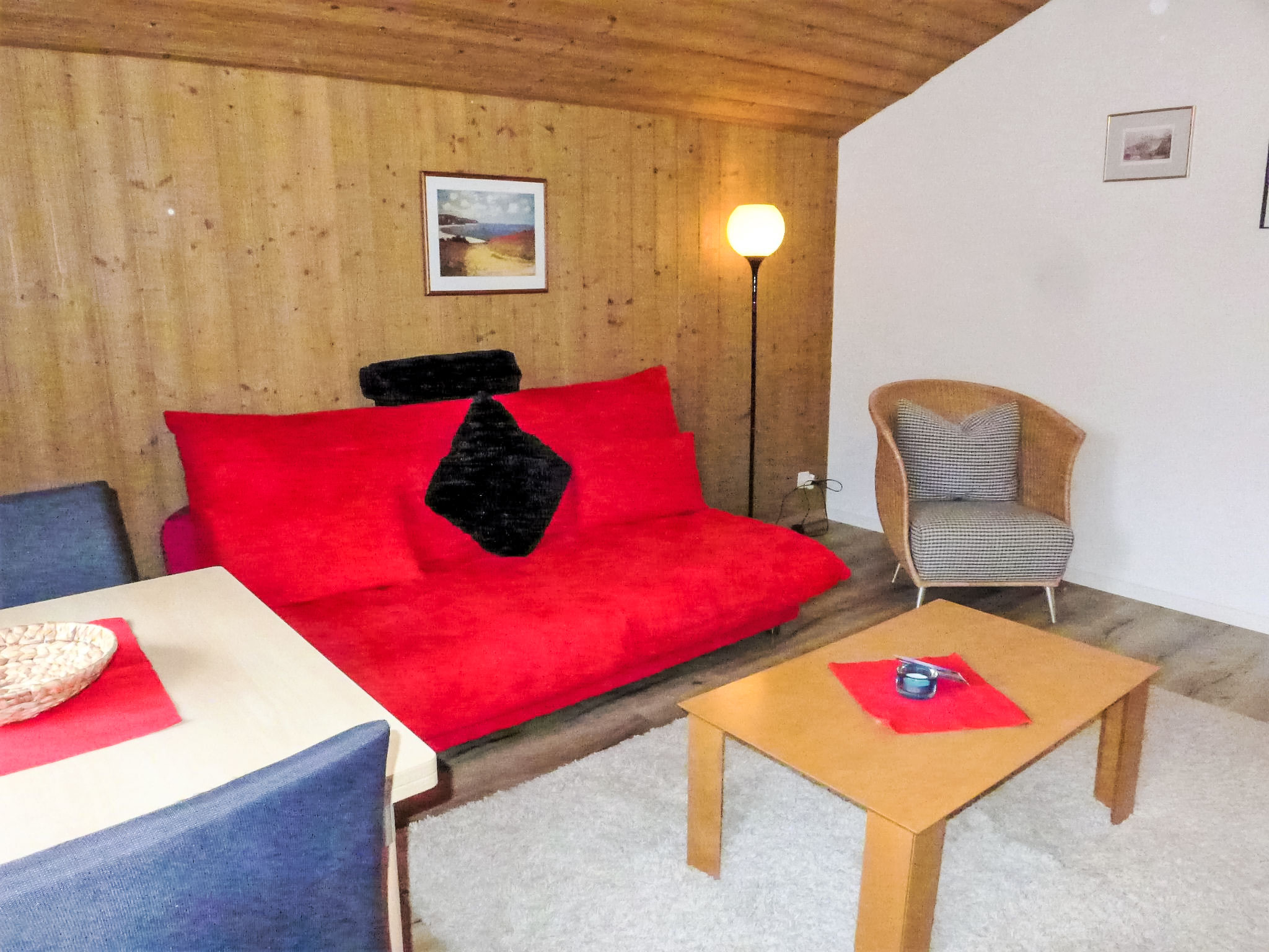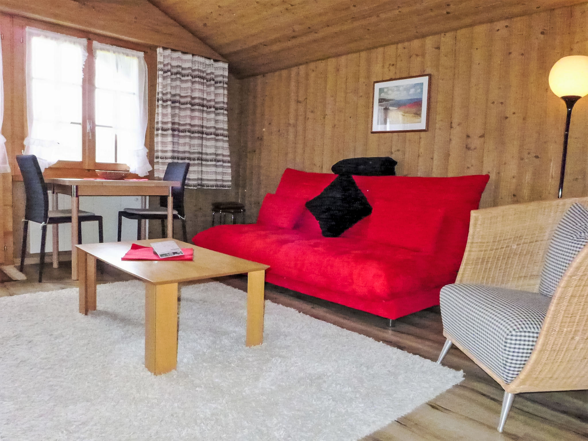 2-Zimmer-Wohnung 39 m2 im 1. Stock, Südlage. Teilweise abgeschrägt, gemütlich eingerichtet: Wohn-/Esszimmer mit Digital-TV, Flachbildschirm und Radio. Ausgang zum Balkon, Richtung Süden. 1 Zimmer mit 1 franz. Bett (180 cm, Länge 200 cm). Offene Küche (Backofen, 2 Glaskeramikherd Platten, Mikrowelle, elektrische Kaffeemaschine, Kapseln für die Kaffeemaschine (Nespresso) extra, Racletteofen, Fondue Set (Käse)). Dusche/WC. E-Heizung. Parkettböden. Balkon, Südlage. Balkonmöbel, Abstellkammer. Herrliche Sicht auf die Berge und Eigernordwand. Zur Verfügung: Babybett. Internet (Wireless LAN, gratis). Parkplatz beim Haus. Bitte beachten: Nichtraucher-Unterkunft. Feuerlöscher.