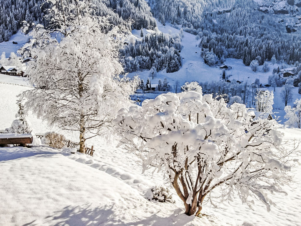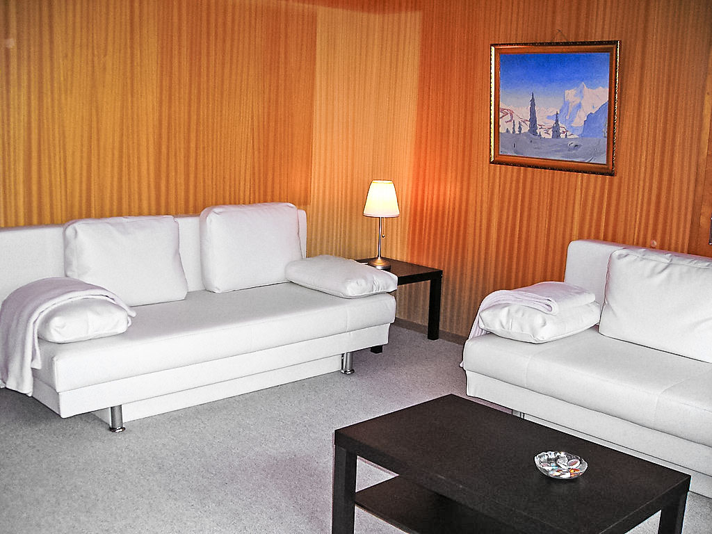 2-Zimmer-Wohnung 60 m2, im Obergeschoss, Südlage. Teilweise abgeschrägt, gemütlich eingerichtet: Wohn-/Schlafzimmer mit 2 Diwanbetten (160 cm, Länge 200 cm), Kabel-TV (Flachbildschirm), Radio. Ausgang zum Balkon, Richtung Süden. 1 Zimmer 18 m2 mit 2 Betten (90 cm, Länge 200 cm). Ausgang zum Balkon, Richtung Süden. Wohnküche (3 Kochplatten, Backofen, Toaster, Wasserkocher, Mikrowelle, elektrische Kaffeemaschine, Kapseln für die Kaffeemaschine (Nespresso) extra, Fondue Set (Chinoise, Käse)). Bad/WC. Balkon 7 m2, Südlage und Westlage. Balkonmöbel. Herrliche Sicht auf die Berge und Eigernordwand. Zur Verfügung: Bügeleisen, Haartrockner. Internet (Wireless LAN, gratis). Parkplatz beim Haus. Bitte beachten: Nichtraucher-Unterkunft. Feuerlöscher.