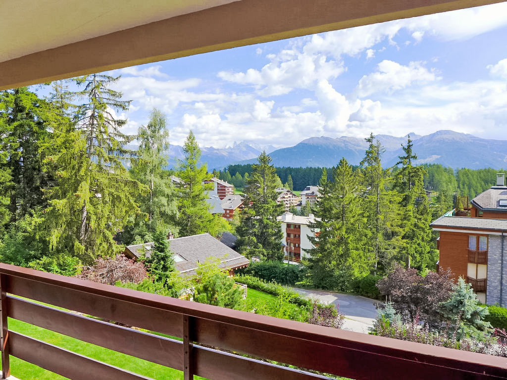 Mehrfamilienhaus "Monte Cristo". Am Ortsrand, 1 km vom Zentrum von Crans, ruhige, sonnige Lage. Im Hause: Fahrstuhl. Parkplatz (beschränkte Anzahl) beim Haus, Gemeinschaftsgarage. Restaurant 200 m, Bushaltestelle "Zier" 100 m. Golfplatz (18 Loch) 1.5 km, Skisportanlagen 800 m. Pendelbusverkehr im Winter und von Ende Juni bis Mitte September.