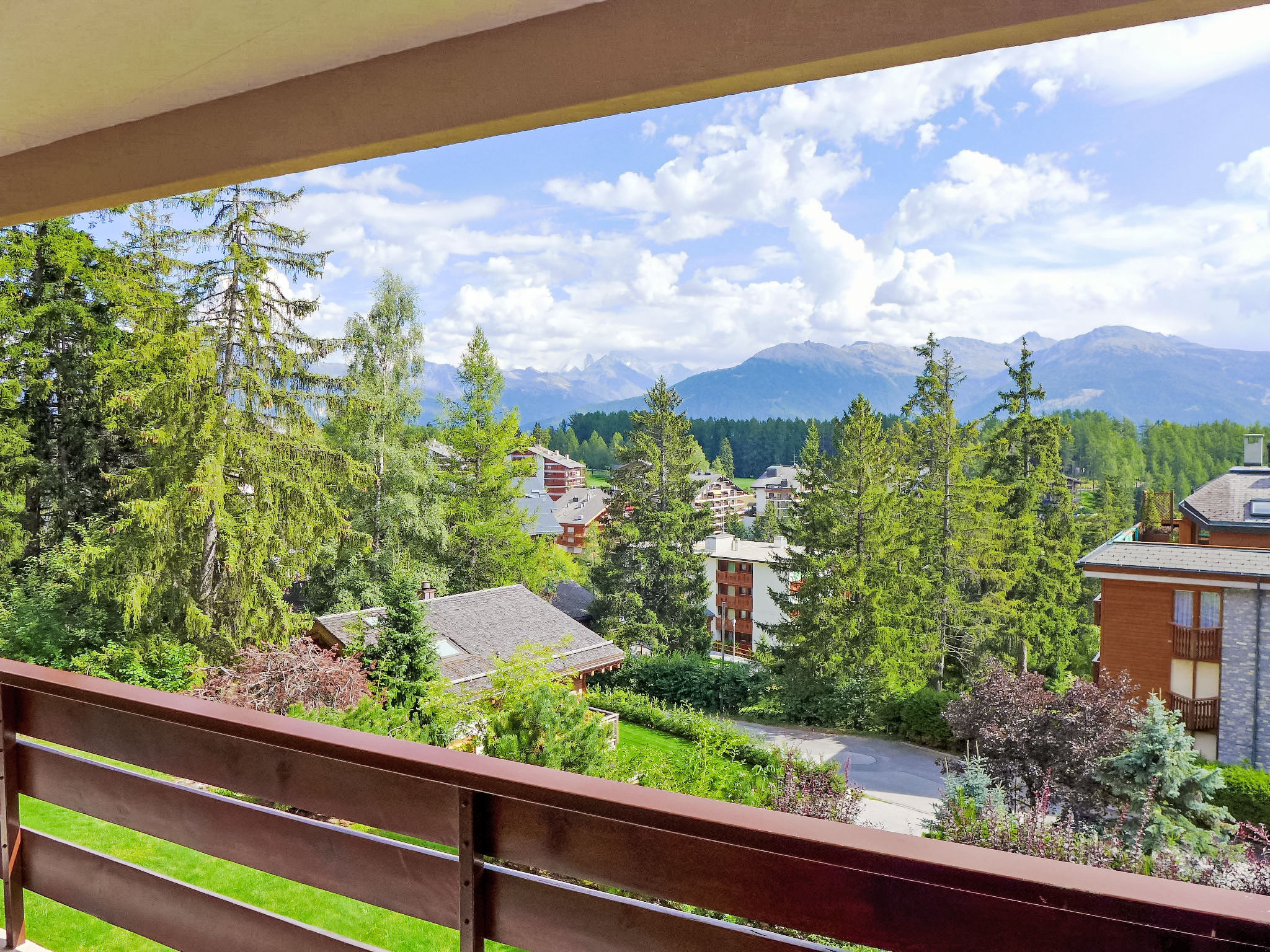 Mehrfamilienhaus "Monte Cristo". Am Ortsrand, 1 km vom Zentrum von Crans, ruhige, sonnige Lage. Im Hause: Fahrstuhl. Parkplatz (beschränkte Anzahl) beim Haus, Gemeinschaftsgarage. Restaurant 200 m, Bushaltestelle "Zier" 100 m. Golfplatz (18 Loch) 1.5 km, Skisportanlagen 800 m. Pendelbusverkehr im Winter und von Ende Juni bis Mitte September.