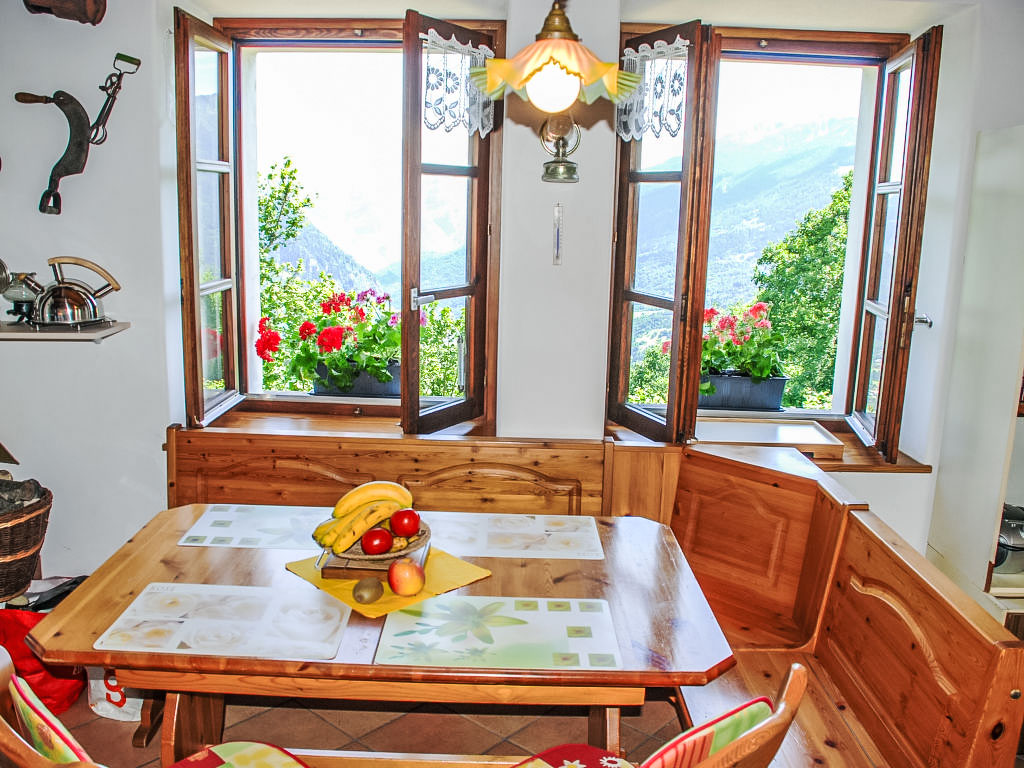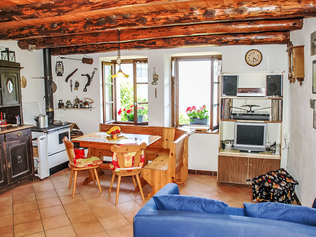 "Rustico Piancabella", 2-Zimmer-Haus 70 m2 auf 2 Stockwerken, Südlage. Teilweise abgeschrägt, einfach und komfortabel eingerichtet: offenes kleines Wohn-/Esszimmer mit 1 Diwanbett (120 cm, Länge 180 cm), Esstisch, Radio, Stereoanlage und Holzofen. Ausgang zum Garten, zum Gartensitzplatz. Offene Küche (3 Kochplatten) mit Essecke. Dusche/WC. Obergeschoss: (steile Treppe) 1 abgeschrägtes, offenes Zimmer, Deckenhöhe 120 - 155 cm mit 2 Betten (90 cm, Länge 200 cm), 1 Doppelbett (160 cm, Länge 200 cm). Natursteinböden. Terrasse teilweise überdacht, Südlage. Terrassenmöbel, Gartengrill (mobil), Liegestühle (3). Herrliche Panoramasicht auf die Berge, das Tal und die Landschaft. Zur Verfügung: Kinderhochstuhl, Babybett bis 2 Jahre (extra). Bitte beachten: geeignet für Familien. Nichtraucher-Haus. Maximal 2 Haustiere/Hunde erlaubt. Feuerlöscher.