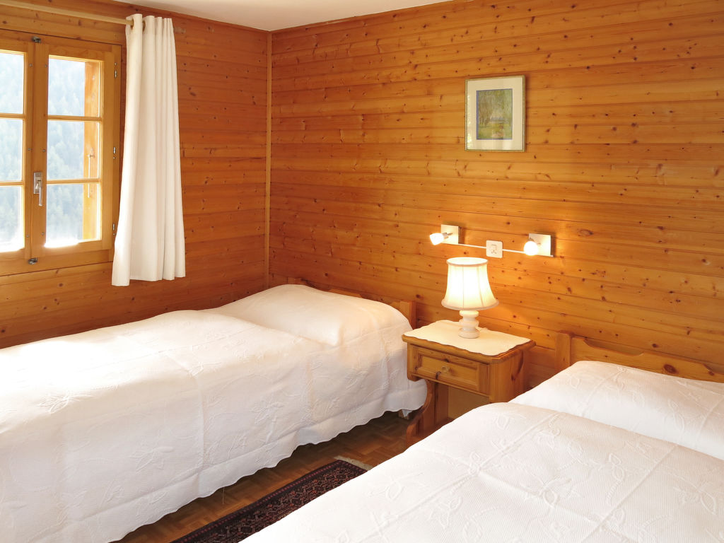 "Les Clarines", 4-Zimmer-Chalet 100 m2 auf 2 Stockwerken. Geschmackvoll und mit viel Holz eingerichtet: 1 Zimmer mit 1 franz. Bett (160 cm, Länge 200 cm), Esstisch und Essecke. Ausgang zum Balkon, zur Terrasse. 1 Zimmer mit 2 Betten (90 cm, Länge 190 cm) (Länge 190 cm). 1 Zimmer mit 2 Betten (90 cm, Länge 190 cm) (Länge 190 cm). Offene Küche (Backofen, Geschirrspüler, 4 Glaskeramikherd Platten, Mikrowelle, Tiefkühler, elektrische Kaffeemaschine, Racletteofen, Fondue Set (Käse)). Ausgang zum Balkon. Bad/WC, Dusche. E-Heizung. Obergeschoss: Wohn-/Esszimmer mit offenem Kamin, Kabel-TV, Internationale TV-Sender und Radio. Ausgang zum Balkon. Sep. WC. E-Heizung. Parkettböden. Abstellkammer. Panoramasicht. Zur Verfügung: Waschmaschine, Bügeleisen. Internet (Wireless LAN, gratis). Bitte beachten: Nichtraucher-Unterkunft. Maximal 2 Haustiere/Hunde erlaubt.