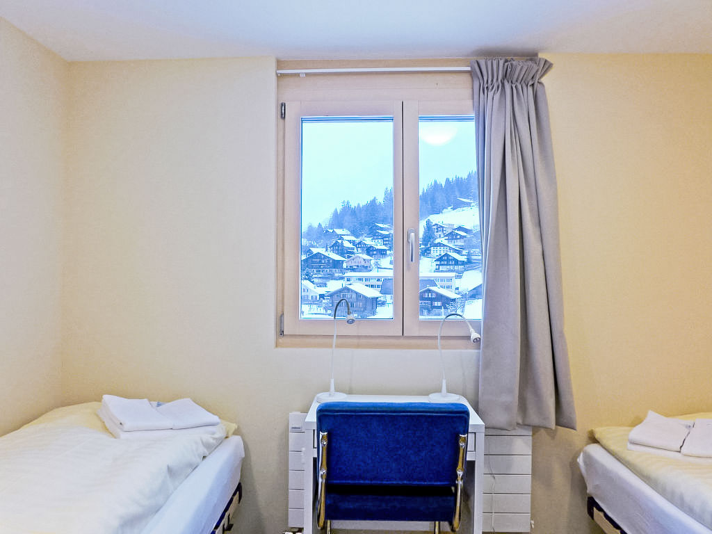 "Apt. 03", 5-Zimmer-Wohnung 96 m2 auf 2 Stockwerken. Objekt geeignet für 4 Erwachsene + 4 Kinder. Renoviert im Jahre 2016, modern und geschmackvoll eingerichtet: Wohn-/Esszimmer mit offenem Kamin, Kabel-TV, Radio, CD und DVD. 1 kleines Zimmer, ohne Schrank mit 2 Betten (90 cm, Länge 200 cm). Offene Küche (Geschirrspüler, 4 Induktionskochplatten, Toaster, Wasserkocher, elektrische Kaffeemaschine, Kapseln für die Kaffeemaschine (Nespresso) extra, Racletteofen, Kombinationsmikrowelle, Fondue Set (Käse)). Dusche/WC. Obergeschoss: 2 Zimmer, jedes Zimmer mit 1 Doppelbett (180 cm, Länge 200 cm). 1 kleines Zimmer, ohne Schrank mit 2 Betten (90 cm, Länge 200 cm). Bad/WC, sep. WC. Parkettböden. 2 Balkone, Westlage. Balkonmöbel. Sehr schöne Sicht auf die Berge, die Skipiste und die Ortschaft. Zur Verfügung: Bügeleisen, Haartrockner, Holz (extra). Internet (Wireless LAN, gratis). Bitte beachten: geeignet für Familien. Nichtraucher-Unterkunft.