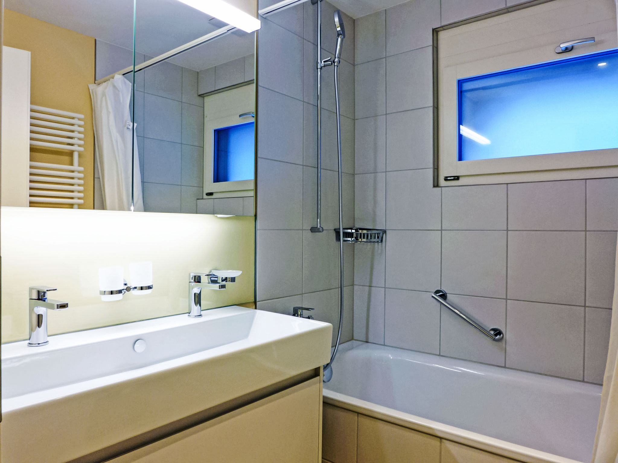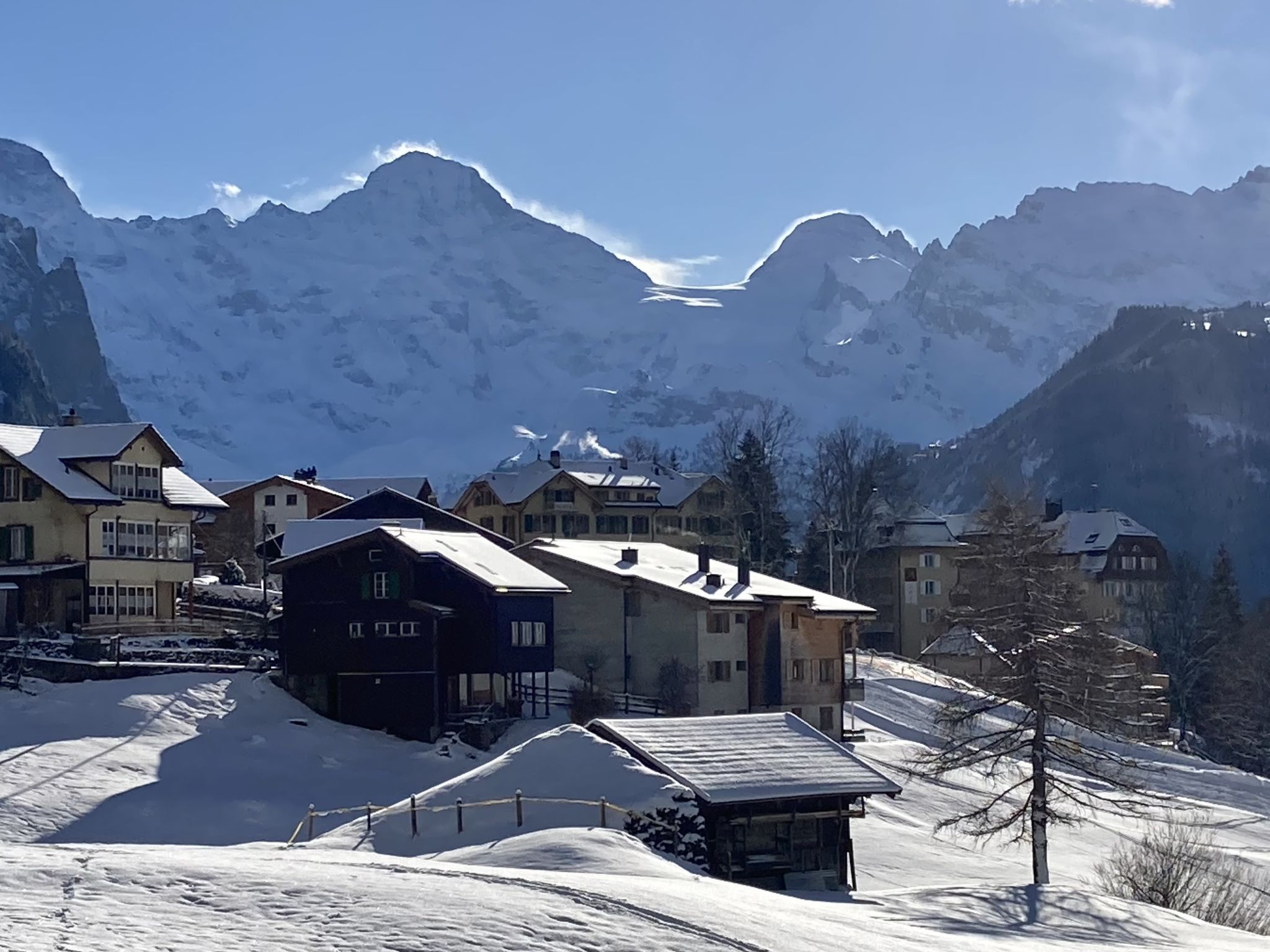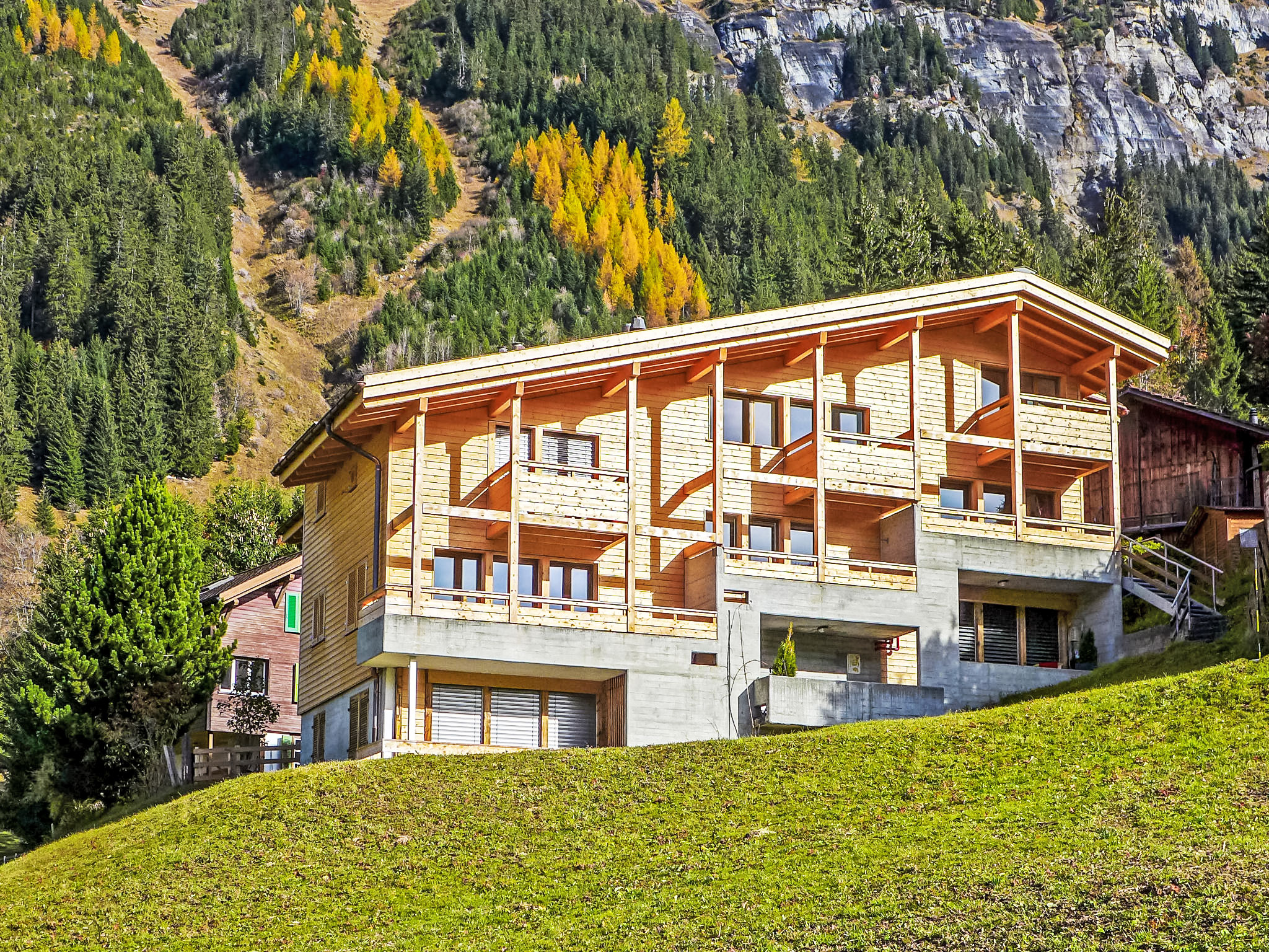 "Apt. 03", 5-Zimmer-Wohnung 96 m2 auf 2 Stockwerken. Objekt geeignet für 4 Erwachsene + 4 Kinder. Renoviert im Jahre 2016, modern und geschmackvoll eingerichtet: Wohn-/Esszimmer mit offenem Kamin, Kabel-TV, Radio, CD und DVD. 1 kleines Zimmer, ohne Schrank mit 2 Betten (90 cm, Länge 200 cm). Offene Küche (Geschirrspüler, 4 Induktionskochplatten, Toaster, Wasserkocher, elektrische Kaffeemaschine, Kapseln für die Kaffeemaschine (Nespresso) extra, Racletteofen, Kombinationsmikrowelle, Fondue Set (Käse)). Dusche/WC. Obergeschoss: 2 Zimmer, jedes Zimmer mit 1 Doppelbett (180 cm, Länge 200 cm). 1 kleines Zimmer, ohne Schrank mit 2 Betten (90 cm, Länge 200 cm). Bad/WC, sep. WC. Parkettböden. 2 Balkone, Westlage. Balkonmöbel. Sehr schöne Sicht auf die Berge, die Skipiste und die Ortschaft. Zur Verfügung: Bügeleisen, Haartrockner, Holz (extra). Internet (Wireless LAN, gratis). Bitte beachten: geeignet für Familien. Nichtraucher-Unterkunft.