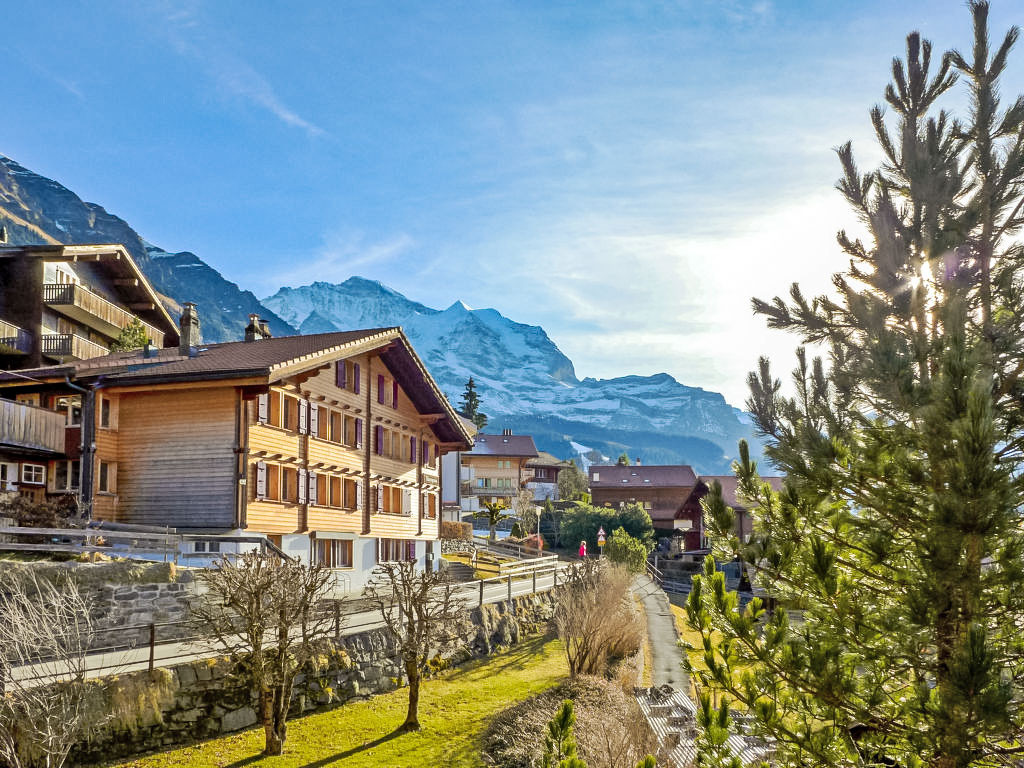 Appartementhaus "Schoneggacher". Oberhalb von Wengen, 300 m vom Zentrum, ruhige, sonnige Lage. Im Hause: Zentralheizung. Einkaufsservice vor Anreise möglich. Einkaufsgeschäft, Lebensmittelgeschäft, Supermarkt 400 m, Restaurant 200 m, Bar, Bäckerei 400 m, Zentrum zu Fuss in 7 Minuten erreichbar, Bahnstation "Wengen", Freibad 400 m. Luftseilbahn, Skisportanlagen 400 m, Skipisten 20 m. Bitte beachten: autofreie Ferienanlage. Bei guter Schneelage Zufahrt mit den Skiern bis zum Haus. Die Anreise erfolgt mit der Bergbahn. Anreise ist nur mit dem Zug ab Lauterbrunnen möglich – 14 Min. Fahrzeit.