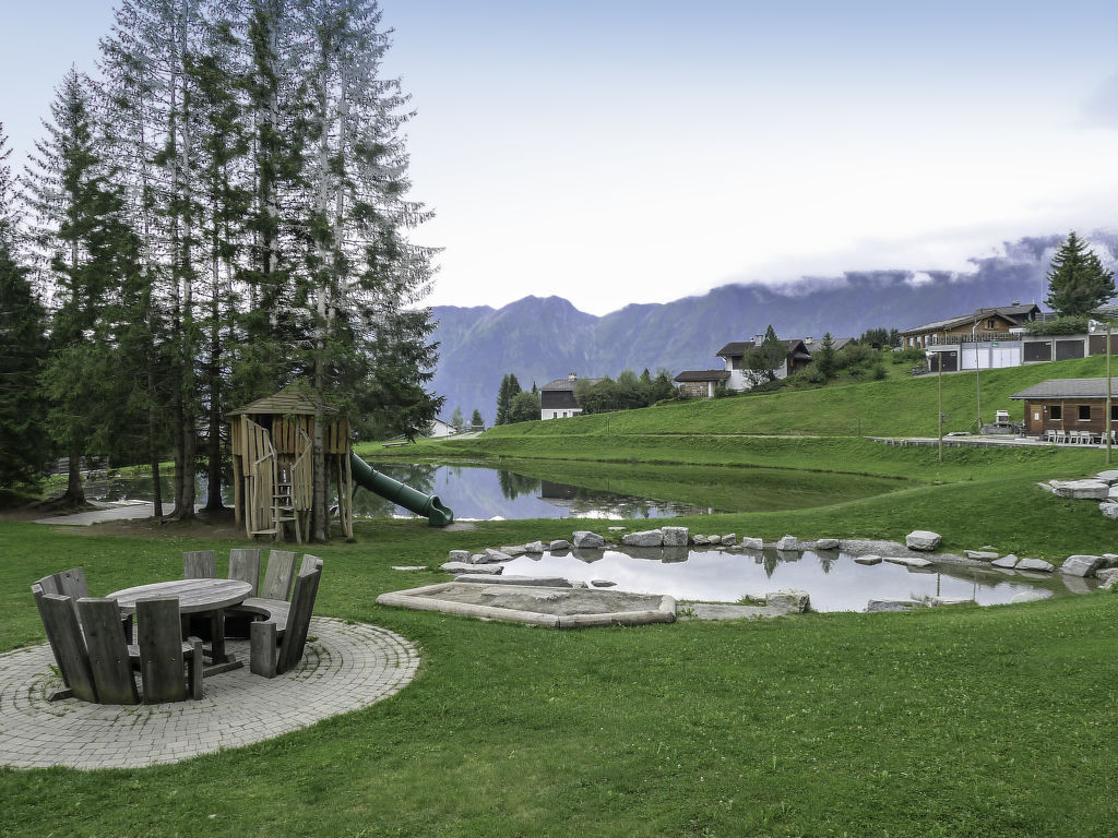 Oberurmein 10 km von Thusis: Kinderfreundliches, gemütliches Feriendorf "Superior Aclas Maiensäss Resort", 1'580 m.ü.M., Baujahr 2015, umgeben von Wiesen. Am Ortsrand, ruhige, sonnige Lage am Hang, 500 m vom See, 100 m vom Skigebiet, im Grünen, Richtung Südosten. In der Anlage: Empfang, Skiraum, Waschmaschine, Wäschetrockner (zur Mitbenutzung, extra). Zufahrt bis zum Haus (Bergstrasse). Parkplatz beim Haus. Lebensmittelgeschäft 4 km, Einkaufszentrum 10 km, Restaurant 100 m, Bahnstation "Thusis" 10 km, Badesee 500 m. Skilift, Skipisten, Skischule, Kinderskischule 100 m, Schlittelbahn 500 m. Das Restaurant ist im Sommer geschlossen. kleines Lebensmittelgeschäft in 100 m in der Wintersaison offen.