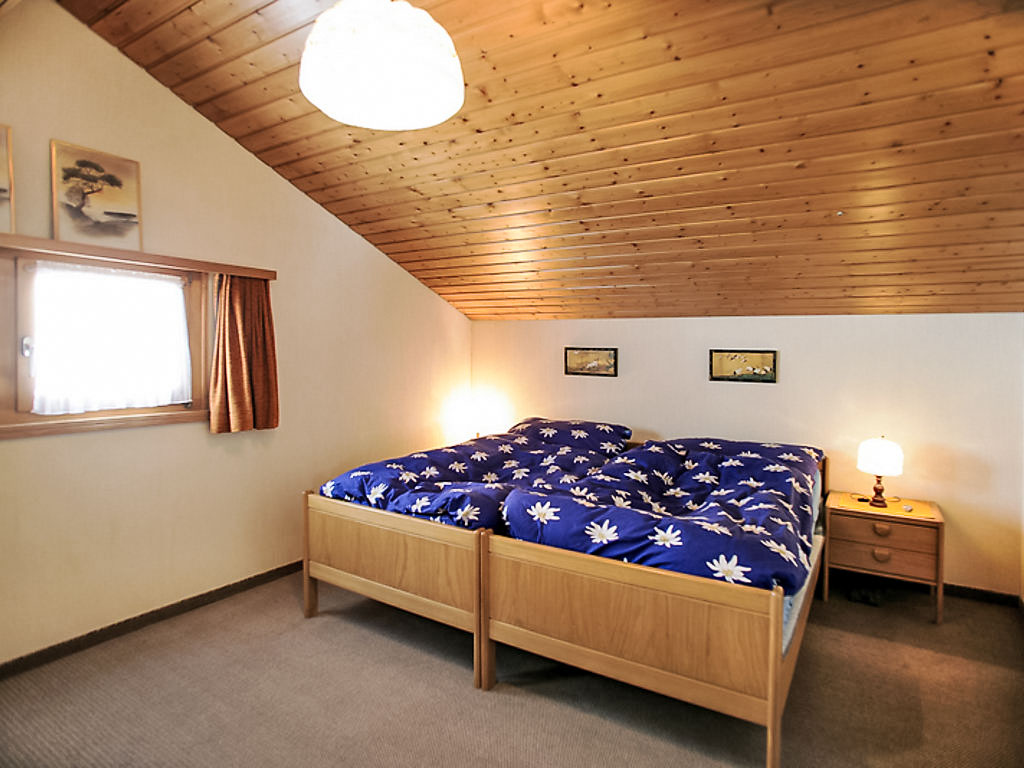 2-Zimmer-Attikawohnung 60 m2 auf 2 Stockwerken im 2. Stock. Gemütlich eingerichtet: Wohn-/Esszimmer mit Kabel-TV und Flachbildschirm. Ausgang zum Balkon, Richtung Osten. Offene Küche (3 Kochplatten, Backofen, elektrische Kaffeemaschine, Kapseln für die Kaffeemaschine (Delizio) extra). Dusche/WC. Obergeschoss: (Wendeltreppe) 1 abgeschrägtes Doppelzimmer mit 2 Betten. Sep. WC. Balkon. Balkonmöbel. Sehr schöne Sicht auf die Berge und die Ortschaft. Zur Verfügung: Haartrockner. Internet (Wireless LAN, gratis). Bitte beachten: Nichtraucher-Unterkunft. 2 Haustiere/Hunde erlaubt.
