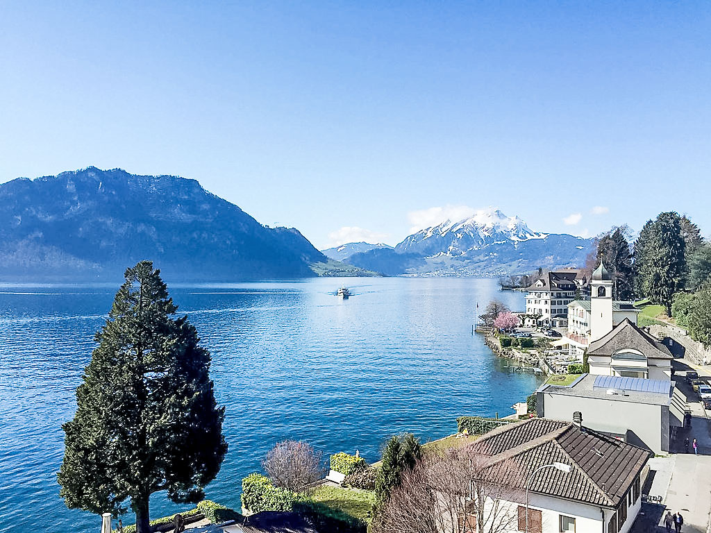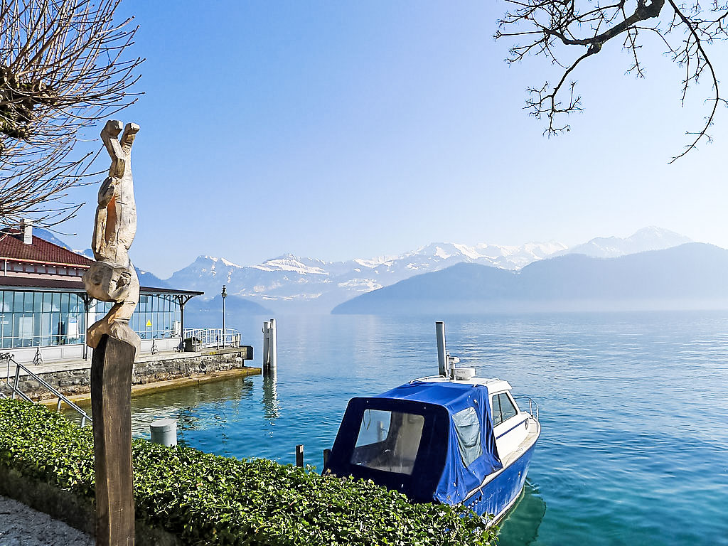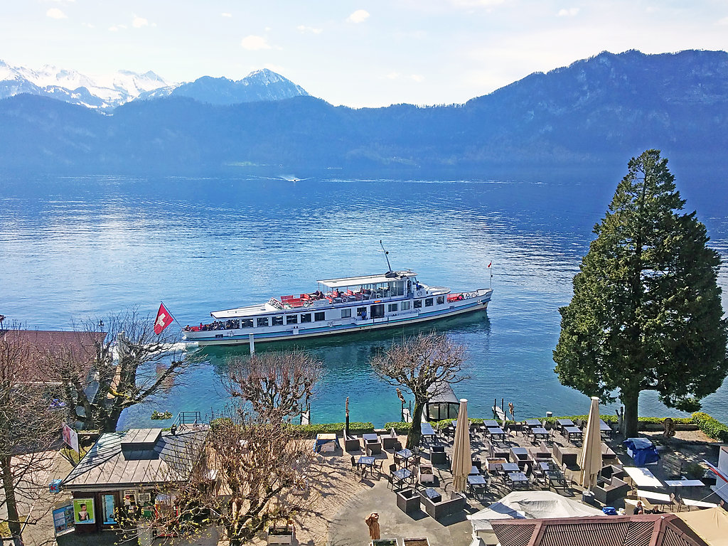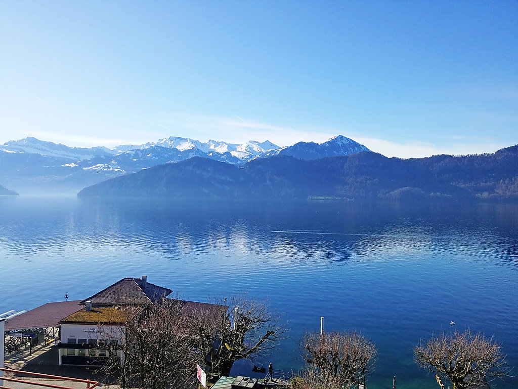 Komfortables Mehrfamilienhaus "Seeblick", auf 5 Stockwerken. Im Ort, zentrale, sonnige Lage, 50 m vom See. Im Hause: Fahrstuhl, Zentralheizung, Waschmaschine, Wäschetrockner (zur Mitbenutzung). Zufahrt bis zum Haus. Gemeinschaftsgarage beim Haus, öffentliche Parkplätze 200 m extra. Lebensmittelgeschäft, Supermarkt 400 m, Restaurant 100 m, Bushaltestelle, 50 m. Luftseilbahn 2 km, Skilift 5 km, Skipisten 5 km, Skischule 5 km, Langlaufloipe 5 km. Bekannte Seen in der Umgebung sind gut erreichbar: Vierwaldstättersee. Wandergebiete: Rigi.