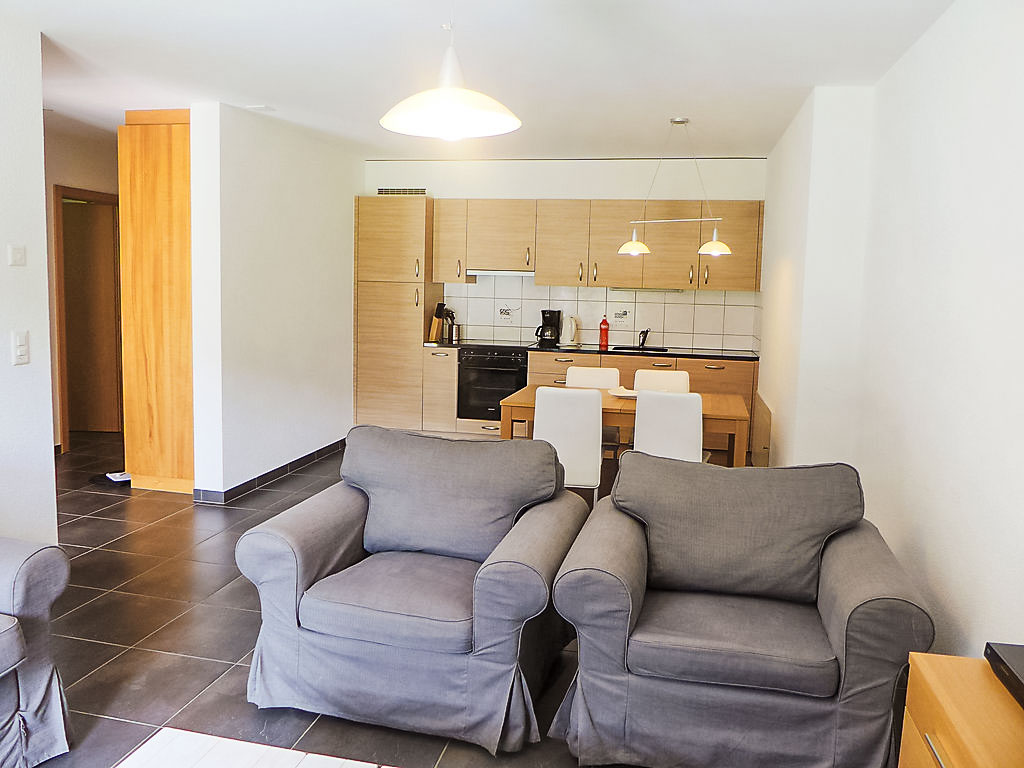 "Andromède 2-pièces A24", 2-Zimmer-Wohnung 50 bis 63 m2. Komfortabel und gemütlich eingerichtet: Wohn-/Esszimmer mit 1 Doppeldiwanbett und Kabel-TV (Flachbildschirm), Stereoanlage. 1 Doppelzimmer mit 1 Doppelbett. Ausgang zum Gartensitzplatz. Offene Küche (Backofen, Geschirrspüler, 4 Glaskeramikherd Platten, Mikrowelle, elektrische Kaffeemaschine, Fondue Set (Käse)). Bad/WC. Schöne Sicht auf die Berge und die Ortschaft. Zur Verfügung: Internet (Wireless LAN, gratis). Bitte beachten: Nichtraucher-Unterkunft. Maximal 2 Haustiere/Hunde erlaubt. Beim Mietobjekt handelt es sich um ein Typenhaus bzw. Um eine Typenwohnung.
