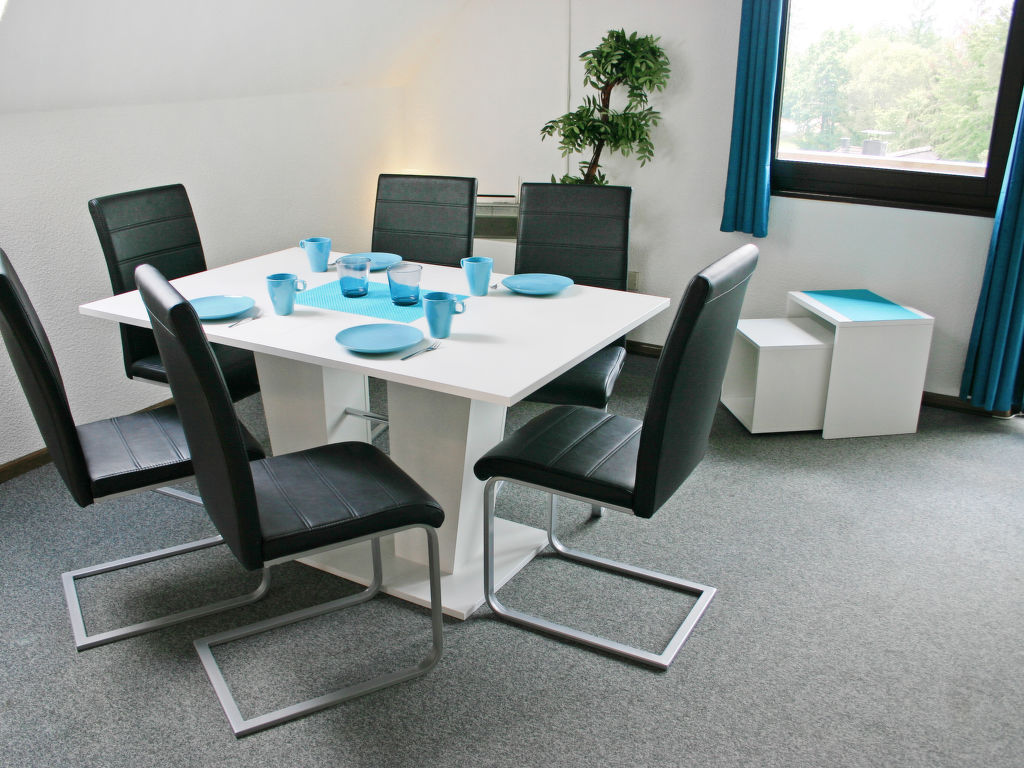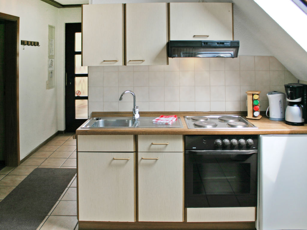 "Sauerland", 6-Zimmer-Haus 130 m2 auf 2 Stockwerken, im ebenerdigen Untergeschoss. Gemütlich eingerichtet: Wohn-/Esszimmer 40 m2 mit Sat-TV (Flachbildschirm), Holzofen. Ausgang zum Garten, zur Terrasse. 2 Zimmer 10 m2, jedes Zimmer mit 1 Doppelbett (180 cm, Länge 190 cm). Kochnische (4 Kochplatten, Backofen, Geschirrspüler, Toaster, Wasserkocher, elektrische Kaffeemaschine). Dusche/WC. Obergeschoss: abgeschrägtes Wohn-/Esszimmer 40 m2 mit Sat-TV (Flachbildschirm), Holzofen. Ausgang zum Balkon. 1 abgeschrägtes Zimmer 10 m2 mit 1 Doppelbett (180 cm, Länge 190 cm). 1 abgeschrägtes Zimmer 10 m2 mit 2 Betten (90 cm, Länge 190 cm). Kochnische (4 Kochplatten, Backofen, elektrische Kaffeemaschine). Dusche/WC. E-Heizung. Balkon 6 m2, Terrasse 30 m2. Terrassenmöbel, Balkonmöbel, Gartengrill (mobil). Zur Verfügung: Bügeleisen, Kinderhochstuhl, Holz (extra). Internet (Wireless LAN, gratis). Bitte beachten: Nichtraucher-Haus. Maximal 2 Haustiere/Hunde erlaubt. Rauchmelder, Feuerlöscher. Netflix (kostenlos). BITTE BEACHTEN: Das Zweifamilienhaus ist die Kombination der beiden voneinander unabhängigen Wohnungen DE3558.200.2 und DE3558.200.3 (Zugang zum Obergeschoss über einen Steg, Zugang zum ebenerdigen Untergeschoss über 20 Treppenstufen).