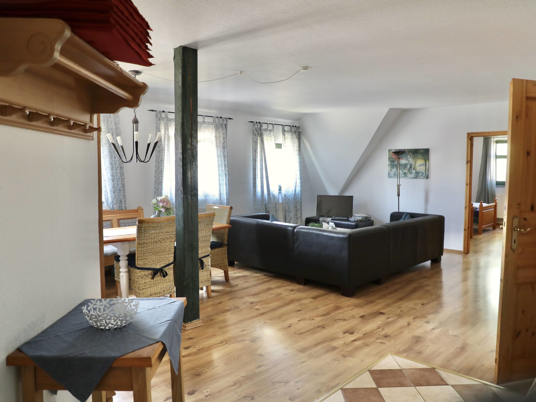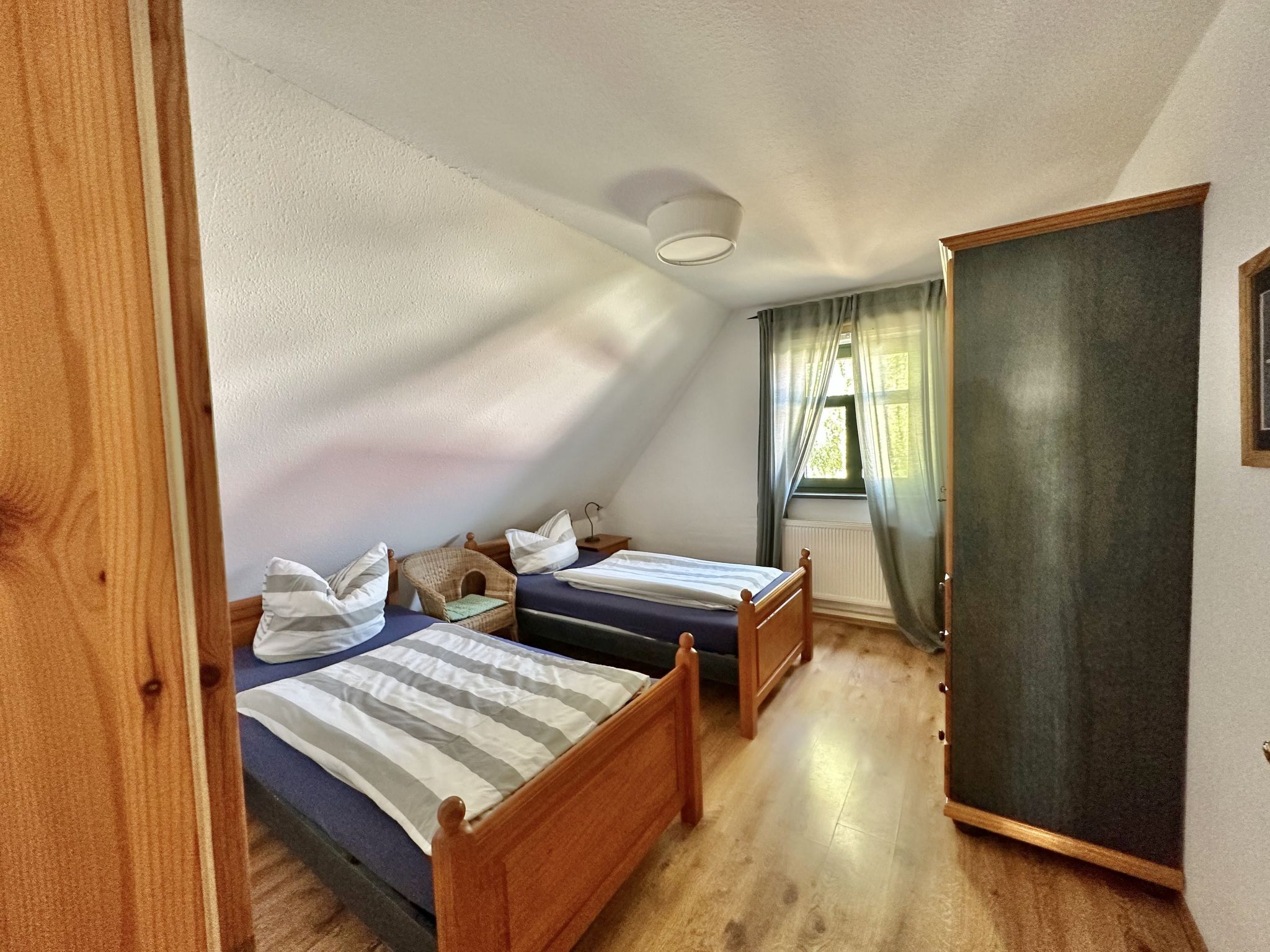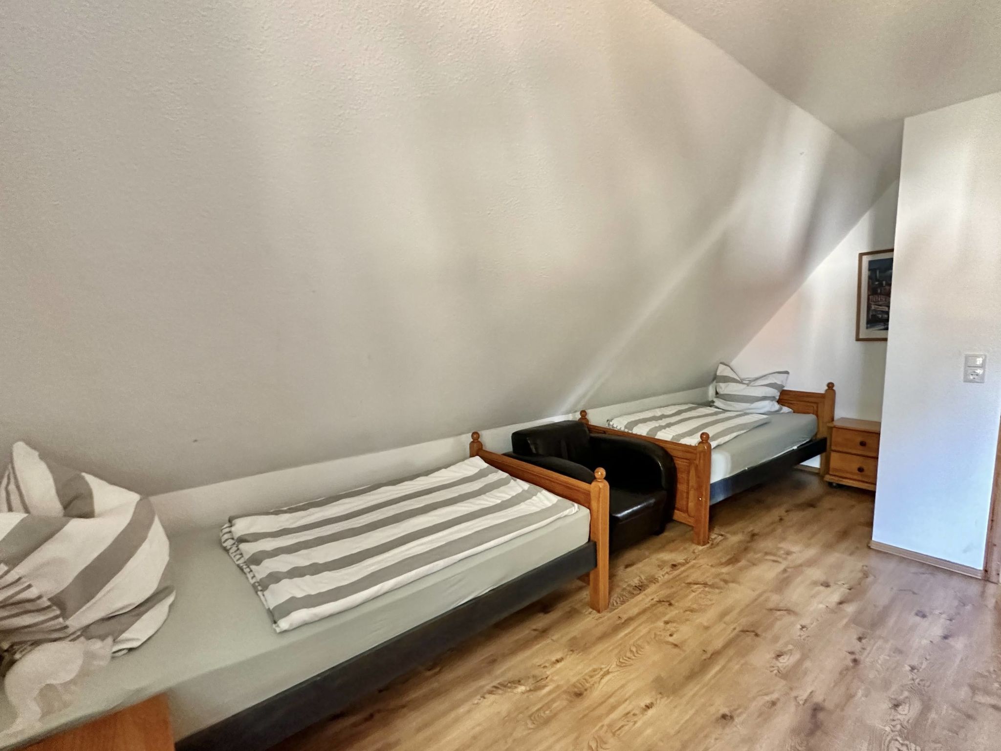 4-Zimmer-Wohnung 105 m2 im 1. Stock. Abgeschrägtes Wohn-/Esszimmer mit Sat-TV (Flachbildschirm). 2 abgeschrägte Zimmer, jedes Zimmer mit 2 Betten. 1 abgeschrägtes Zimmer mit 1 Bett und 1 Doppelbett. Kochnische (Backofen, Geschirrspüler, elektrische Kaffeemaschine). Dusche/WC. Zur Verfügung: Internet (Wireless LAN, gratis). Bitte beachten: Nichtraucher-Unterkunft. Maximal 2 Haustiere/Hunde erlaubt.