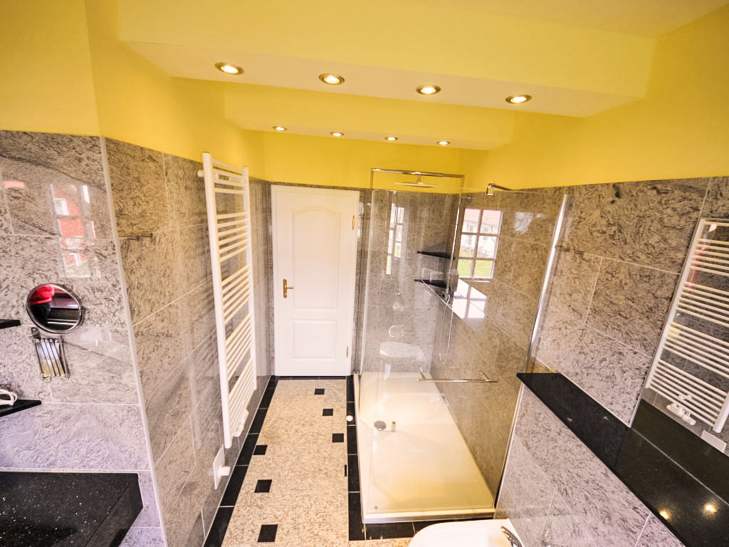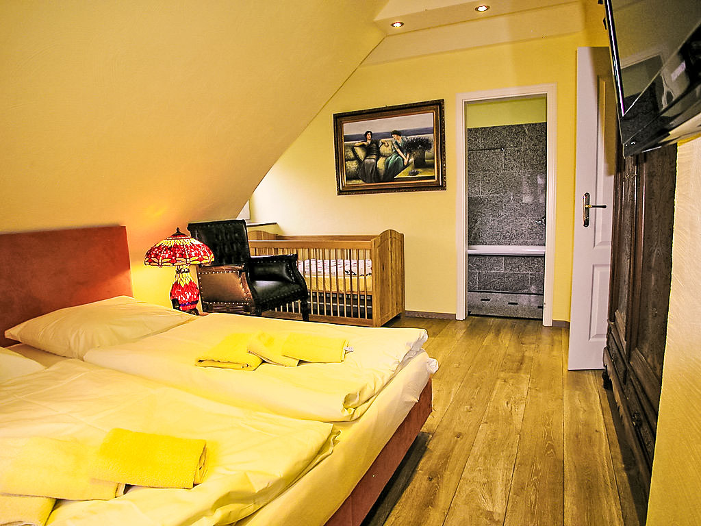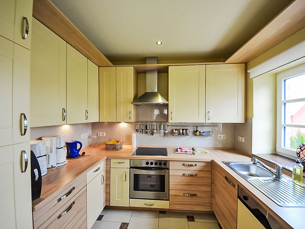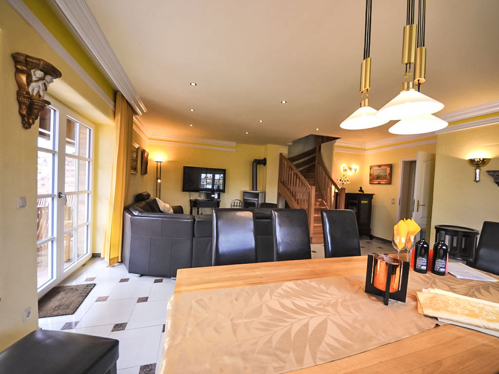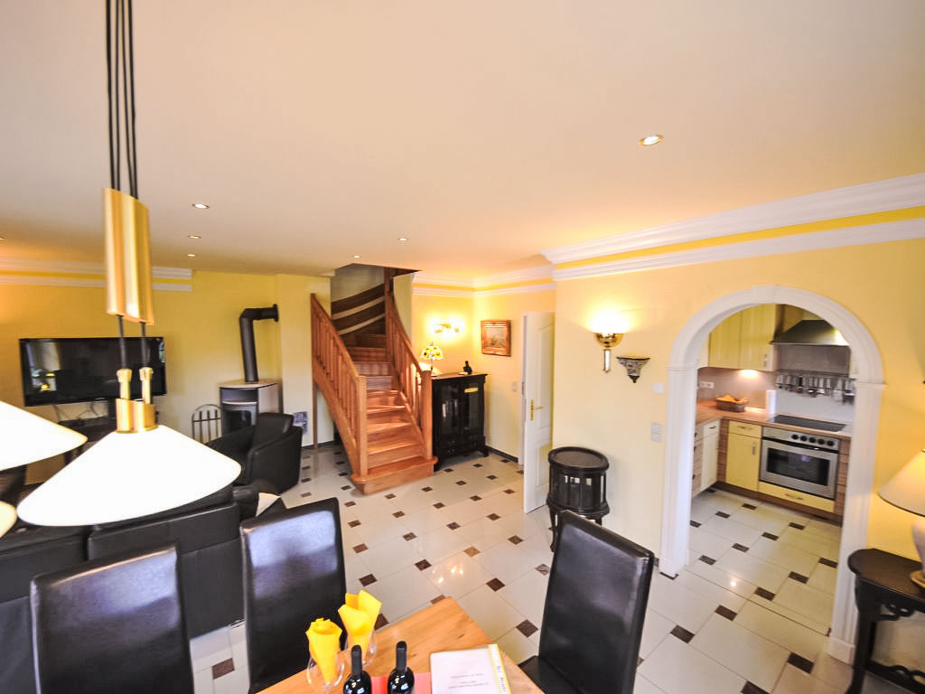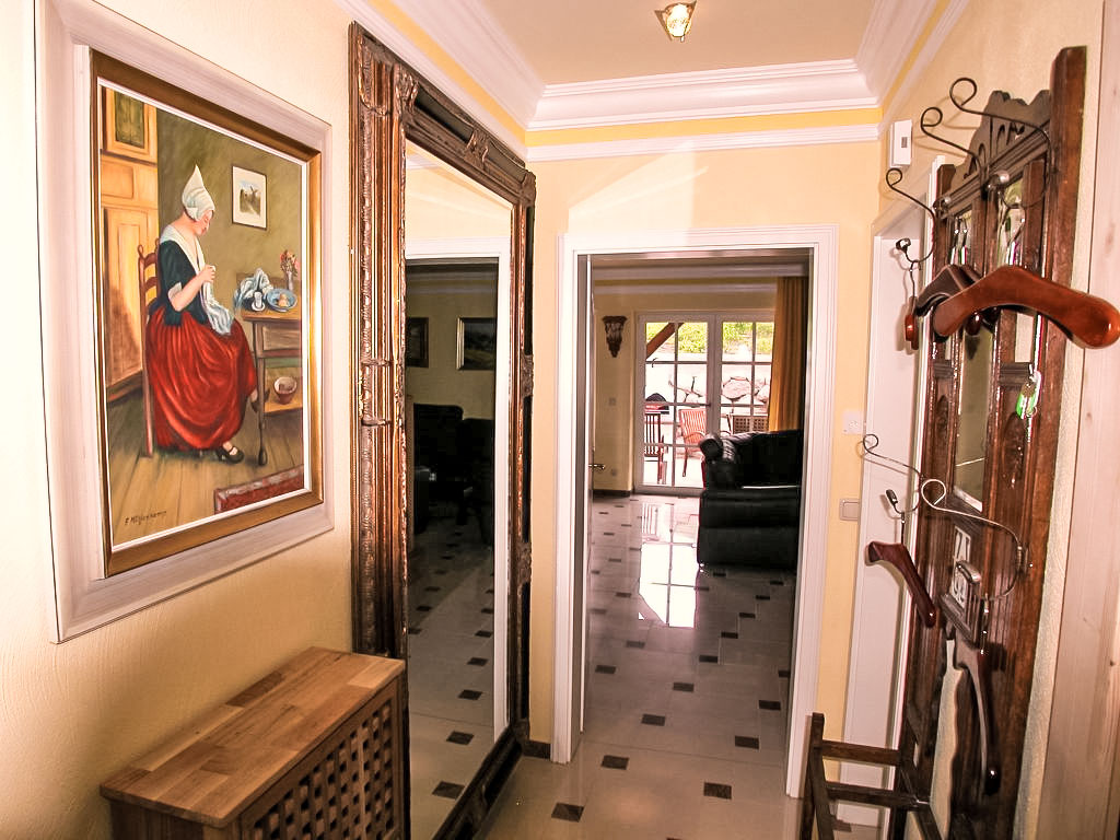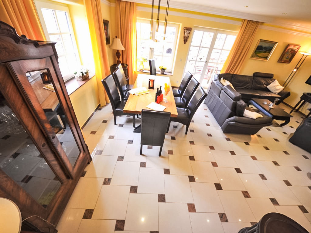 "Bel Monte", 5-Zimmer-Doppelhaushälfte 140 m2 auf 3 Stockwerken, im Erdgeschoss. Komfortabel und geschmackvoll eingerichtet: Wohn-/Esszimmer mit Schwedenofen und Sat-TV (Flachbildschirm), Video und Stereoanlage. Ausgang zum Garten, zur Terrasse. Offene Küche (Backofen, Geschirrspüler, 4 Glaskeramikherd Platten, Mikrowelle, elektrische Kaffeemaschine). Dusche/WC. Bodenheizung. Obergeschoss: 2 Doppelzimmer. 1 Doppelzimmer mit Bad/Bidet/WC und Sat-TV. Dusche/Bidet/WC. Dachgeschoss: 1 abgeschrägtes Doppelzimmer mit Dusche/WC. Terrasse teilweise überdacht. Terrassenmöbel, Gartengrill. Zur Verfügung: Waschmaschine, Wäschetrockner, Sauna, Kinderhochstuhl, Holz (gratis). Internet (Wireless LAN, gratis). Bitte beachten: Nichtraucher-Haus. Maximal 1 Haustier/Hund erlaubt. Aus den Zimmern im Obergeschoss teilweise Blick auf die Küste und den Yachthafen. Auf Wunsch und nach Vorbestellung kann ein dritter PKW-Stellplatz für EUR 4.00/Tag bereitgestellt werden.