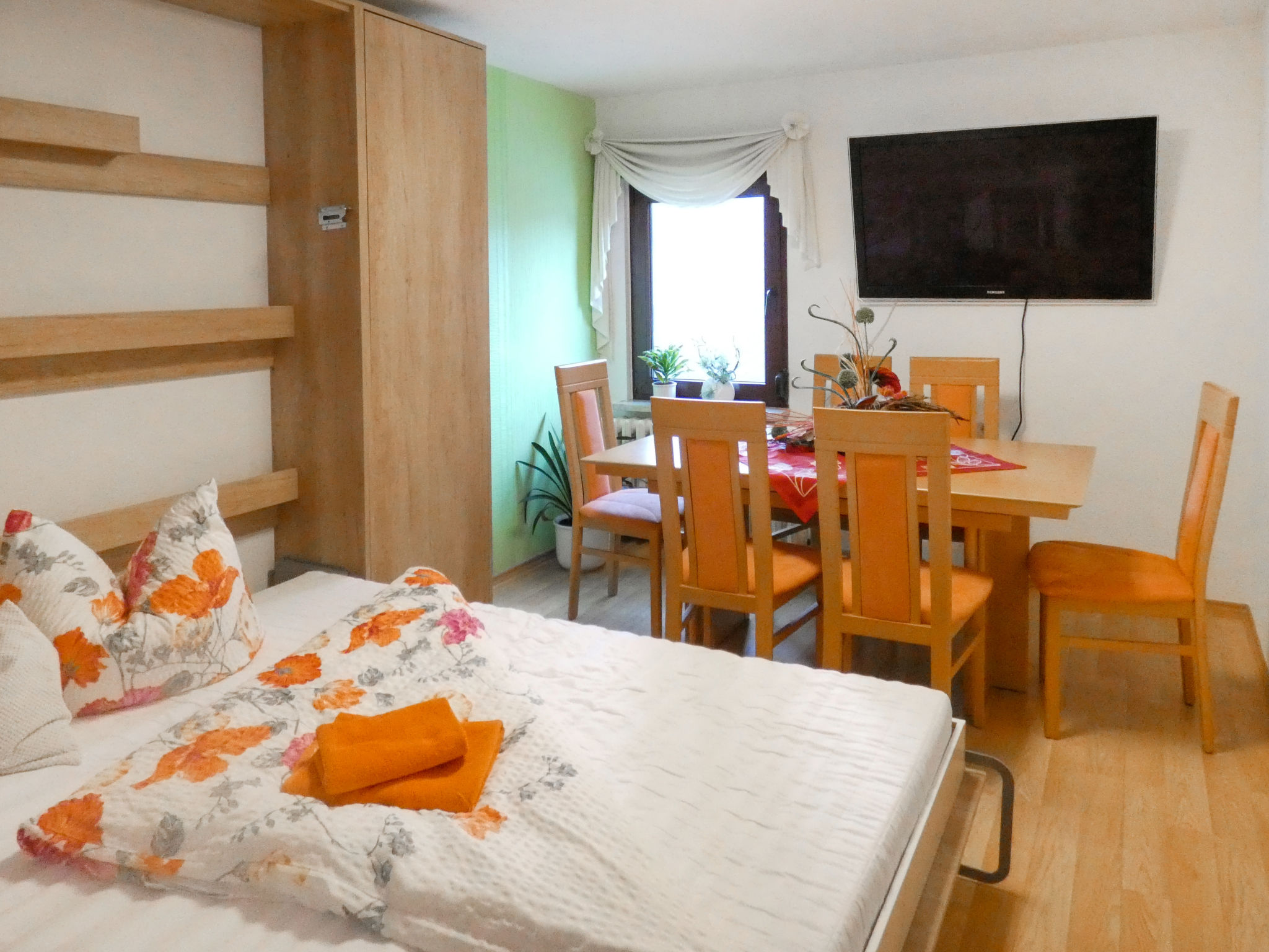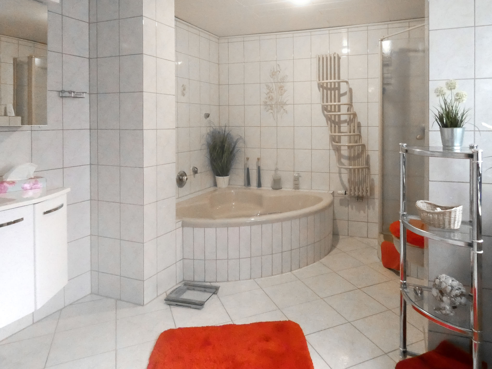 3-Zimmer-Wohnung 85 m2, im Erdgeschoss. Gemütlich und mit viel Holz eingerichtet: Wohnzimmer 18 m2 mit Kabel-TV (Flachbildschirm). Esszimmer 14 m2 mit Kabel-TV (Flachbildschirm). 1 Zimmer 16 m2 mit 1 Doppelbett (160 cm, Länge 200 cm). Offene Küche 14 m2 (Backofen, Geschirrspüler, 4 Glaskeramikherd Platten, Mikrowelle) mit Bar. Bad/Dusche/WC mit Eckbadewanne. Kleiner Gartensitzplatz 20 m2, grosser Gartensitzplatz 30 m2. Terrassenmöbel, Gartengrill (mobil). Zur Verfügung: Kinderhochstuhl, Haartrockner. Internet (Wireless LAN, gratis). Bitte beachten: Nichtraucher-Unterkunft. Rauchmelder. Bei Reservierung der maximal 4 Zusatzbetten stehen im Wohn- und Esszimmer jeweils ein Doppeldiwanbett (180 cm, Länge 200 cm) zur Verfügung.