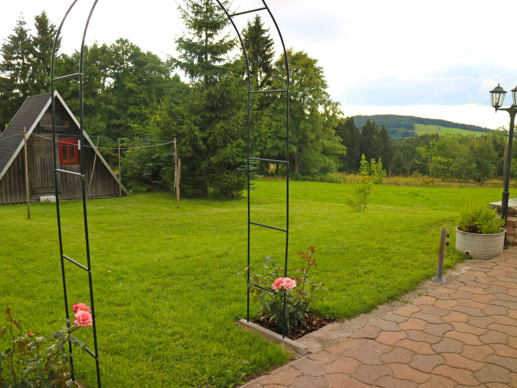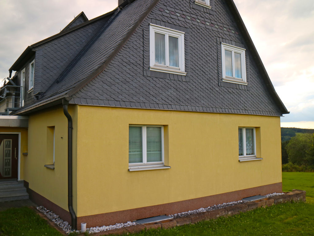 Modernes Zweifamilienhaus "Matz", umgeben von Wiesen. Am Ortsrand, 800 m vom Zentrum von Cursdorf, 250 m vom Waldrand, an einer Hauptstrasse. Zur Mitbenutzung: Grundstück 3'000 m2, grosser Garten mit Blumen und Bäumen, Liegewiese 500 m2. Grill. Im Hause: Zentralheizung. Parkplatz (überdacht) beim Haus. Einkaufsgeschäft 2 km, Lebensmittelgeschäft 2 km, Supermarkt 2 km, Restaurant 1 km, Bäckerei 2 km, Café 7 km, Fahrradverleih 7 km, Freibad 5 km. Wanderwege ab Haus 50 m, Skilift 2 km, Skipisten 2 km, Skiverleih 7 km. Nahe gelegene Sehenswürdigkeiten: Oberweissbacher Bergbahn 3 km, Feengrotten Saalfeld 30 km. Bekannte Skigebiete sind gut erreichbar: Steinach (Silbersattel) 20 km. Bitte beachten: Fahrzeug empfohlen. Skiwanderweg 50 m.