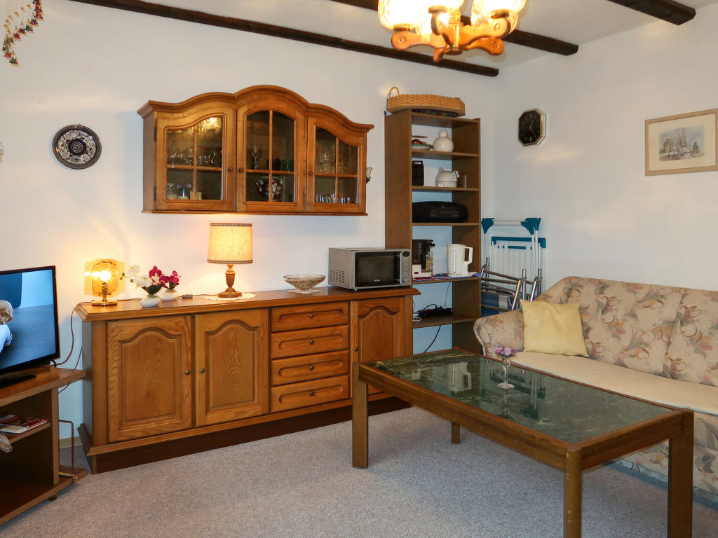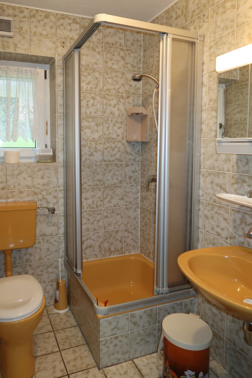 2-Zimmer-Wohnung 38 m2, im Erdgeschoss. Gemütlich eingerichtet: Wohn-/Esszimmer 18 m2 mit 1 Diwanbett (80 cm, Länge 200 cm), Sat-TV (Flachbildschirm). 1 Zimmer 12 m2 mit 1 Doppelbett (180 cm, Länge 190 cm). Kochnische (2 Kochplatten, Mikrowelle, elektrische Kaffeemaschine). Dusche/WC. Kleine Terrasse 8 m2 teilweise überdacht. Terrassenmöbel. Schöne Sicht auf den See und die Berge. Bitte beachten: Nichtraucher-Unterkunft. Rauchmelder. Allergie-Matratzen im Schlafzimmer. See 150 m.