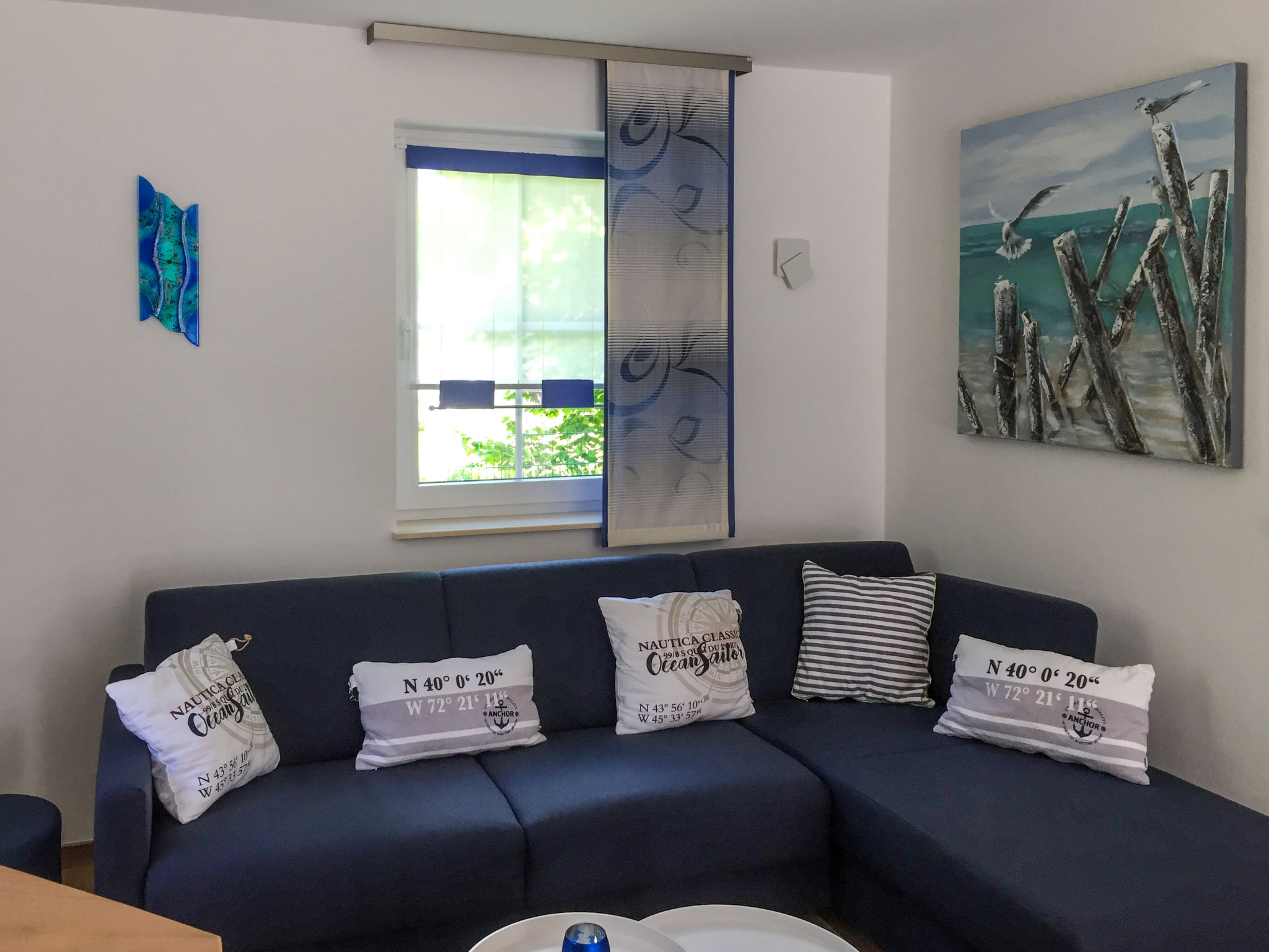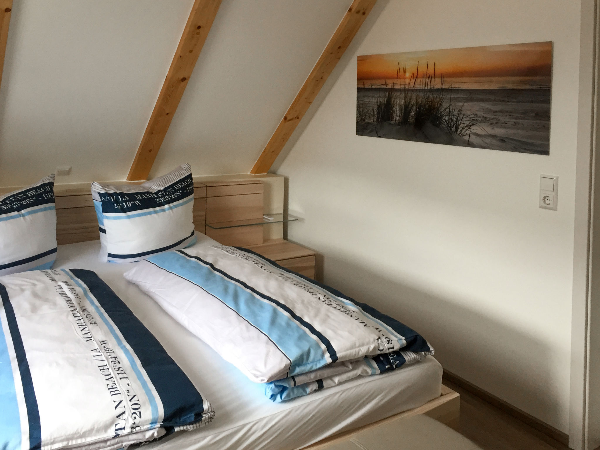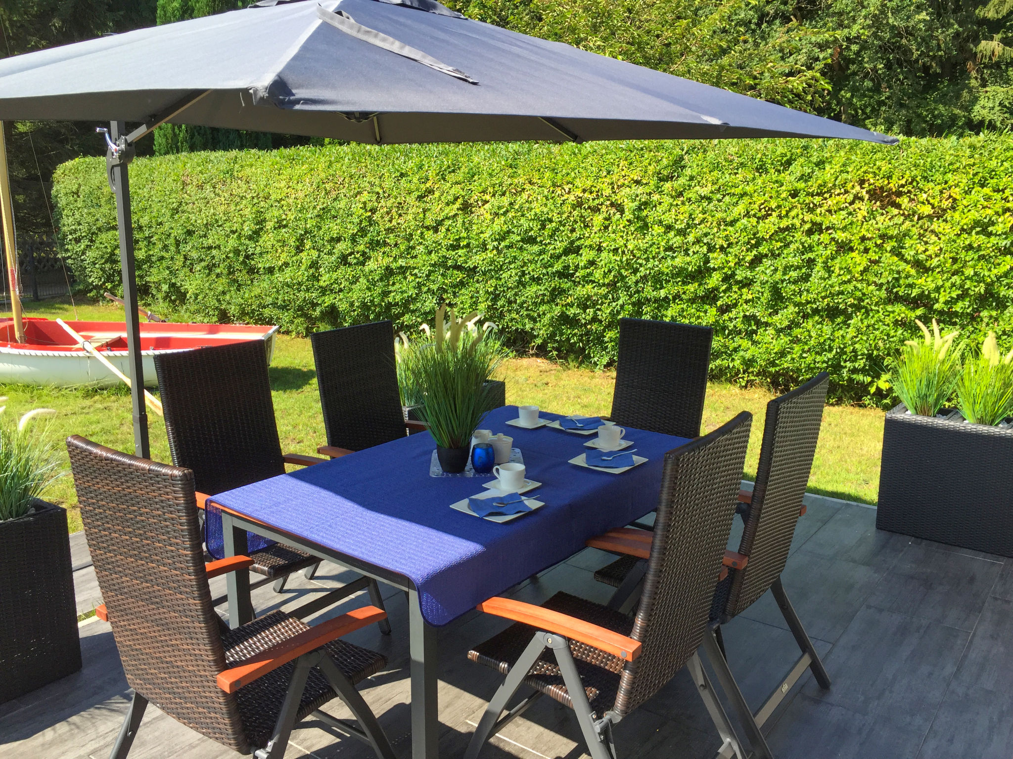 3-Zimmer-Haus 80 m2 auf 2 Stockwerken, im Erdgeschoss. Gemütlich eingerichtet: Wohnzimmer 30 m2 mit Schwedenofen und Sat-TV (Flachbildschirm), CD und Stereoanlage. Ausgang zum Garten, zur Terrasse. Offene Küche 10 m2 (Backofen, Geschirrspüler, 4 Glaskeramikherd Platten, Mikrowelle, Grill, elektrische Kaffeemaschine) mit Esstisch. Dusche/WC. Obergeschoss: (Wendeltreppe) 2 abgeschrägte Zimmer 18 m2, jedes Zimmer mit 1 Doppelbett (180 cm, Länge 200 cm). Dusche/WC. Terrasse 20 m2. Terrassenmöbel, Gartengrill (mobil). Zur Verfügung: Waschmaschine, Telefon (extra), Haartrockner, Holz (extra). Internet (Wireless LAN, gratis). Bitte beachten: für Kleinkinder nicht geeignet. Nichtraucher-Haus. Rauchmelder, Feuerlöscher.