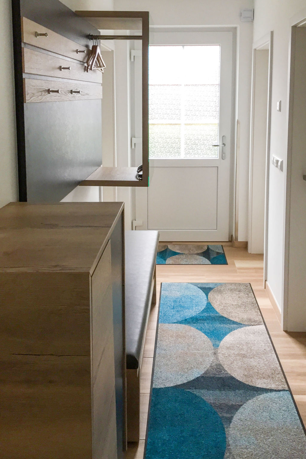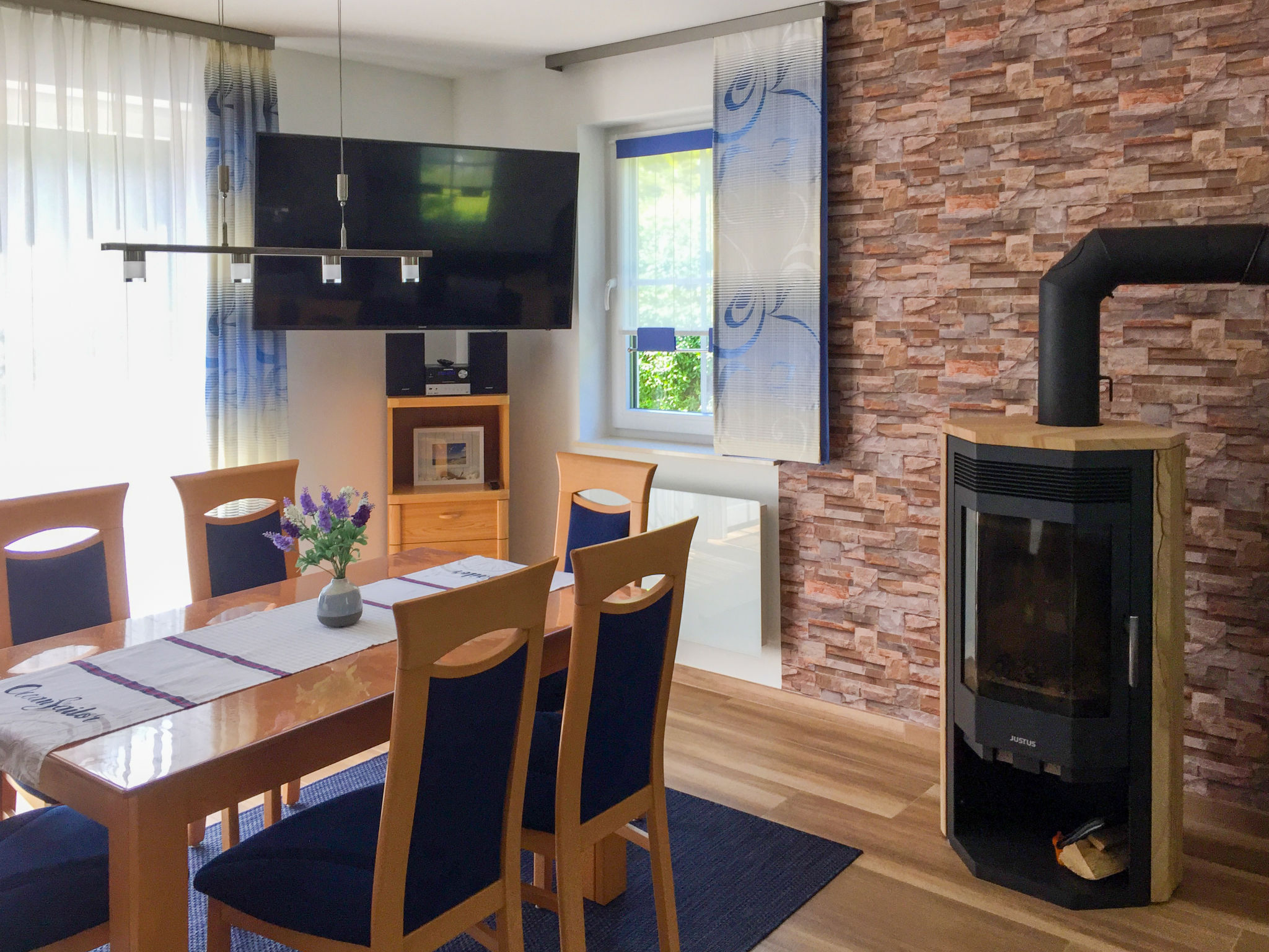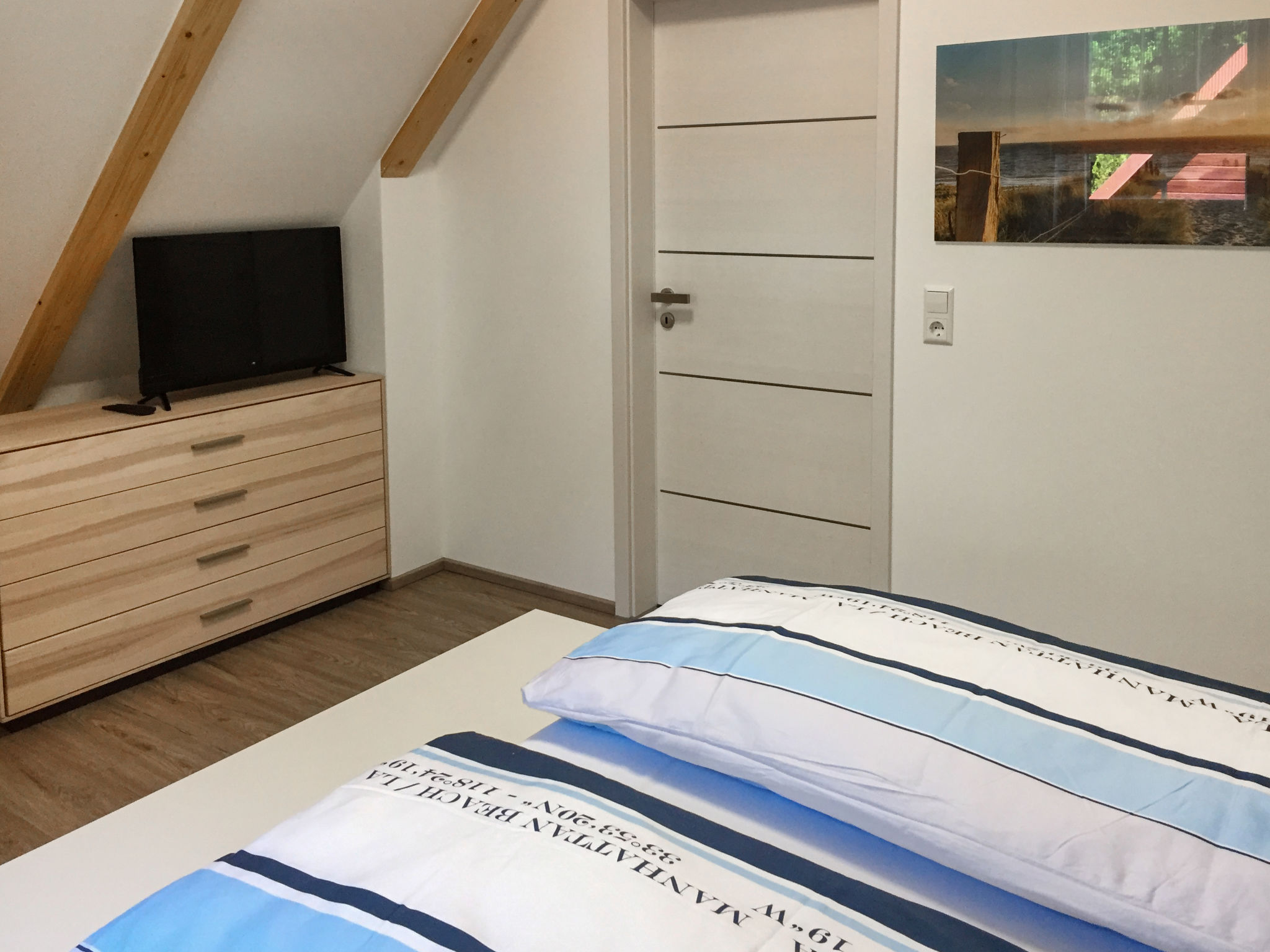 3-Zimmer-Haus 80 m2 auf 2 Stockwerken, im Erdgeschoss. Gemütlich eingerichtet: Wohnzimmer 30 m2 mit Schwedenofen und Sat-TV (Flachbildschirm), CD und Stereoanlage. Ausgang zum Garten, zur Terrasse. Offene Küche 10 m2 (Backofen, Geschirrspüler, 4 Glaskeramikherd Platten, Mikrowelle, Grill, elektrische Kaffeemaschine) mit Esstisch. Dusche/WC. Obergeschoss: (Wendeltreppe) 2 abgeschrägte Zimmer 18 m2, jedes Zimmer mit 1 Doppelbett (180 cm, Länge 200 cm). Dusche/WC. Terrasse 20 m2. Terrassenmöbel, Gartengrill (mobil). Zur Verfügung: Waschmaschine, Telefon (extra), Haartrockner, Holz (extra). Internet (Wireless LAN, gratis). Bitte beachten: für Kleinkinder nicht geeignet. Nichtraucher-Haus. Rauchmelder, Feuerlöscher.