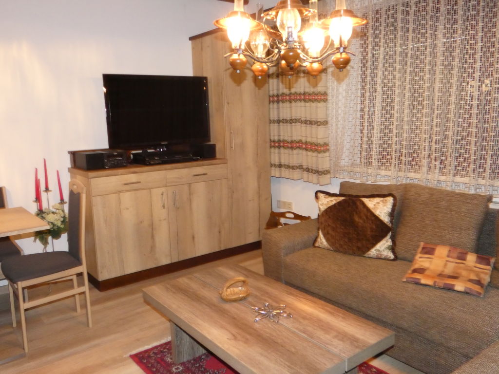 2-Zimmer-Wohnung 38 m2, im Erdgeschoss. Gemütlich eingerichtet: Wohn-/Esszimmer 18 m2 mit 1 Diwanbett (80 cm, Länge 200 cm), Sat-TV (Flachbildschirm), Video, CD, Stereoanlage und DVD. 1 Zimmer 12 m2 mit 1 Doppelbett (180 cm, Länge 190 cm). Kochnische (2 Kochplatten, Mini-Backofen, Geschirrspüler, Mikrowelle, elektrische Kaffeemaschine). Dusche/WC. G-Heizung. Kleine Terrasse 15 m2 teilweise überdacht. Terrassenmöbel. Schöne Sicht auf die Berge. Zur Verfügung: Haartrockner. Internet (Wireless LAN, gratis). IPod docking station. Bitte beachten: Nichtraucher-Unterkunft. Maximal 1 Haustier/Hund erlaubt. Rauchmelder. See 150 m. Bei Reservierung des Zusatzbettes steht Ihnen das Diwanbett im Wohn-/Esszimmer zur Verfügung.