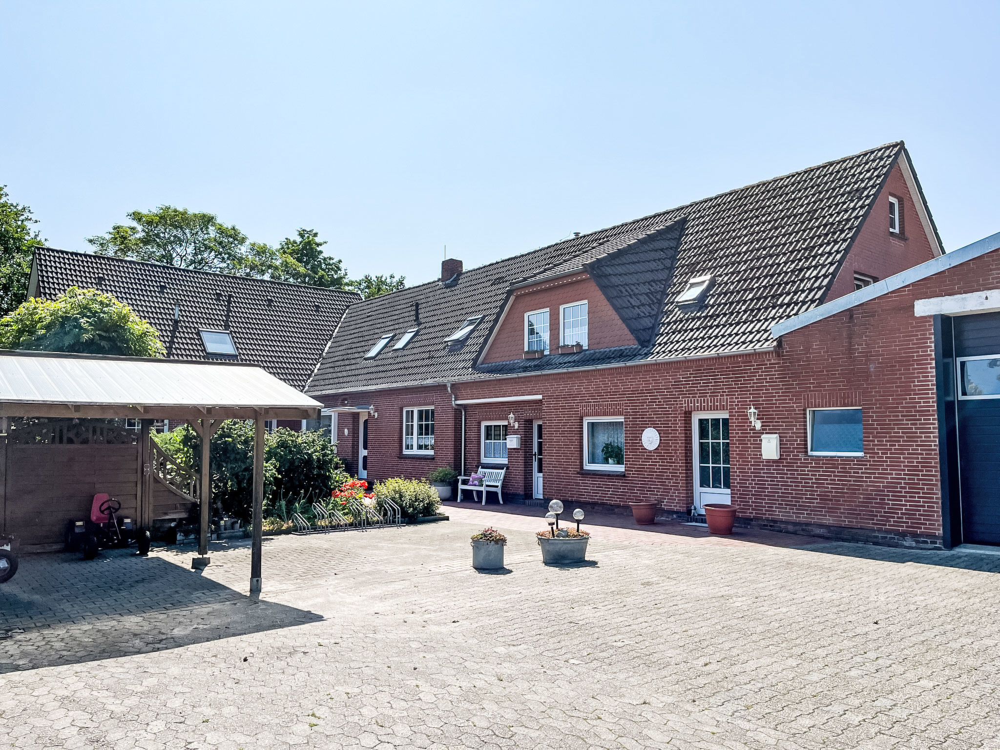 Dreifamilienhaus "Osterkamp". Im Ortsteil Eversmeer, am Ortsrand, 4.7 km vom Zentrum von Westerholt, ruhige Lage, 17 km vom Meer, 500 m vom See, 18 km vom Strand. Im Hause: Zentralheizung. Parkplatz beim Haus. Einkaufsgeschäft 5.5 km, Lebensmittelgeschäft 5.5 km, Supermarkt 5.5 km, Café 300 m, Bushaltestelle 750 m, Bahnstation "Norden" 18 km, Fähre "Bensersiel" 24 km, Sandstrand 18 km, Freibad 13 km, Hallenbad 13 km. Golfplatz (9 Loch) 16 km. Bekannte Seen in der Umgebung sind gut erreichbar: Ewiges Meer 500 m. Bitte beachten: Fahrzeug empfohlen.