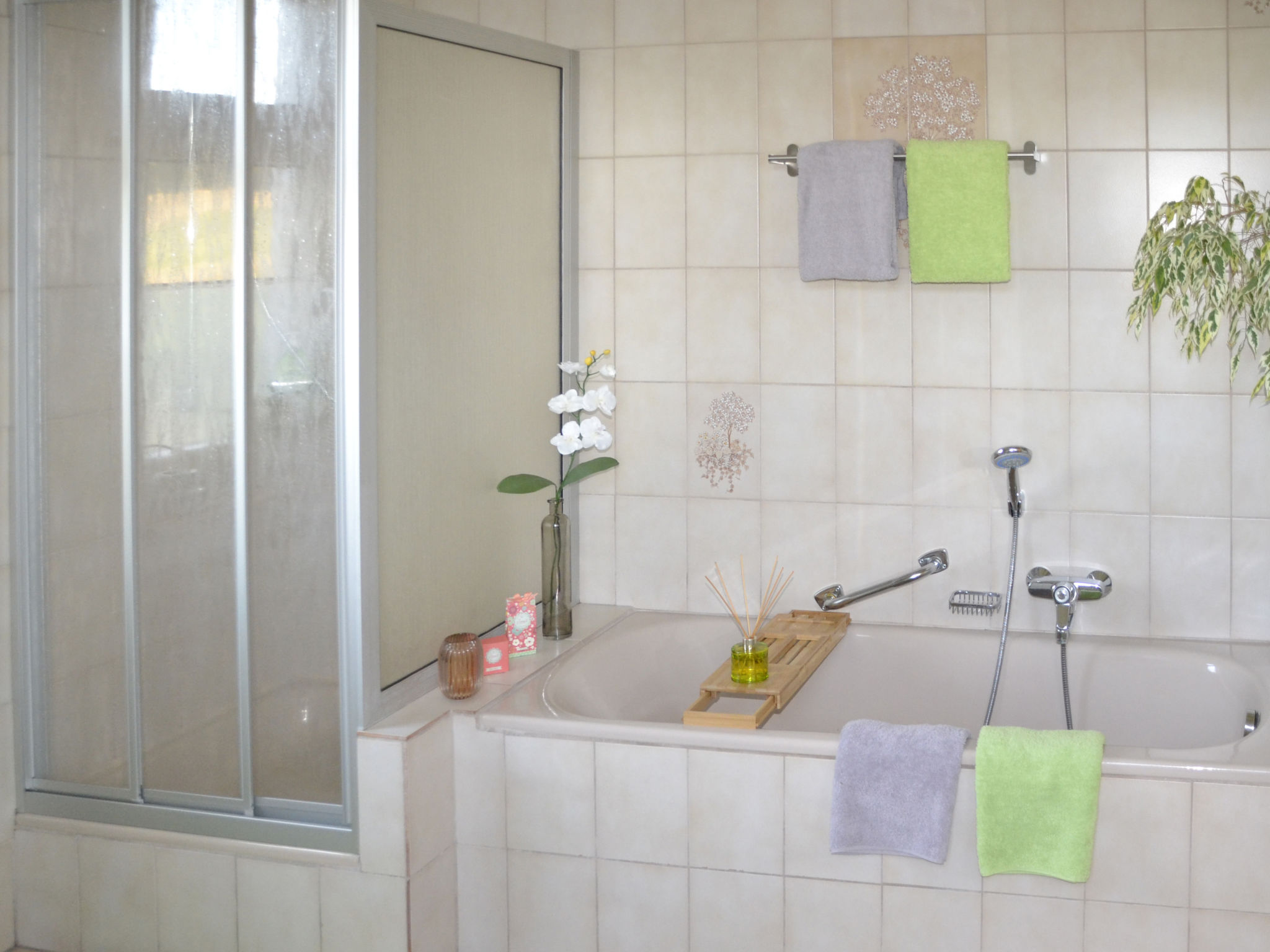 2-Zimmer-Wohnung 90 m2 im 1. Stock. Modern und gemütlich eingerichtet: Wohnzimmer mit Sat-TV (Flachbildschirm), Stereoanlage. 1 Doppelzimmer. Küche (Backofen, Geschirrspüler, 4 Glaskeramikherd Platten, Toaster, Wasserkocher, Mikrowelle, Tiefkühler, Grill, elektrische Kaffeemaschine) mit Esstisch. Bad/Dusche/WC, Doppelwaschbecken. Ölheizung. Terrasse. Terrassenmöbel, Liegestühle (2), Abstellkammer. Zur Verfügung: Haartrockner. Internet (Wireless LAN, gratis). Bitte beachten: Nichtraucher-Unterkunft. Eigener Eingang, Rauchmelder, Feuerlöscher.