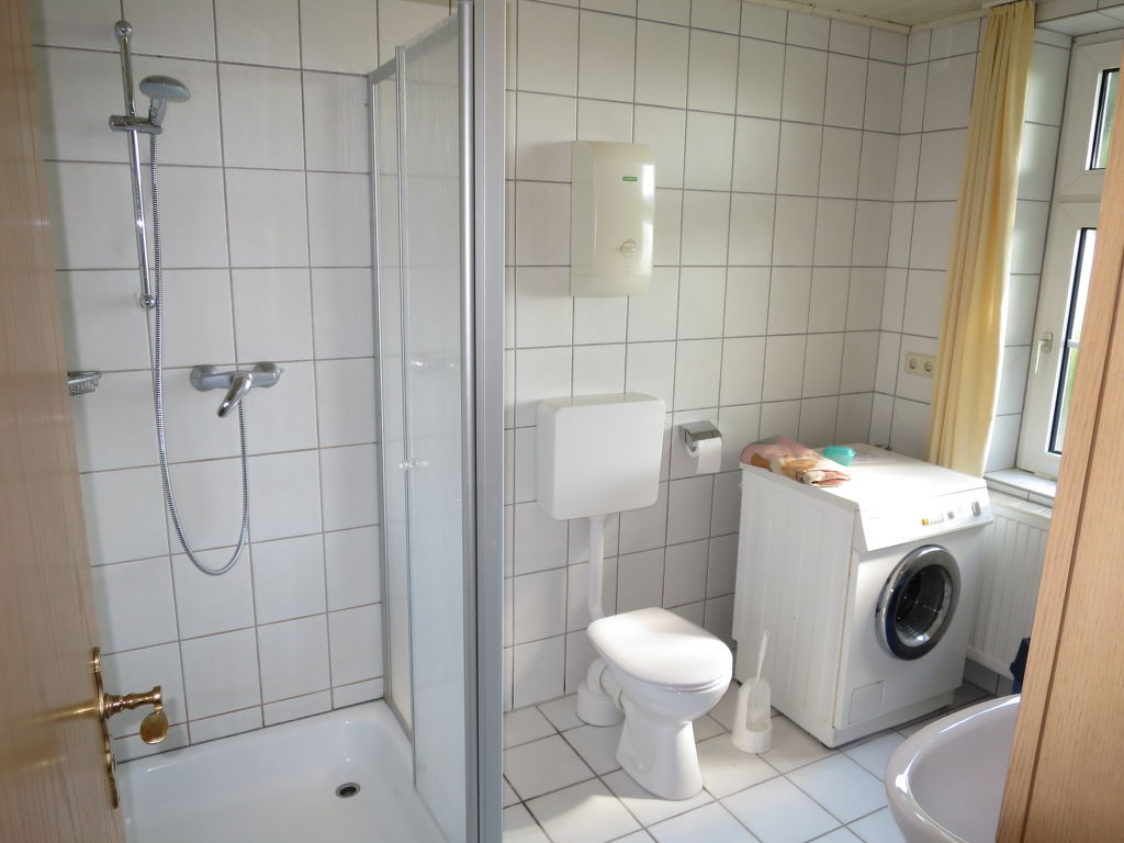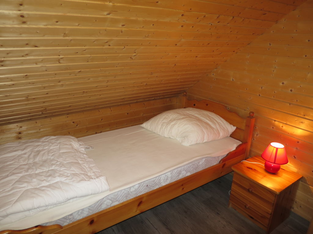 5-Zimmer-Doppelhaushälfte 85 m2 auf 2 Stockwerken, im Erdgeschoss. Gemütlich eingerichtet: Wohn-/Esszimmer mit Sat-TV (Flachbildschirm), DVD. Ausgang zur Terrasse. 1 Zimmer mit 1 Doppelbett (2 x 90 cm, Länge 200 cm). Kochnische (4 Glaskeramikherd Platten, Toaster, Wasserkocher, Tiefkühler, elektrische Kaffeemaschine, Kombinationsmikrowelle). Dusche/WC, Doppelwaschbecken. Obergeschoss: 2 abgeschrägte Zimmer, jedes Zimmer mit 2 Betten (90 cm, Länge 200 cm). 1 abgeschrägtes Zimmer, ohne Fenster mit 1 Bett (90 cm, Länge 200 cm). Dusche/WC. Terrasse. Terrassenmöbel, Liegestühle (2). Zur Verfügung: Waschmaschine. Internet (Wireless LAN, gratis). Bitte beachten: Nichtraucher-Unterkunft. Maximal 1 Haustier/Hund erlaubt.