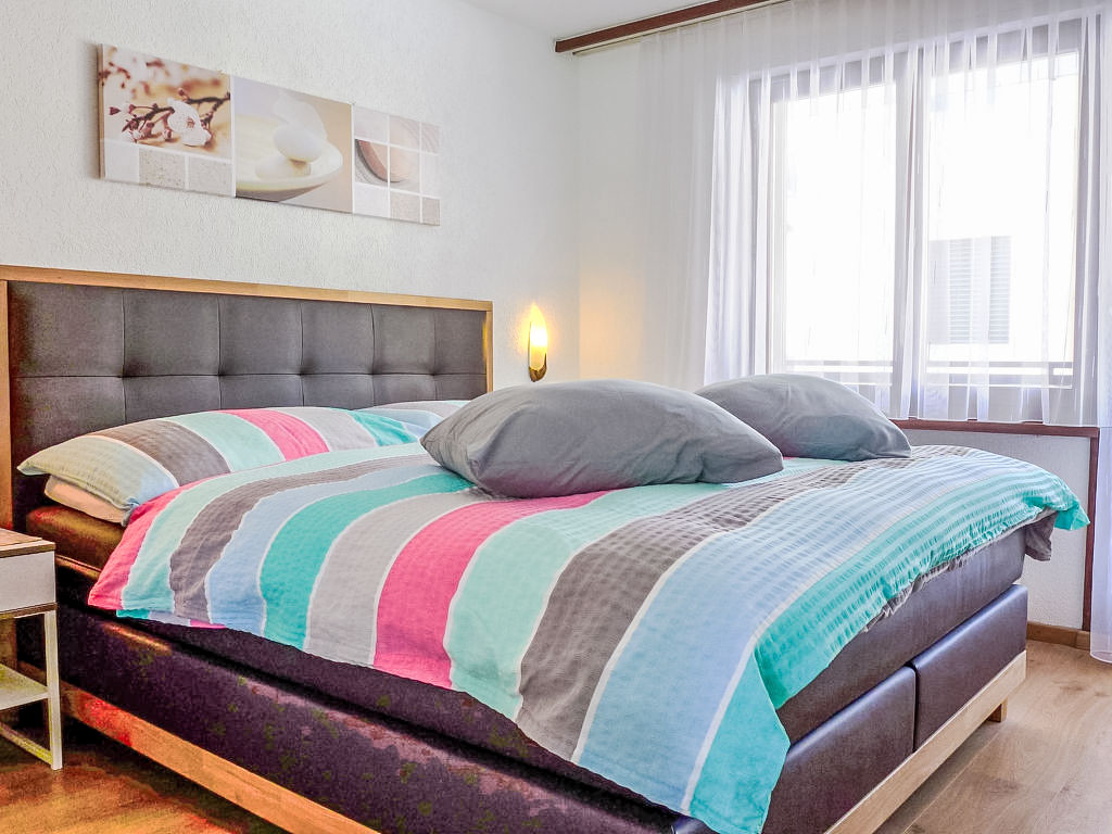 2-Zimmer-Wohnung 70 m2 im 2. Stock. Hell, renoviert im Jahre 2016, schön und gemütlich eingerichtet: Wohn-/Schlafzimmer mit 1 Doppelwandklappbett (2 x 90 cm, Länge 200 cm), Esstisch, TV und Radio. Ausgang zum Balkon. 1 Doppelzimmer mit 1 Doppelbett (180 cm, Länge 200 cm). Ausgang zum Balkon. Küche (Backofen, Geschirrspüler, 4 Glaskeramikherd Platten, Toaster, Wasserkocher, Tiefkühler, elektrische Kaffeemaschine, Racletteofen, Kombinationsmikrowelle, Fondue Set (Käse)). Dusche/WC. Heizung. Balkon 10 m2. Balkonmöbel. Schöne Sicht auf das Matterhorn. Zur Verfügung: Haartrockner. Internet (Wireless LAN, gratis). Bitte beachten: Nichtraucher-Unterkunft.