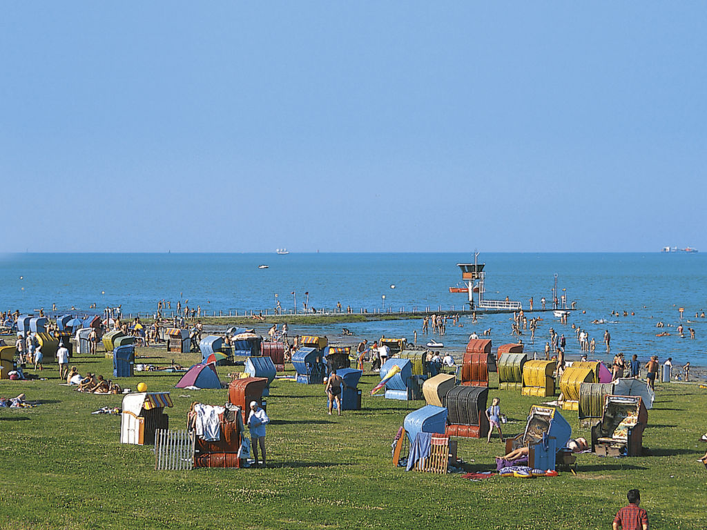 Appartementhaus "Windrose". Im Ort, 300 m vom Zentrum, 2 km vom Meer, 2 km vom Strand, an einer Strasse. Zur Mitbenutzung: Grundstück 3'000 m2 (eingezäunt), Garten, Liegewiese, Hallenbad beheizt (5 x 13 m, 160 cm tief, saisonale Verfügbarkeit: 15.Mar.-15.Nov.). Tischtennis, Terrasse, Gartenmöbel, Grill, Kinderspielplatz. Im Hause: Empfang, Aufenthaltsraum, Sauna (extra). Solarium (extra). Zentralheizung, Waschmaschine (extra), Wäschetrockner (zur Mitbenutzung, extra). Parkplatz beim Haus. Einkaufsgeschäft 300 m, Lebensmittelgeschäft 500 m, Restaurant, Café 300 m, Bushaltestelle 600 m, Bahnstation "Nordenham" 20 km, Sandstrand 2 km.