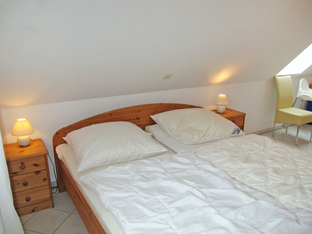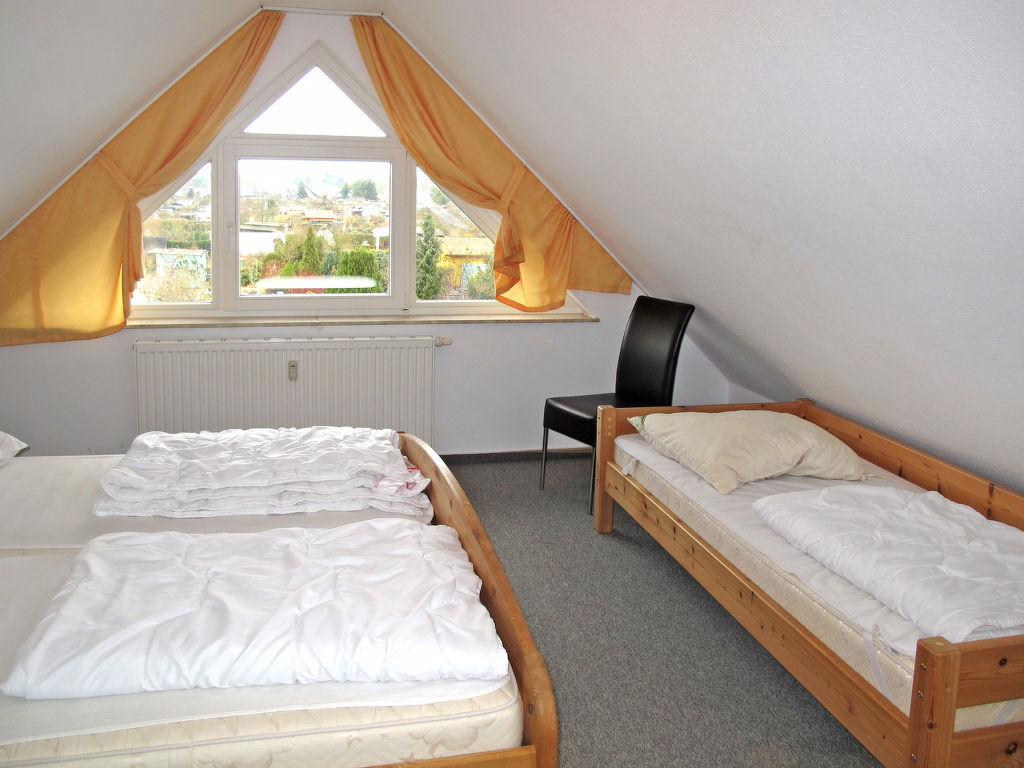 "Gartenstraße", 3-Zimmer-Wohnung 70 m2 auf 2 Stockwerken, im Obergeschoss. Zweckmässig eingerichtet: Wohn-/Esszimmer mit Sat-TV und Stereoanlage. Ausgang zum Balkon. 1 abgeschrägtes Zimmer mit 1 Bett und 1 Doppelbett. Kochnische (4 Kochplatten, Backofen, Toaster, Wasserkocher, Mikrowelle, elektrische Kaffeemaschine). Dusche/WC. Dachgeschoss: 1 abgeschrägtes Zimmer mit 1 Bett und 1 Doppelbett. Ölheizung. Balkon. Balkonmöbel. Zur Verfügung: Kinderhochstuhl, Babybett. Parkplatz (1 Auto). Bitte beachten: Nichtraucher-Unterkunft. 1 Haustier/Hund erlaubt. Rauchmelder.