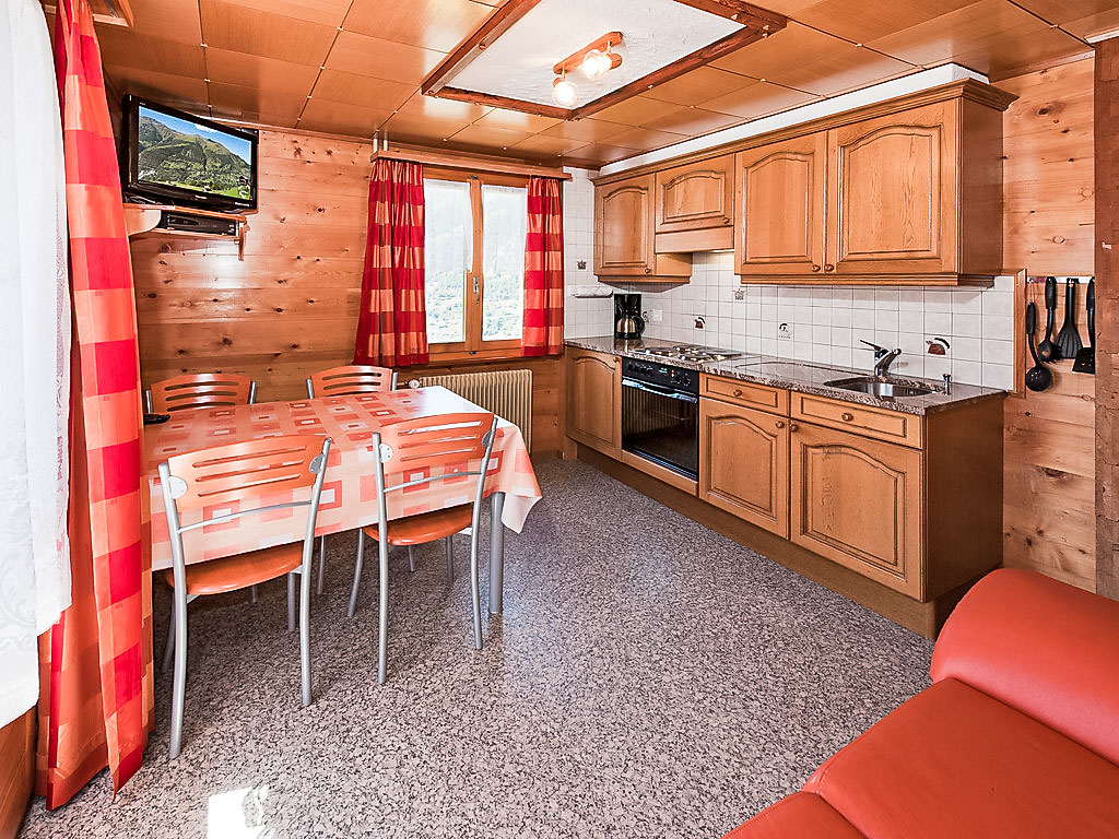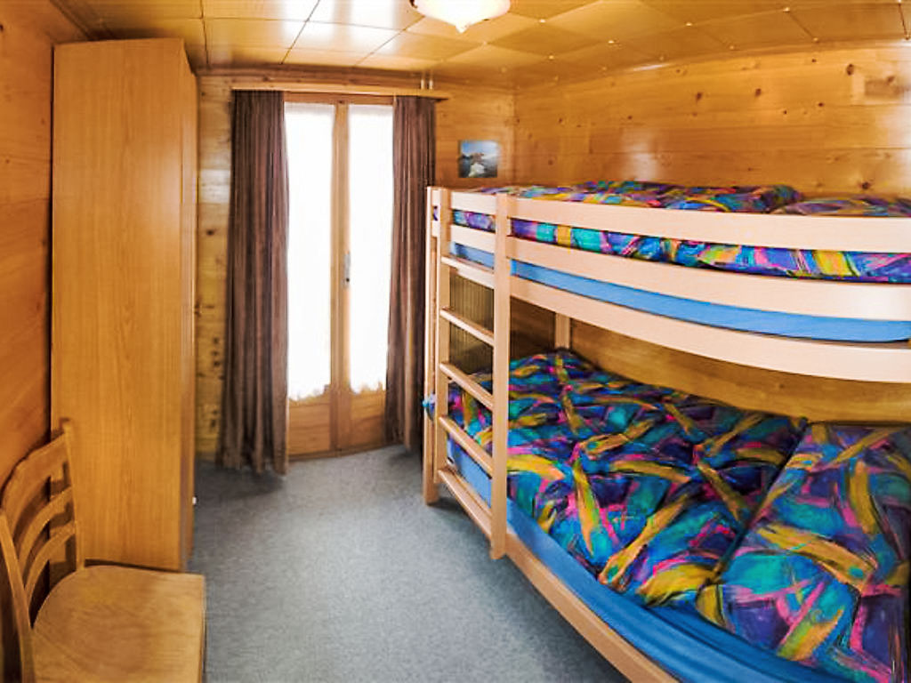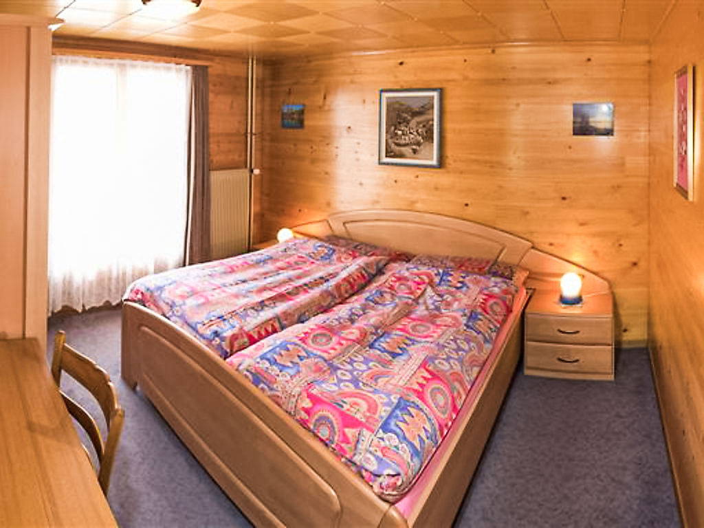 2-Zimmer-Wohnung 50 m2 im 1. Stock. Gemütlich eingerichtet: 1 Doppelzimmer mit 1 Doppelbett. Ausgang zum Balkon, Richtung Süden. 1 Zimmer mit 1 x 2 Etagenbetten. Ausgang zum Balkon, Richtung Süden. Wohnküche (4 Kochplatten, Backofen, elektrische Kaffeemaschine, Fondue Set (Käse)) mit Sat-TV (Flachbildschirm). Bad/WC. Ölheizung. Grosser Balkon. Terrassenmöbel, Liegestühle (2). Herrliche Panoramasicht auf die Berge, die Landschaft und Matterhorn. Zur Verfügung: Internet (Wireless LAN, gratis). Parkplatz Nr. 3 in 20 m. Bitte beachten: Nichtraucher-Unterkunft.