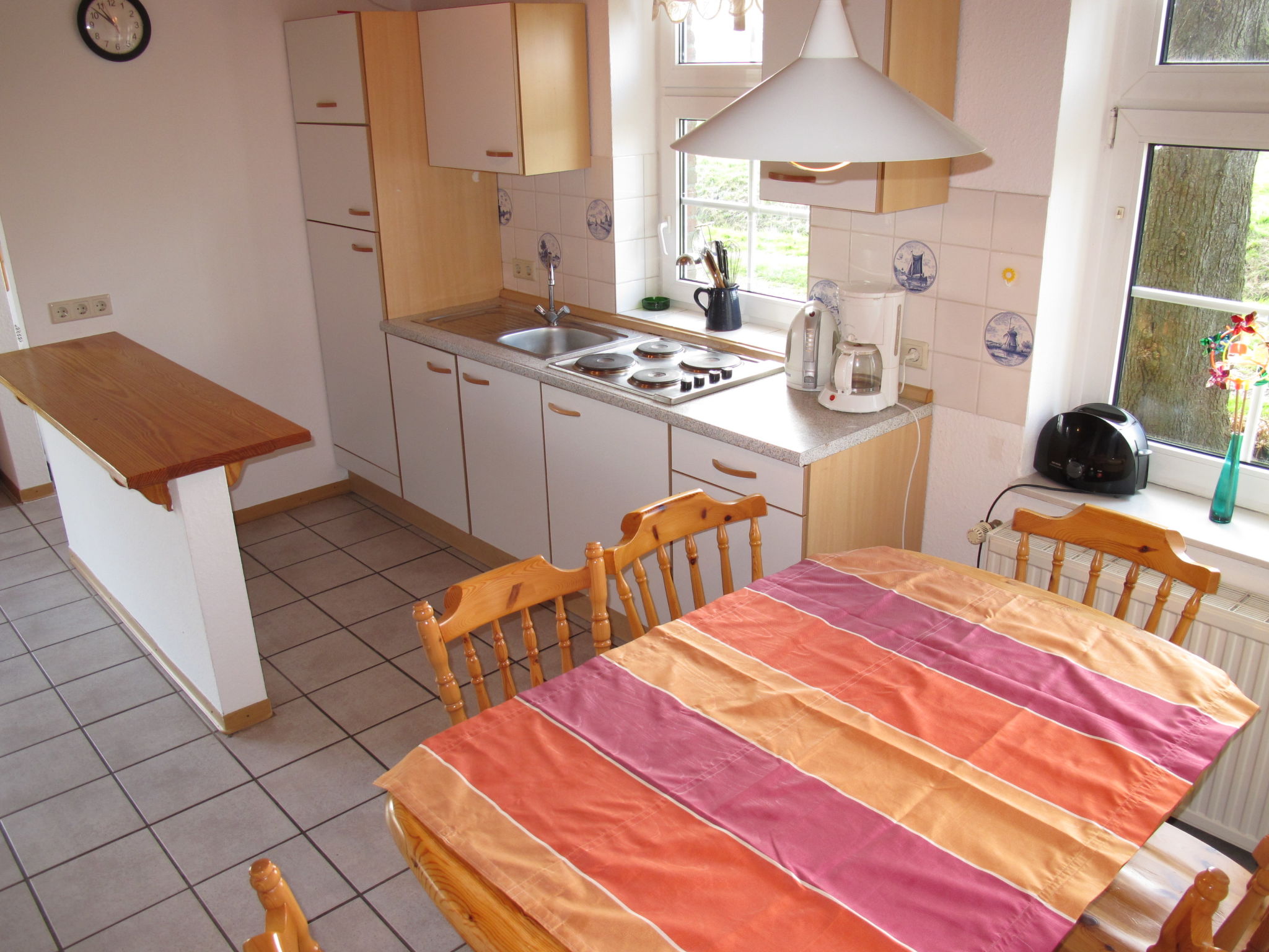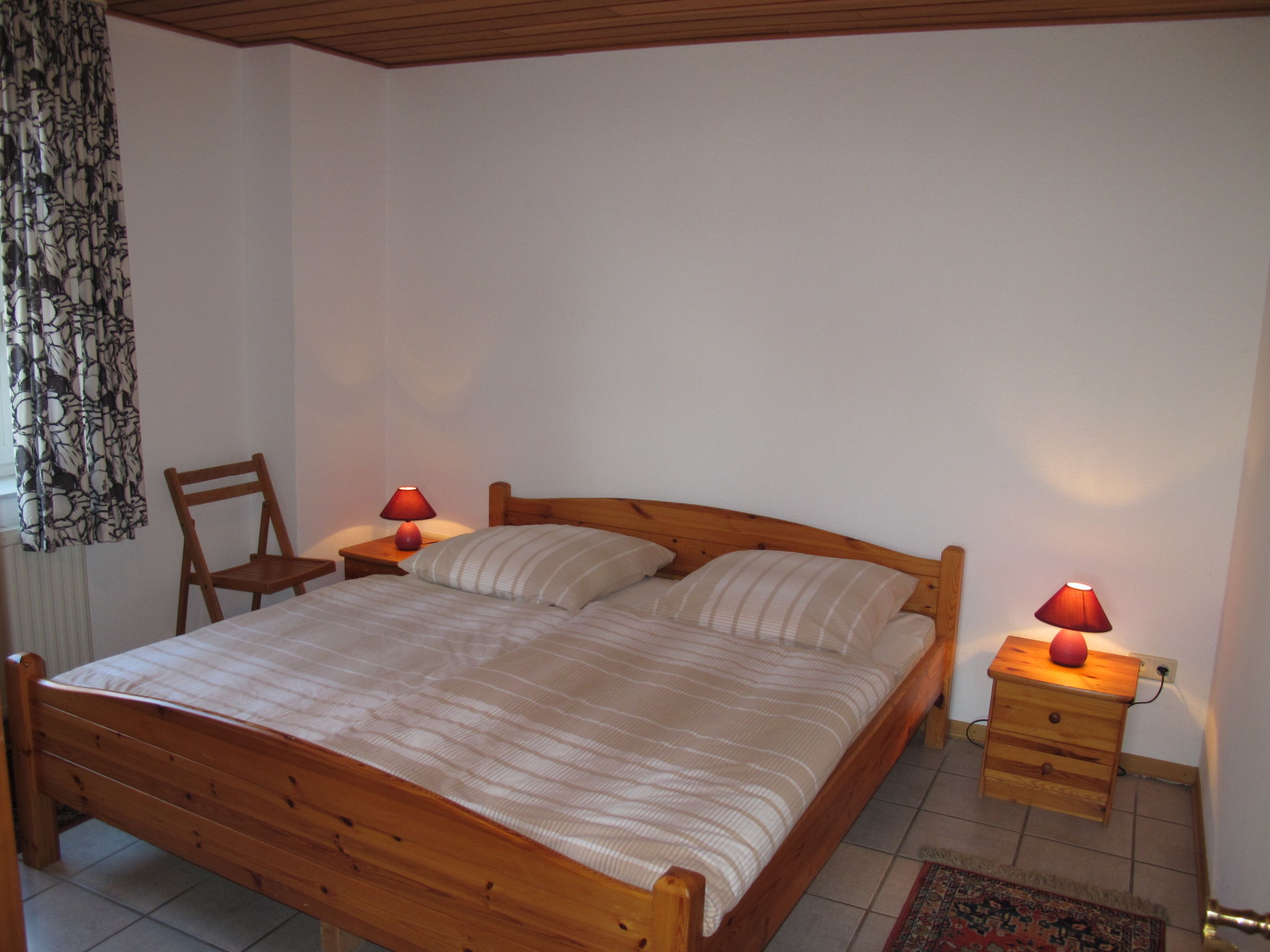 10-Zimmer-Haus 170 m2 auf 2 Stockwerken, im Erdgeschoss. Gemütlich eingerichtet: Wohn-/Esszimmer mit Sat-TV (Flachbildschirm), DVD. Ausgang zur Terrasse. Wohn-/Esszimmer mit Sat-TV (Flachbildschirm), DVD. Ausgang zur Terrasse. 2 Zimmer, jedes Zimmer mit 1 Doppelbett (2 x 90 cm, Länge 200 cm). Kochnische (4 Glaskeramikherd Platten, Toaster, Wasserkocher, Tiefkühler, elektrische Kaffeemaschine, Kombinationsmikrowelle). 2 Duschen/WC, Doppelwaschbecken. Obergeschoss: 4 abgeschrägte Zimmer, jedes Zimmer mit 2 Betten (90 cm, Länge 200 cm). 2 abgeschrägte Zimmer, ohne Fenster, jedes Zimmer mit 1 Bett (90 cm, Länge 200 cm). 2 Duschen/WC. 2 Terrassen. Terrassenmöbel, Liegestühle (4). Zur Verfügung: Waschmaschine. Internet (Wireless LAN, gratis). Bitte beachten: Nichtraucher-Haus. Maximal 1 Haustier/Hund erlaubt. Zweite Kochnische (4 Kochplatten, Toaster, Wasserkocher, Tiefkühler, elektrische Kaffeemaschine, Kombinationsmikrowelle). BITTE BEACHTEN: Das Ferienhaus ist die Kombination der beiden separaten Doppelhaushälften DE2959.622.1 und DE2959.622.4. Die Waschmaschine befindet sich in der linken Doppelhaushälfte.