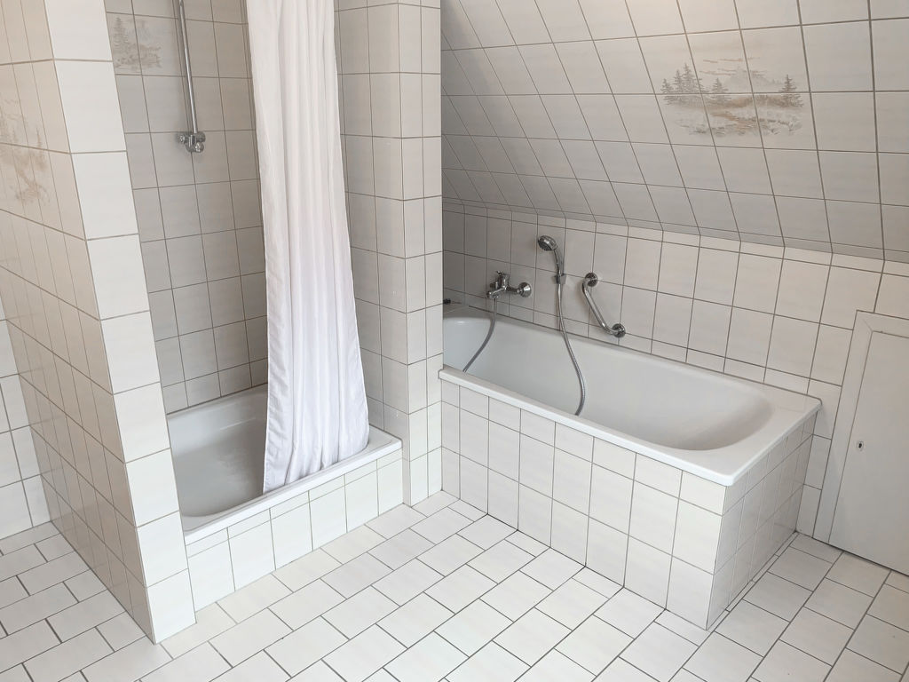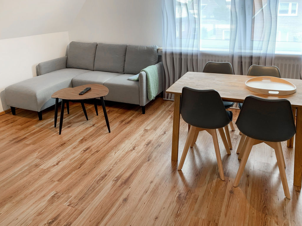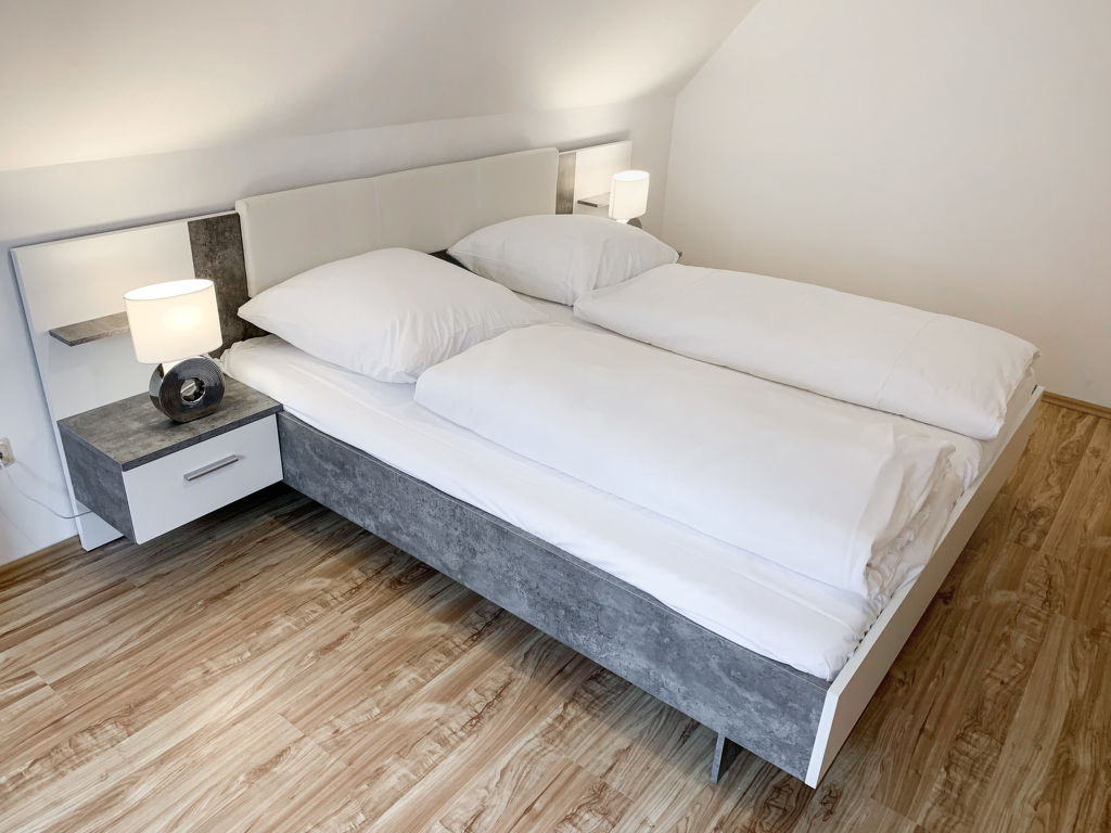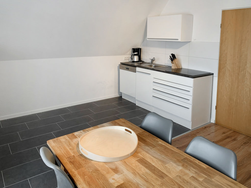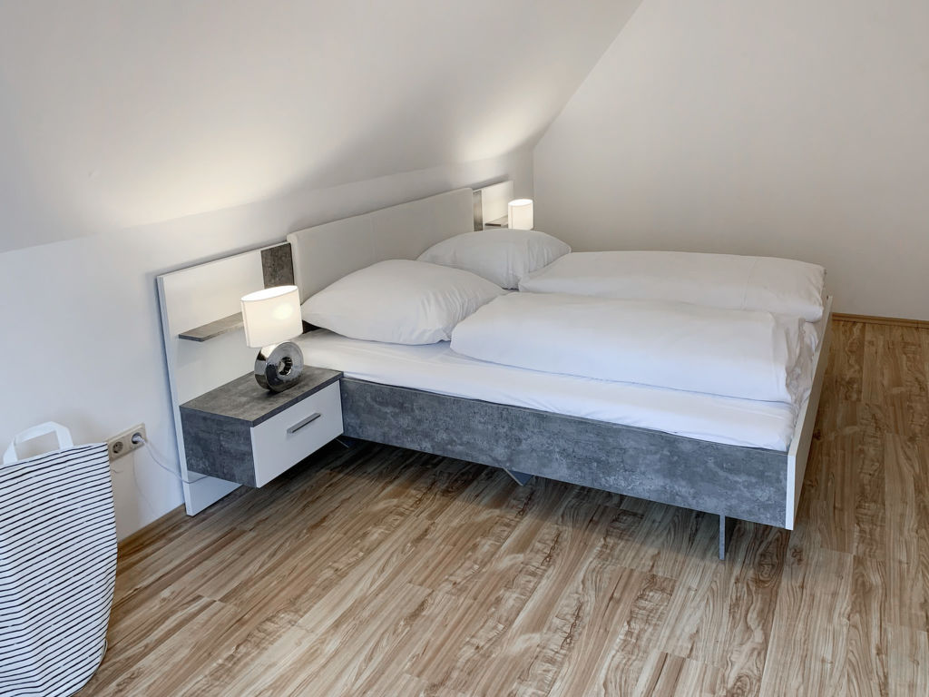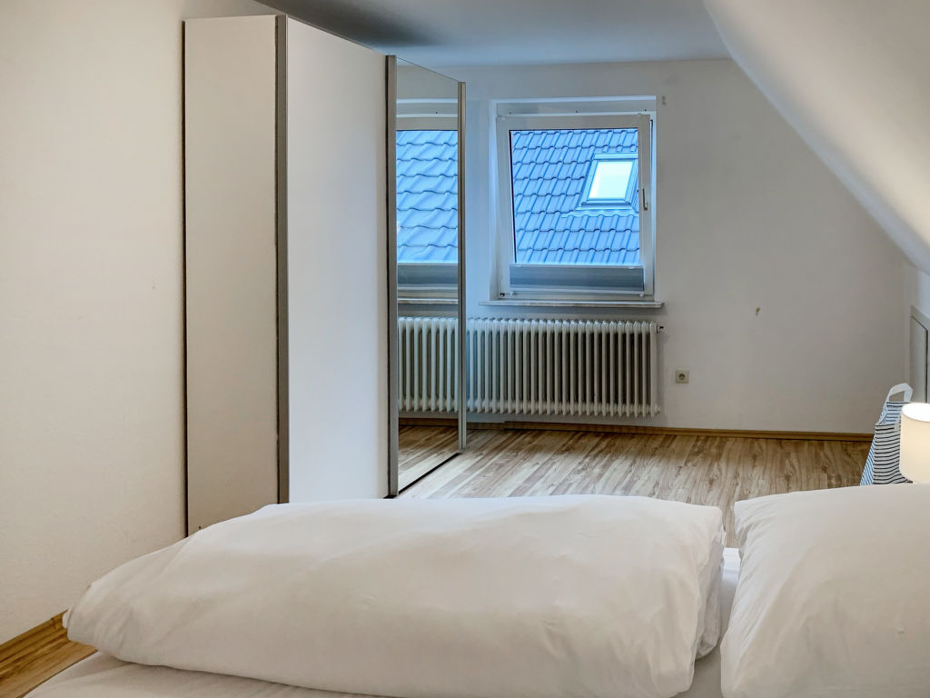 2-Zimmer-Wohnung 50 m2, im Obergeschoss. Abgeschrägt, schön und geschmackvoll eingerichtet: Wohn-/Esszimmer mit Sat-TV (Flachbildschirm). 1 Zimmer mit 1 Doppelbett (2 x 90 cm, Länge 200 cm). Kochnische (Geschirrspüler, 4 Glaskeramikherd Platten, Toaster, Wasserkocher, elektrische Kaffeemaschine, Kombinationsmikrowelle). Bad/Dusche, sep. WC. Zur Verfügung: Kinderhochstuhl (extra). Internet (Wireless LAN, gratis). Bitte beachten: Nichtraucher-Unterkunft.