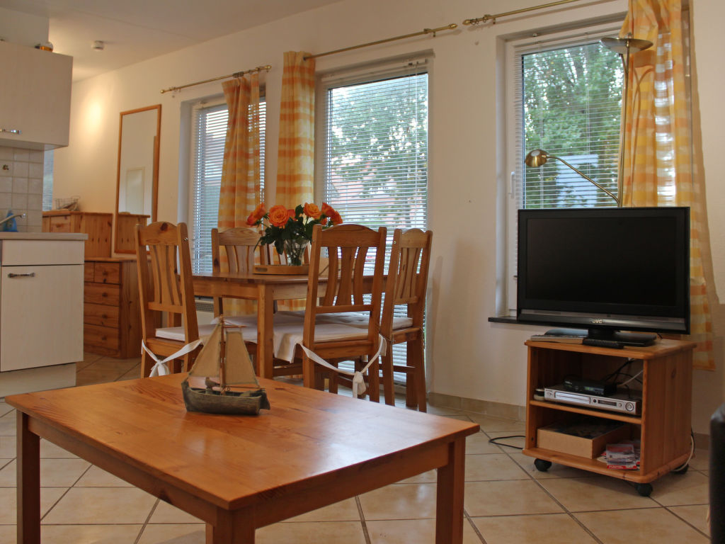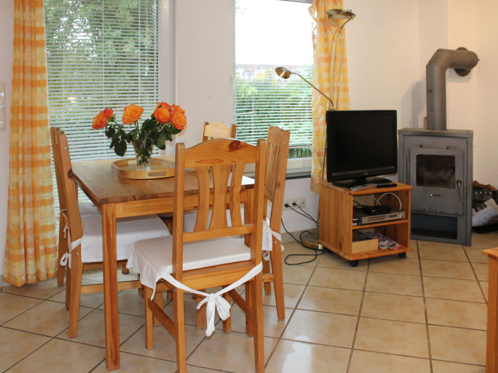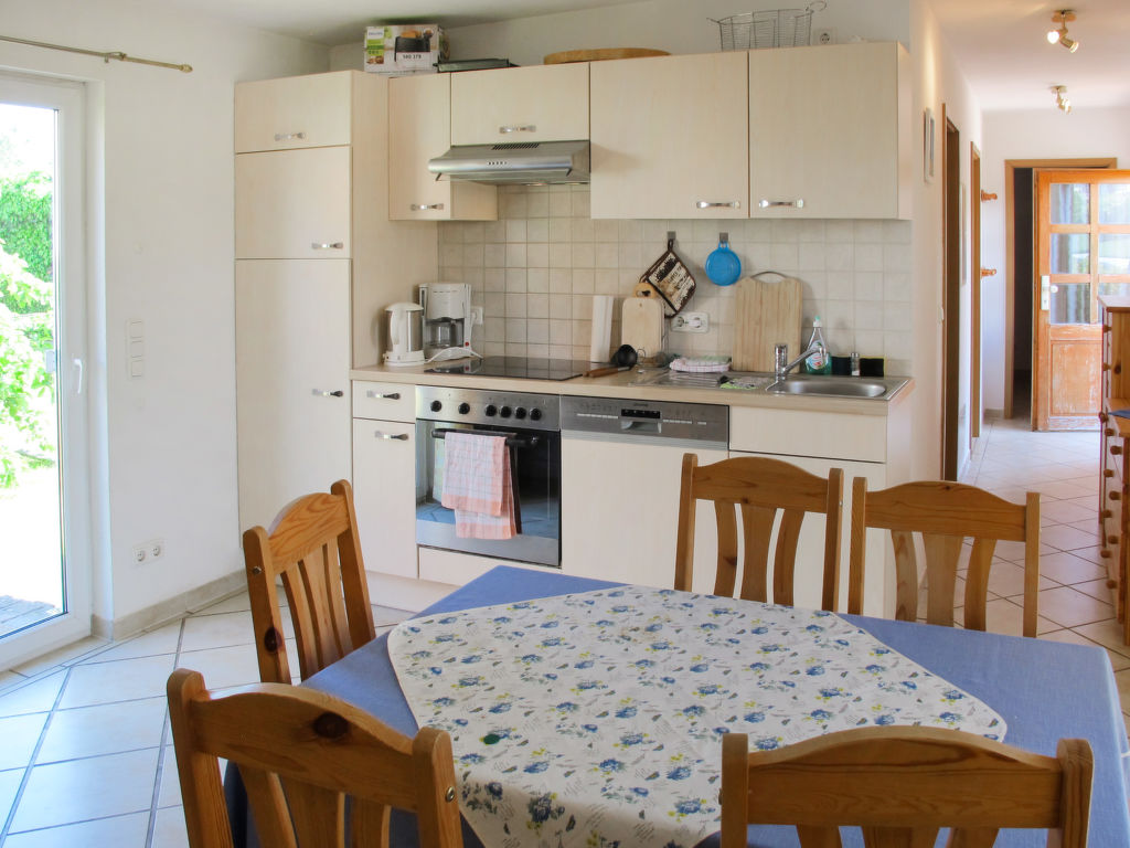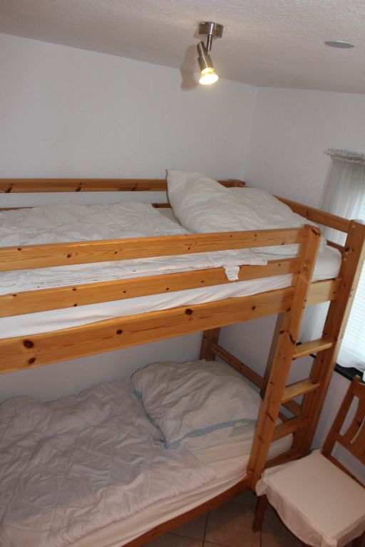 3-Zimmer-Bungalow 45 m2, im Erdgeschoss. Gemütlich eingerichtet: Wohn-/Esszimmer 12 m2 mit Schwedenofen und Sat-TV (Flachbildschirm), CD. Ausgang zur Terrasse. 1 Zimmer mit 1 Doppelbett (180 cm, Länge 200 cm), Sat-TV (Flachbildschirm). 1 kleines Kinderzimmer mit 1 x 2 Etagenbetten (90 cm, Länge 200 cm). Kochnische (Backofen, Geschirrspüler, 4 Glaskeramikherd Platten, Wasserkocher, elektrische Kaffeemaschine). Dusche/WC. E-Heizung. 2 Terrassen, Südlage und Nordlage. Terrassenmöbel, Gartengrill (mobil). Zur Verfügung: Sauna, Holz (extra). Bitte beachten: Nichtraucher-Haus. Maximal 1 Haustier/Hund erlaubt. Rauchmelder, Feuerlöscher. Die Sauna mit Ruheraum und die beiden buchbaren Zusatzbetten (Tandembett, 2 x 90 cm, Länge 200 cm) befinden sich in einem Nebengebäude (separater Eingang).