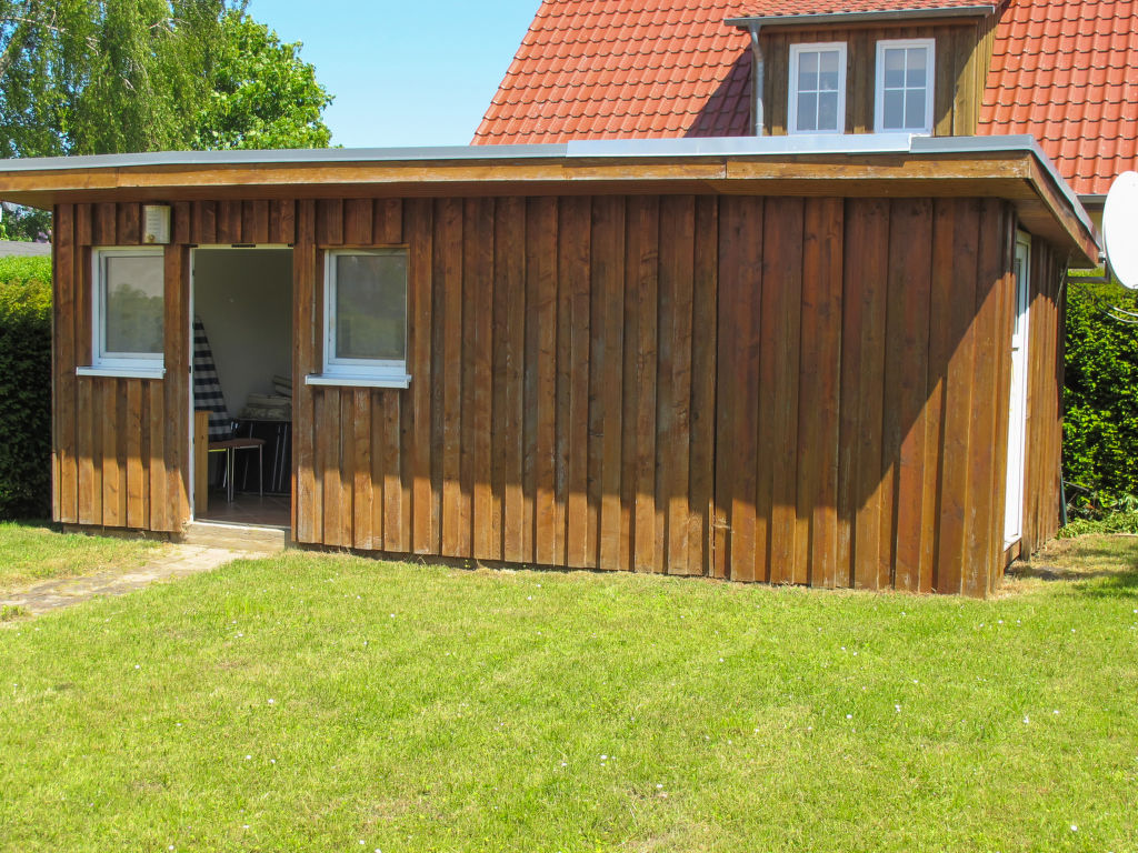 Bungalow "Villa Meike (Insel Poel)". Am Ortsrand von Kaltenhof, 1.5 km vom Zentrum von Kirchdorf, ruhige Lage, 350 m vom Meer, 350 m vom Strand. Zur Alleinbenutzung: Grundstück 420 m2 (eingezäunt) mit Rasen, Parkplatz (für 2 Autos) beim Haus. Einkaufsgeschäft 1.5 km, Lebensmittelgeschäft 1.5 km, Supermarkt 1.5 km, Restaurant 1.5 km, Bäckerei 1.5 km, Bushaltestelle 800 m, Sandstrand 350 m, Freibad 18 km, Hallenbad 18 km, Badesee 18 km. Minigolf 6.5 km, Reitstall 7.5 km, Wanderwege ab Haus 50 m. Bitte beachten: Fahrzeug empfohlen. Angeln (mit Bewilligung) (extra). Bungalow in Holzbauweise. Zum breiten feinkörnigen Ostsee-Sandstrand gelangt man über einen direkt vor dem Haus führenden Weg.