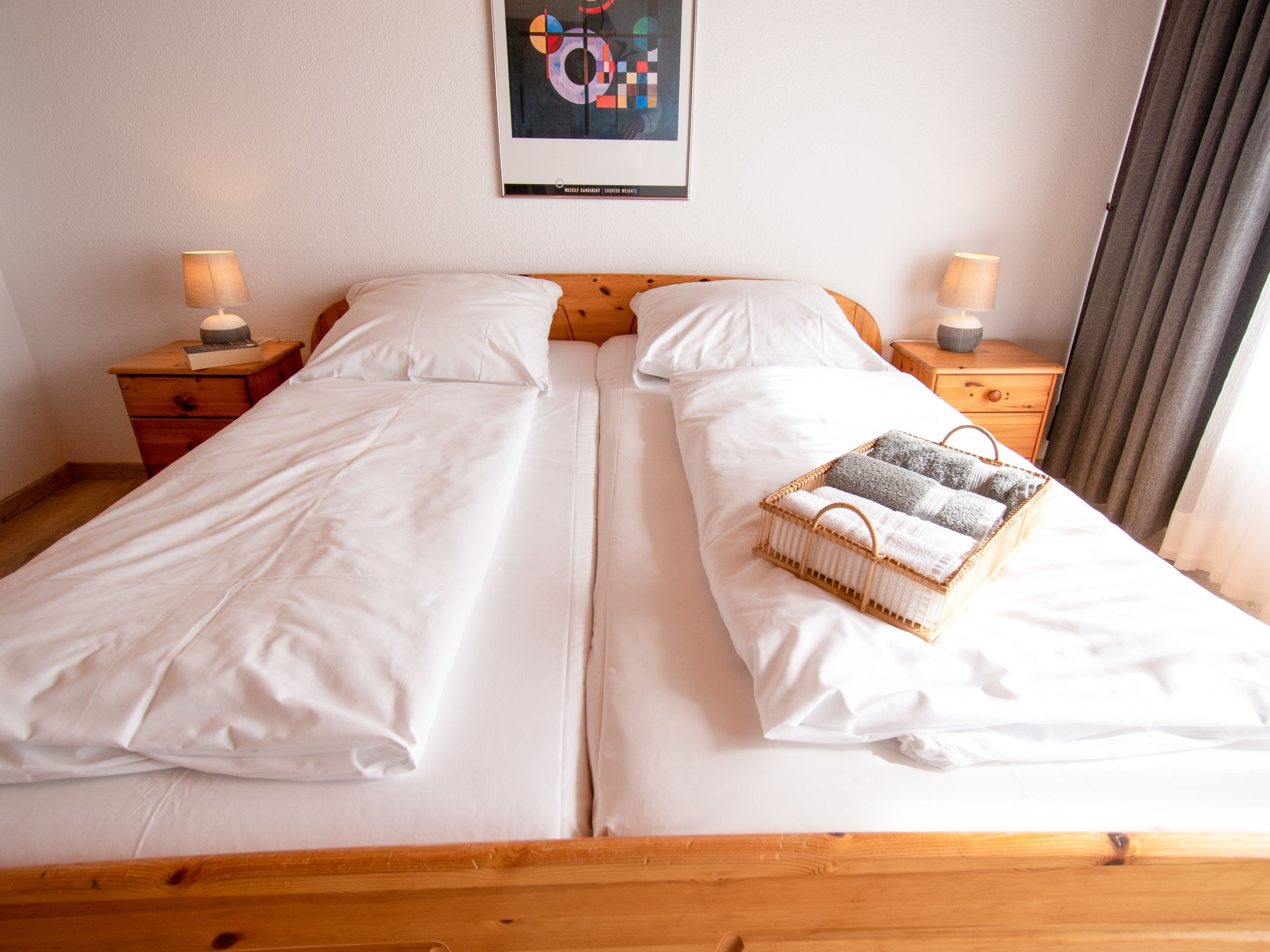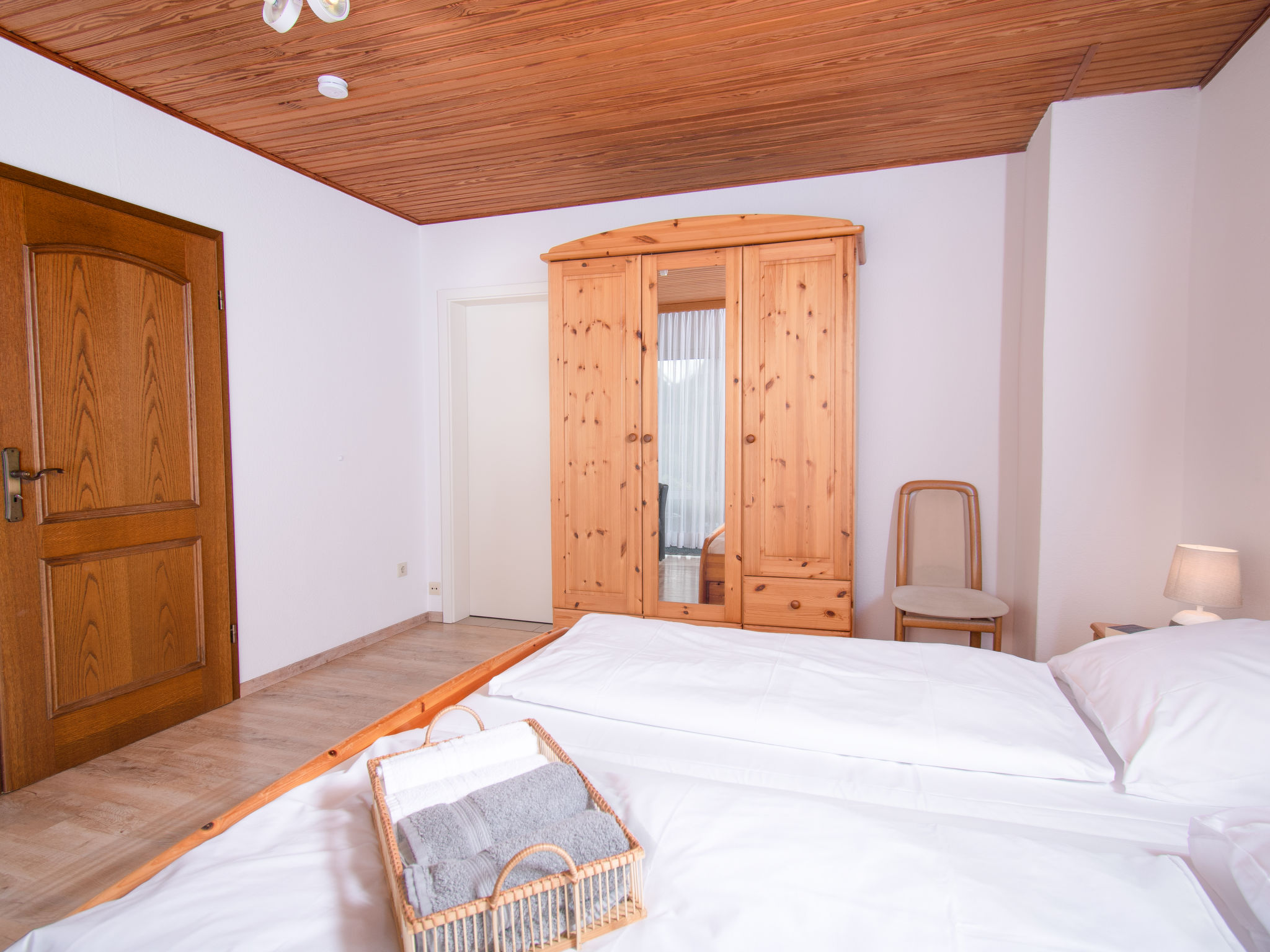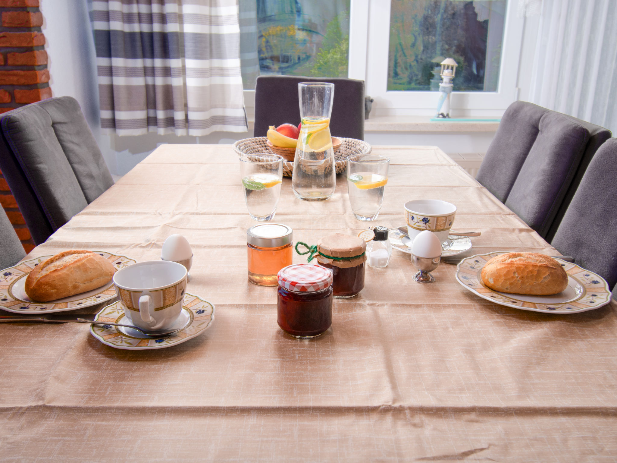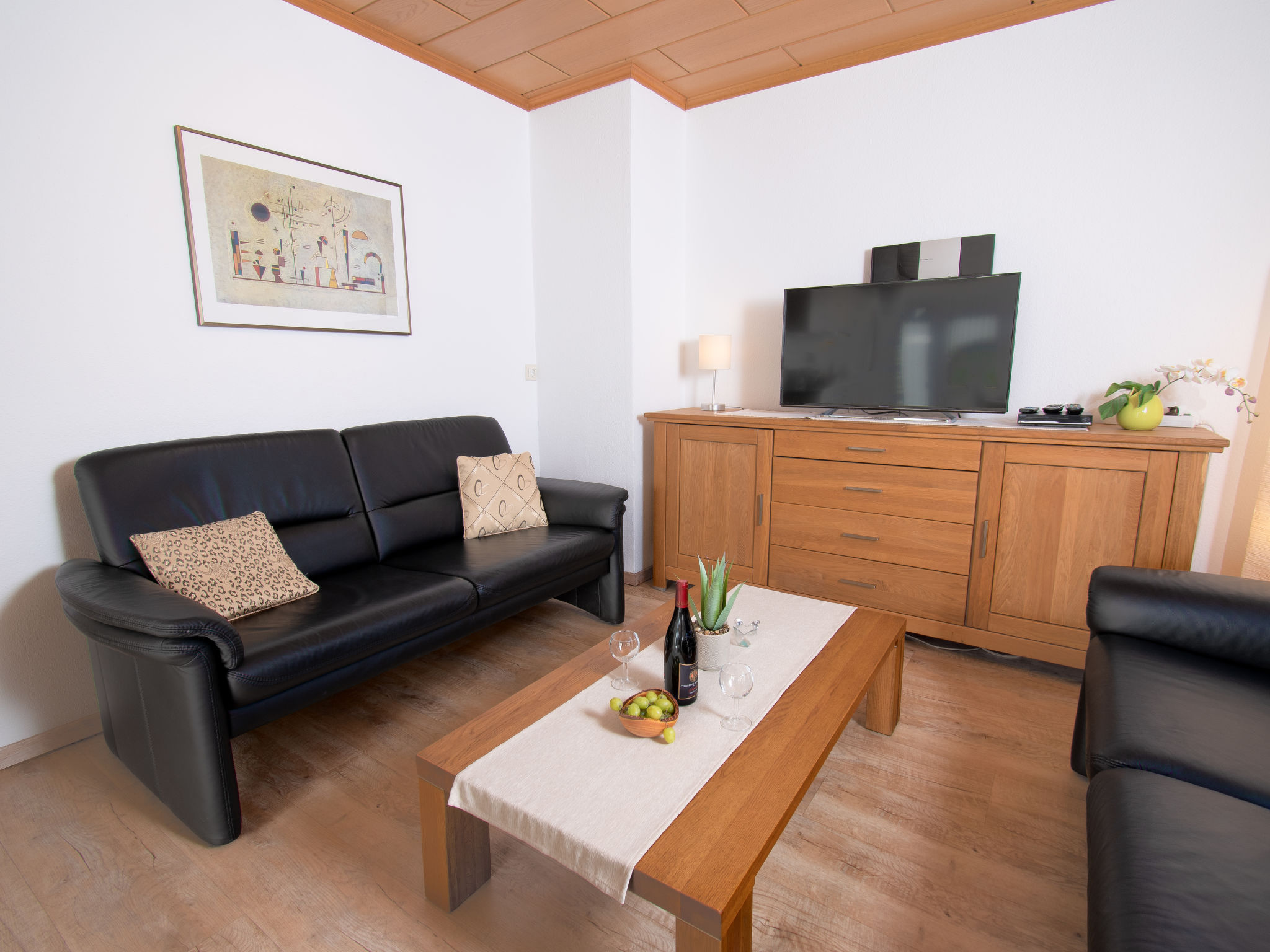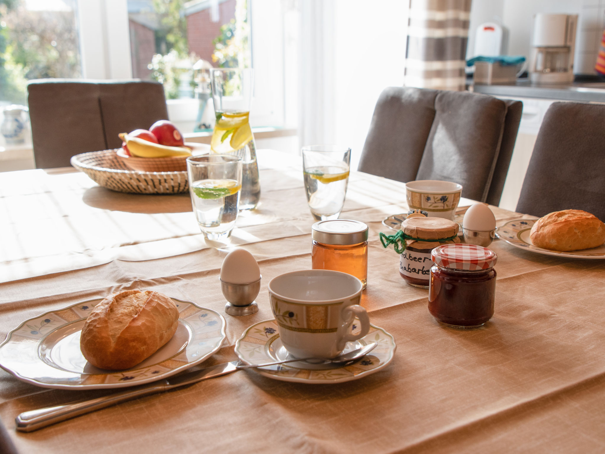 "Nordwind", 3-Zimmer-Wohnung 64 m2, im Erdgeschoss. Gemütlich eingerichtet: Wohn-/Esszimmer 24 m2 mit Kabel-TV (Flachbildschirm), Stereoanlage. Ausgang zur Terrasse. 1 Zimmer 16 m2 mit 1 Doppelbett (2 x 90 cm, Länge 200 cm). 1 Zimmer 8 m2 mit 1 Doppelbett (2 x 90 cm, Länge 200 cm). Offene Küche (4 Kochplatten, Backofen, Geschirrspüler, Toaster, Wasserkocher, Mikrowelle, elektrische Kaffeemaschine) mit Esstisch. Dusche, sep. WC. Terrasse 20 m2, Garten 40 m2. Terrassenmöbel. Zur Verfügung: Kinderhochstuhl (extra). Internet (Wireless LAN, gratis). Bitte beachten: Kühlschrank ohne Gefrierfach, Nichtraucher-Unterkunft.