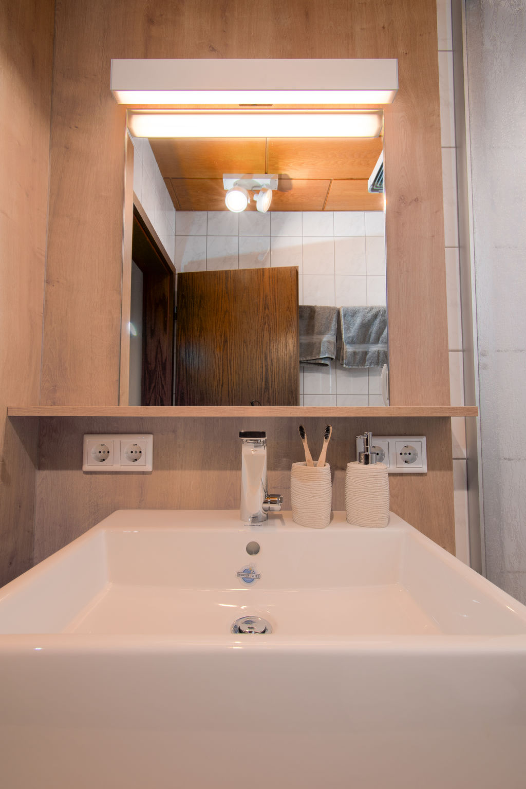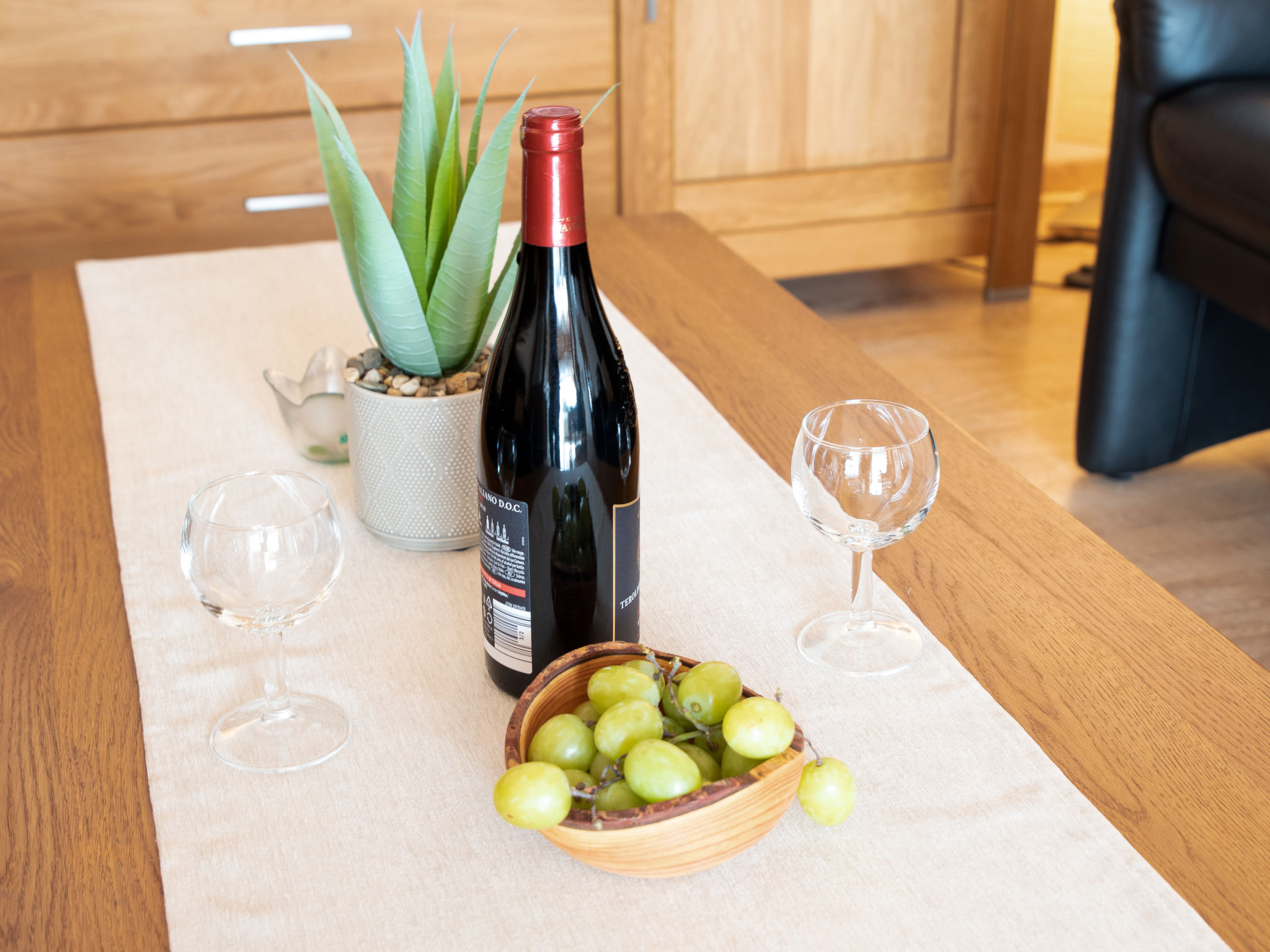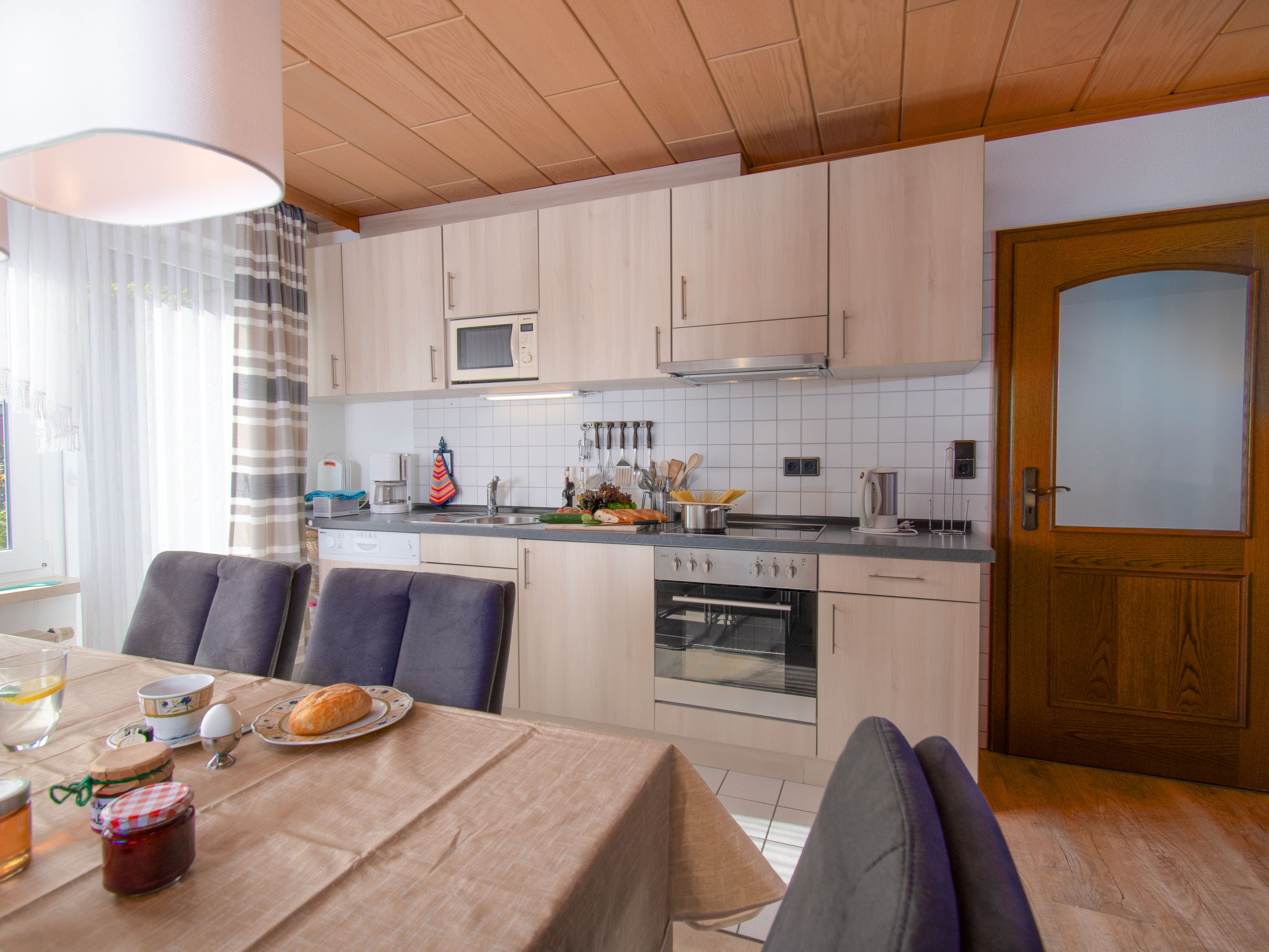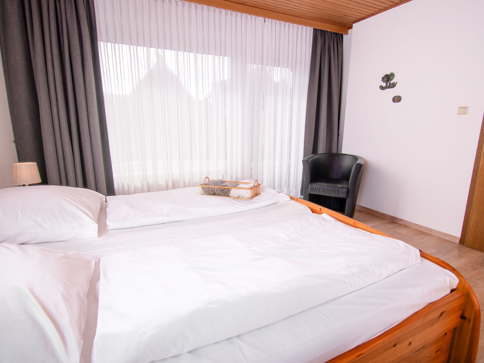 "Nordwind", 3-Zimmer-Wohnung 64 m2, im Erdgeschoss. Gemütlich eingerichtet: Wohn-/Esszimmer 24 m2 mit Kabel-TV (Flachbildschirm), Stereoanlage. Ausgang zur Terrasse. 1 Zimmer 16 m2 mit 1 Doppelbett (2 x 90 cm, Länge 200 cm). 1 Zimmer 8 m2 mit 1 Doppelbett (2 x 90 cm, Länge 200 cm). Offene Küche (4 Kochplatten, Backofen, Geschirrspüler, Toaster, Wasserkocher, Mikrowelle, elektrische Kaffeemaschine) mit Esstisch. Dusche, sep. WC. Terrasse 20 m2, Garten 40 m2. Terrassenmöbel. Zur Verfügung: Kinderhochstuhl (extra). Internet (Wireless LAN, gratis). Bitte beachten: Kühlschrank ohne Gefrierfach, Nichtraucher-Unterkunft.