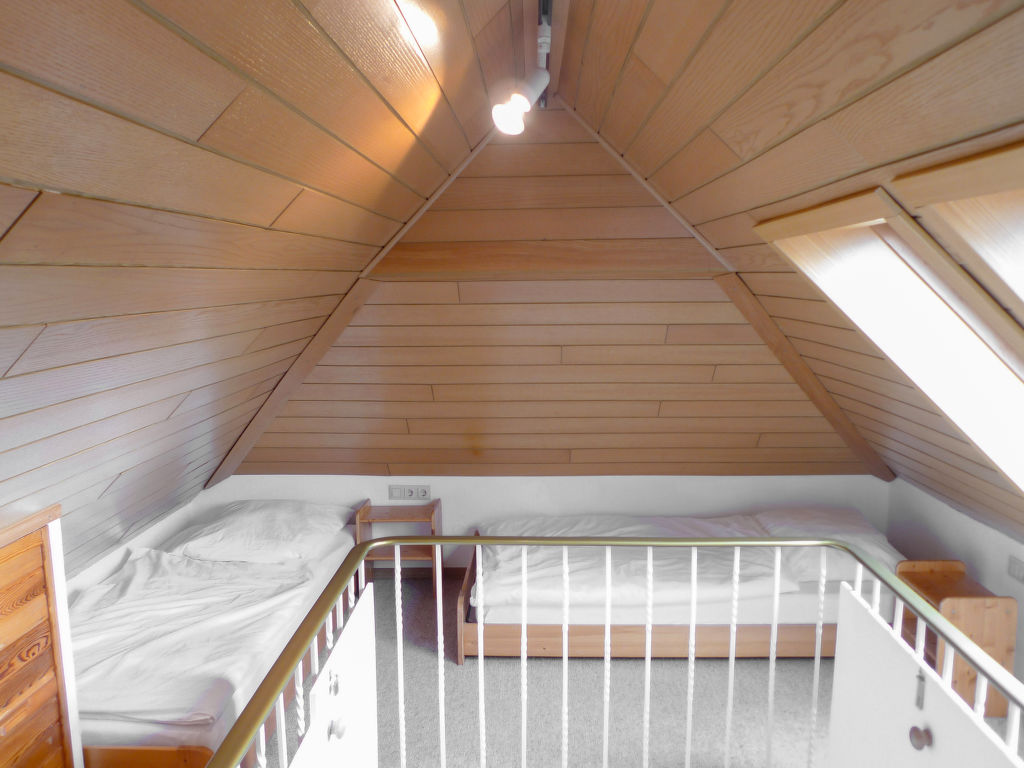 "Pulch", 4-Zimmer-Wohnung 55 m2 auf 2 Stockwerken, im Obergeschoss. Wohn-/Esszimmer 30 m2 mit Kabel-TV (Flachbildschirm), Radio. Ausgang zum Balkon. 2 Zimmer 7 m2, jedes Zimmer mit 1 Doppelbett (2 x 90 cm, Länge 190 cm). Kleine Küche (4 Kochplatten, Toaster, Wasserkocher, Mikrowelle, elektrische Kaffeemaschine). Dusche/WC. Dachgeschoss: 1 abgeschrägtes Zimmer 5 m2 mit 2 Betten. Bad/WC. Balkon 9 m2. Balkonmöbel. Zur Verfügung: Waschmaschine, Bügeleisen, Kinderhochstuhl. Bitte beachten: Nichtraucher-Unterkunft.
