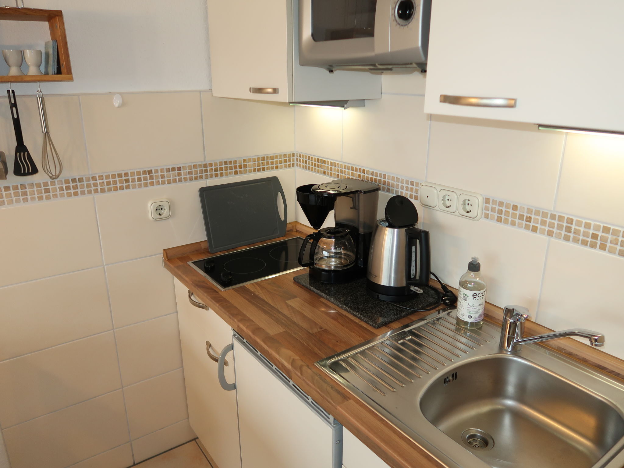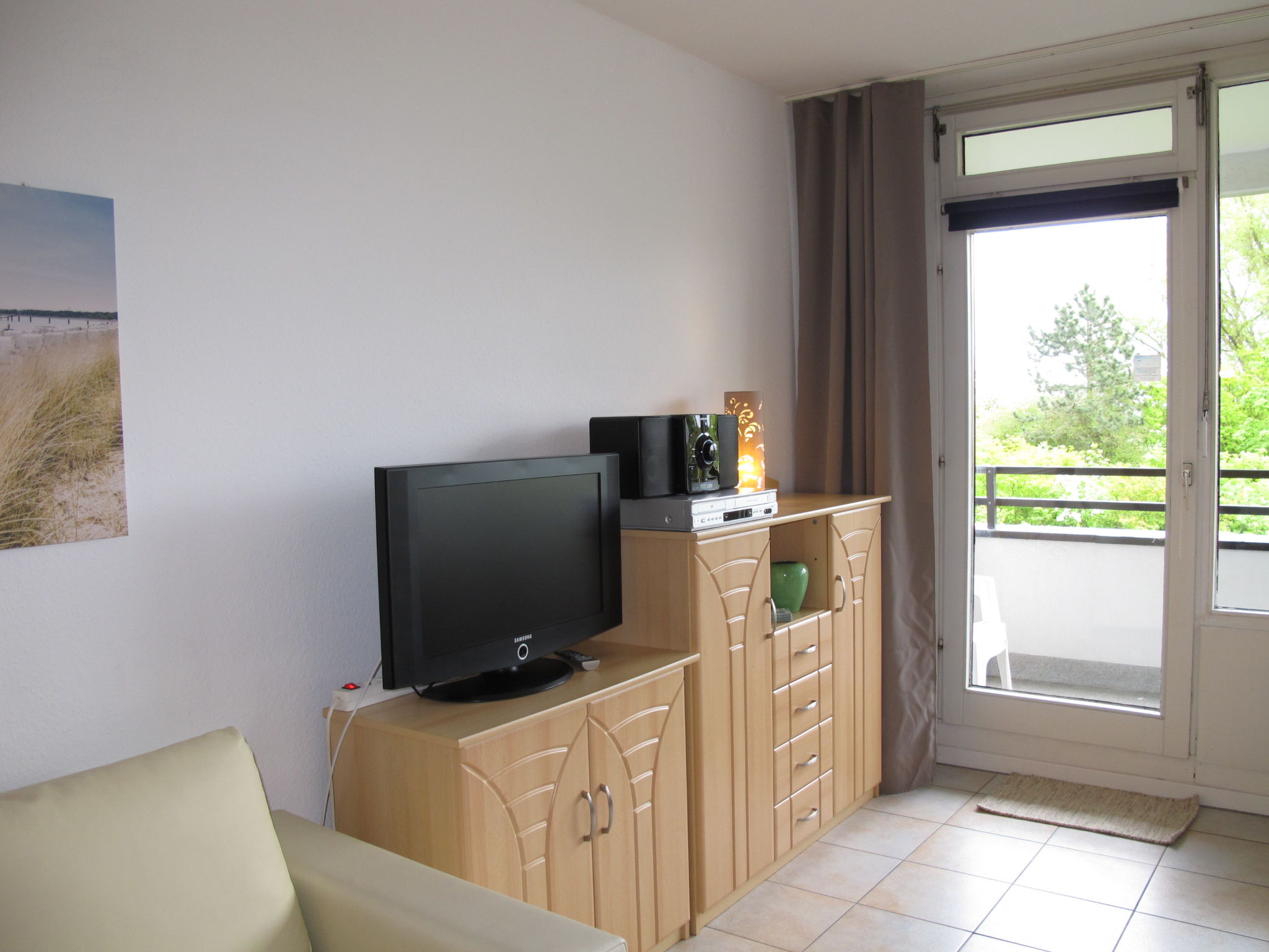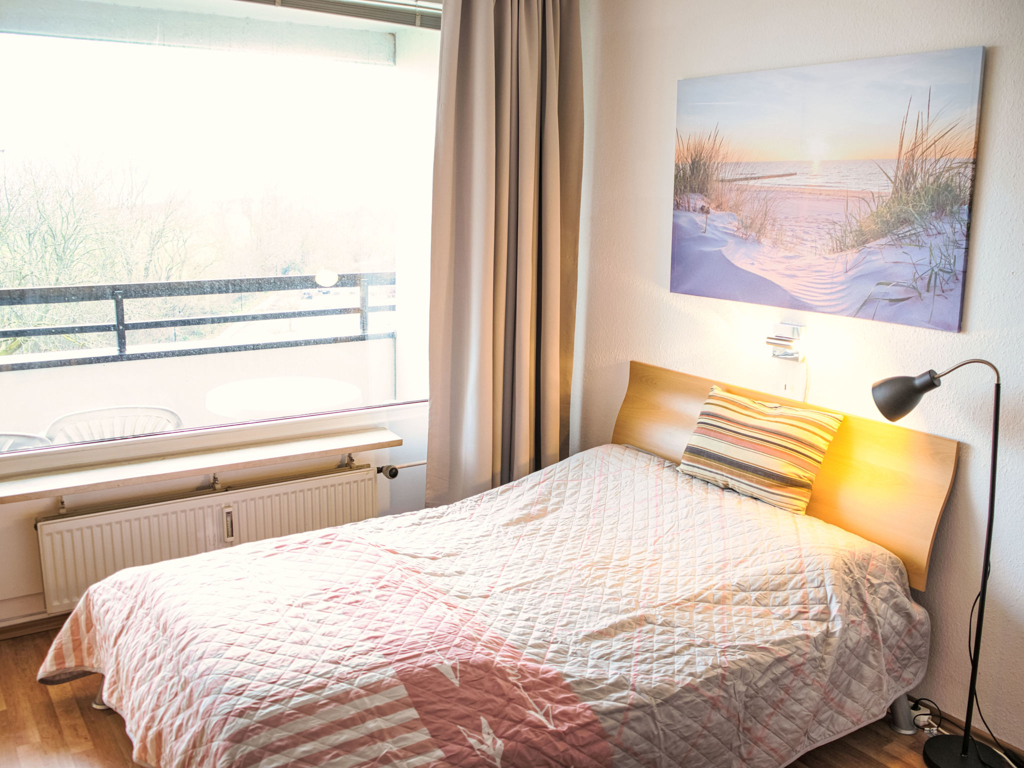 "Ostsee-Residenz (DMP173)", 1-Zimmer-Wohnung 35 m2 im 5. Stock. Renoviert im Jahre 2018, gemütlich eingerichtet: Wohn-/Schlafzimmer mit 1 Diwanbett (120 cm, Länge 200 cm), 1 Doppeldiwanbett (160 cm, Länge 200 cm), Esstisch, Sat-TV, Stereoanlage und DVD. Ausgang zum Balkon. Offene Küche (Mini-Backofen, Backofen, 2 Glaskeramikherd Platten, Toaster, Wasserkocher, Mikrowelle, elektrische Kaffeemaschine). Dusche/WC. Balkonmöbel. Sicht auf das Meer. Zur Verfügung: Internet (Wireless LAN, gratis). Bitte beachten: Nichtraucher-Unterkunft. Maximal 1 Haustier/Hund erlaubt. Rauchmelder, Feuerlöscher.