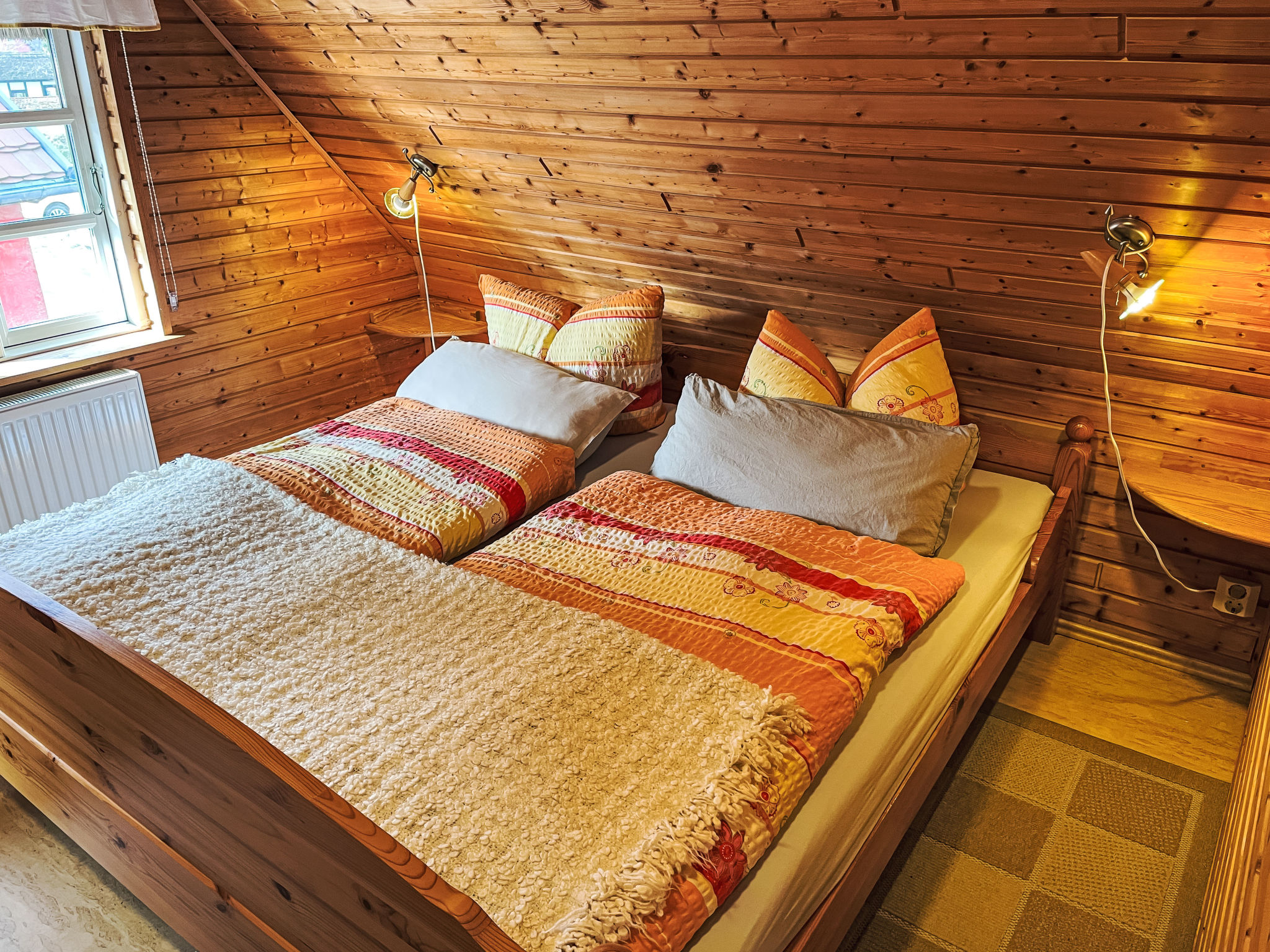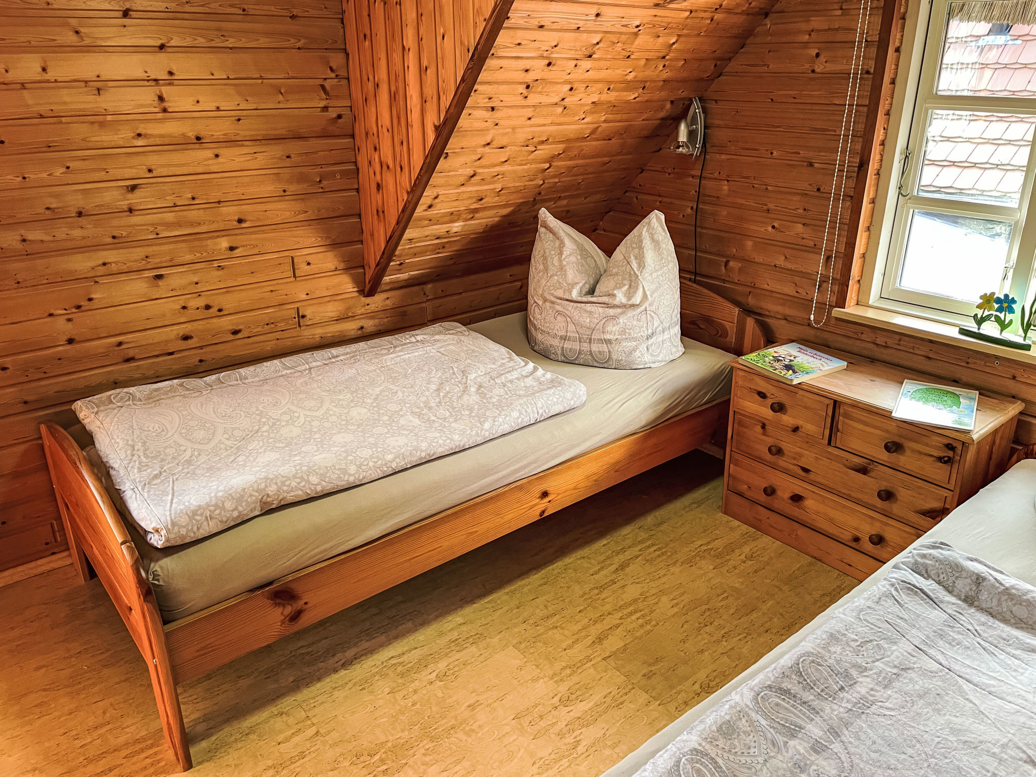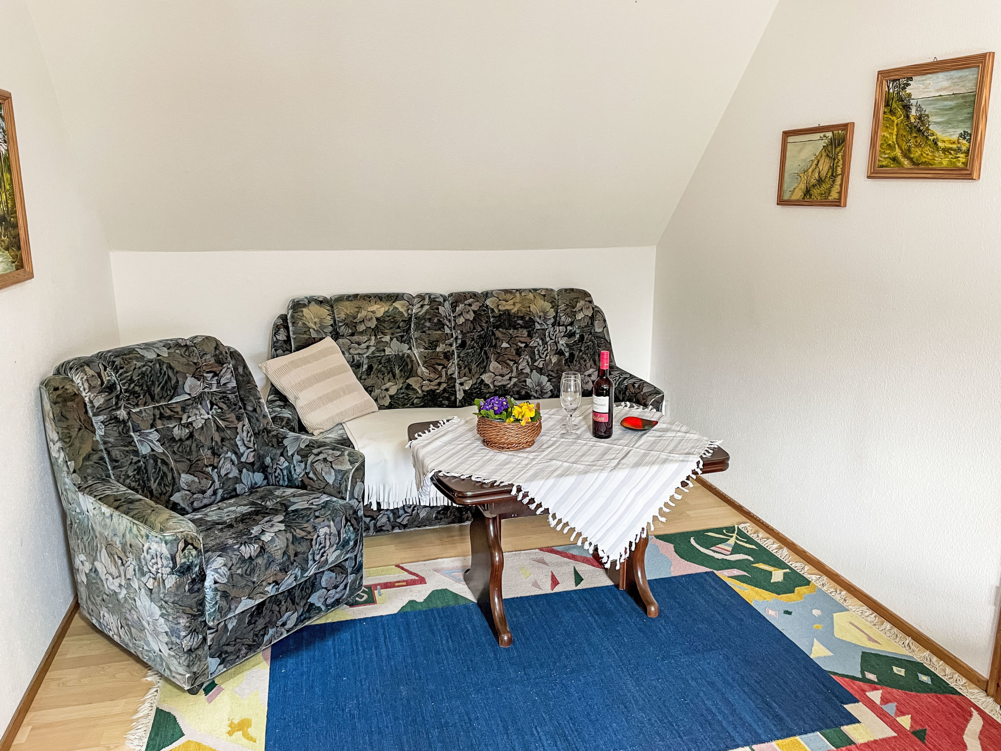 "Brigitte", 3-Zimmer-Wohnung 65 m2, im Obergeschoss. Zweckmässig und mit viel Holz eingerichtet: Obergeschoss: abgeschrägtes Wohnzimmer mit Sat-TV (Flachbildschirm), Radio. 1 abgeschrägtes Doppelzimmer. 1 abgeschrägtes Zimmer mit 2 Betten. Abgeschrägte Küche (2 Kochplatten, Mini-Backofen, Backofen, Toaster, Wasserkocher, Mikrowelle) mit Esstisch. Dusche/WC. G-Heizung. Gartensitzplatz. Gartengrill (mobil). Zur Verfügung: Babybett. Parkplatz (2 Autos). Bitte beachten: Nichtraucher-Unterkunft. Rauchmelder.
