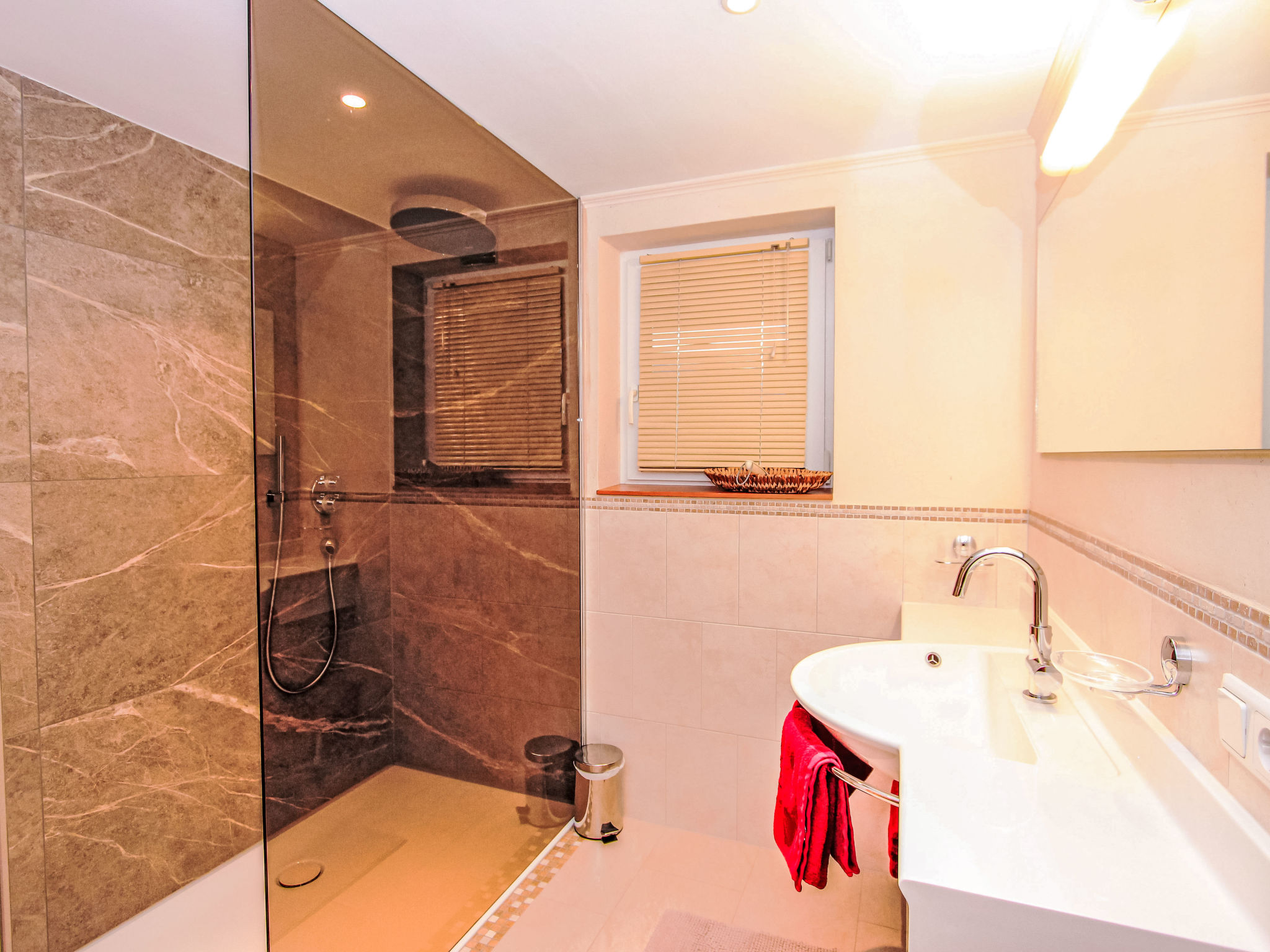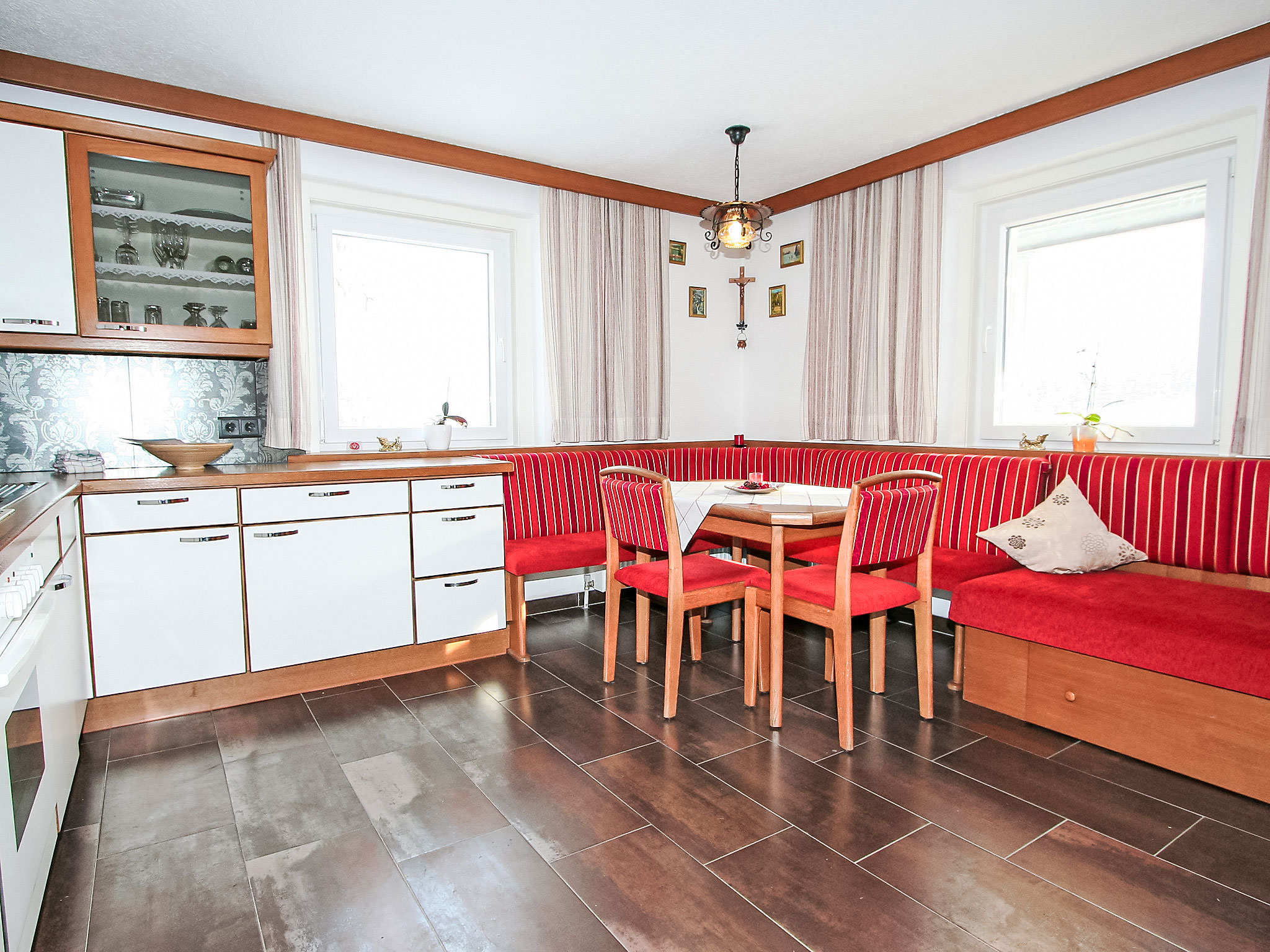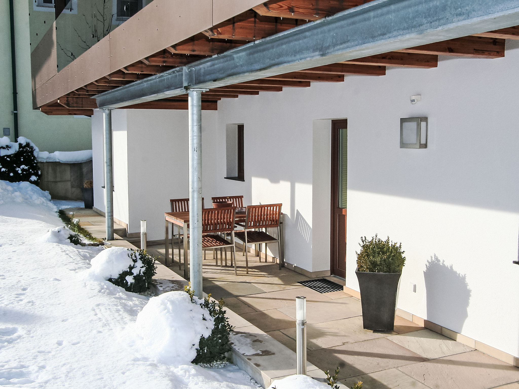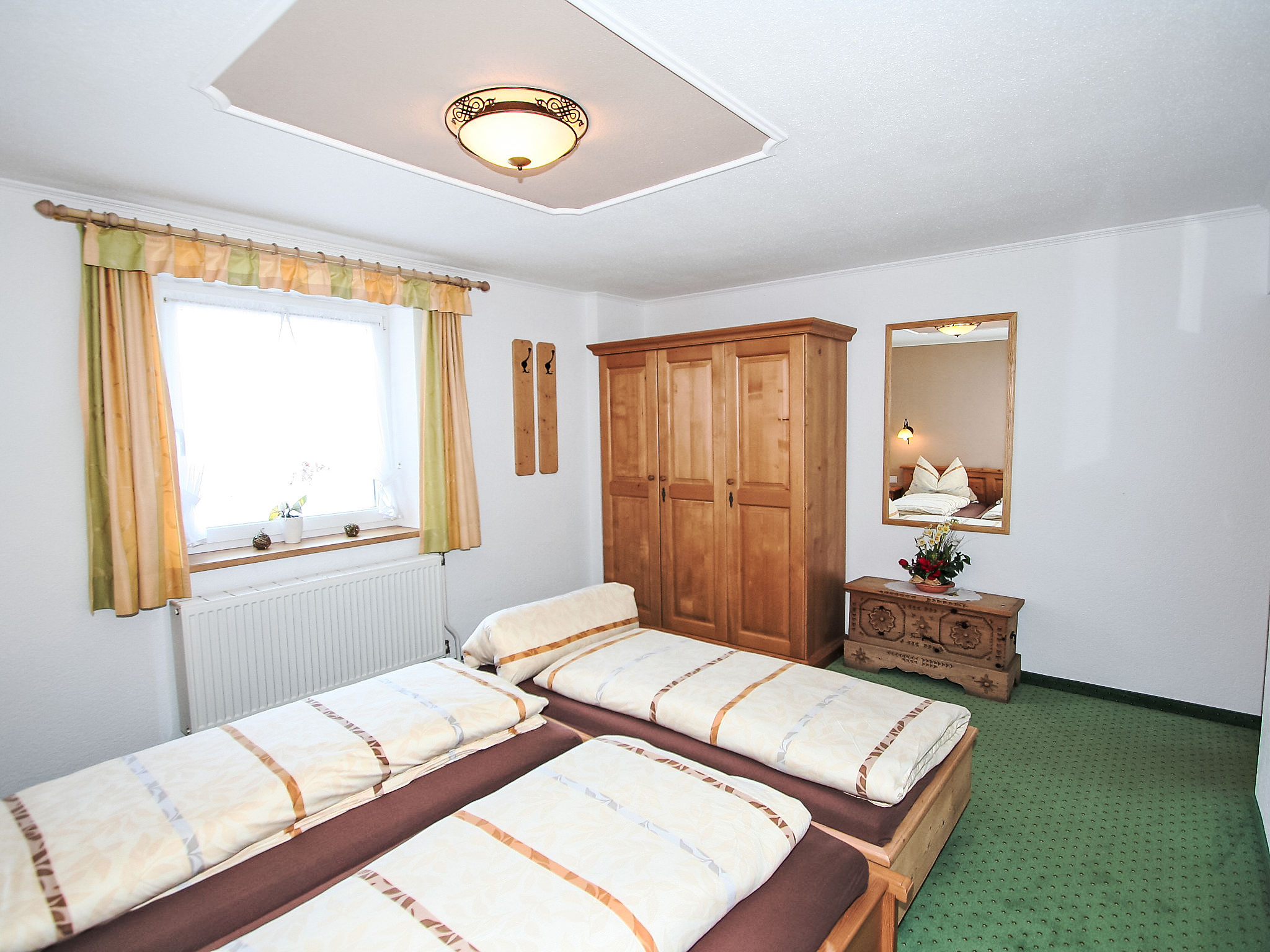 3-Zimmer-Wohnung 72 m2, im Erdgeschoss. Sehr schön und geschmackvoll eingerichtet: Eingang. 1 Zimmer mit 1 Bett (Länge 190 cm), 1 Doppelbett (Länge 200 cm). 1 Zimmer mit 2 Betten. Wohnküche (Backofen, Geschirrspüler, 4 Glaskeramikherd Platten) mit 1 Diwanbett, Essecke und Sat-TV (Flachbildschirm), Radio. Dusche, sep. WC. Terrasse 16 m2, Südlage. Terrassenmöbel, Abstellkammer. Herrliche Sicht auf die Berge und die Landschaft. Zur Verfügung: Internet (Wireless LAN, gratis). Bitte beachten: geeignet für Familien. Nichtraucher-Unterkunft. Eigener Eingang. Das WC ist zusätzlich mit einem Urinal ausgestattet. Die Sonnenterrasse lädt zum Draussensitzen ein.