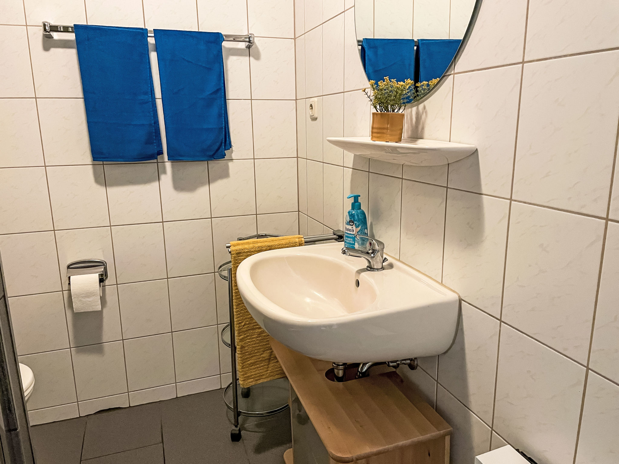 Gemütliche Feriensiedlung "Gollwitzer Park (Insel Poel)", umgeben von Bäumen, Wiesen und Feldern. Am Ortsrand, ruhige, sonnige Lage, 600 m vom Meer, 600 m vom Strand, in einer Sackgasse, im Grünen. Zur Mitbenutzung: Grundstück 12'000 m2 mit Rasen, Wiese, Liegewiese, Naturteich. Tischtennis, Boccia (extra), Kinderspielplatz. In der Anlage: Einstellraum für Fahrräder. Parkplatz auf dem Grundstück. Lebensmittelgeschäft 5 km, Supermarkt 5 km, Einkaufszentrum 5 km, Restaurant 200 m, Bäckerei 5 km, Bushaltestelle 100 m, Sandstrand 600 m, Freibad 18 km, Hallenbad 18 km, Badesee 18 km. Minigolf 6.5 km, Reitstall 7.5 km, Wanderwege ab Haus 100 m. Bitte beachten: Fahrzeug empfohlen. Der Gollwitzer Park besteht aus fünf zweigeschossigen Appartementhäusern mit insgesamt 45 Ferienwohnungen, auf dem Grundstück befindet sich zudem ein eingezäunter Naturteich.